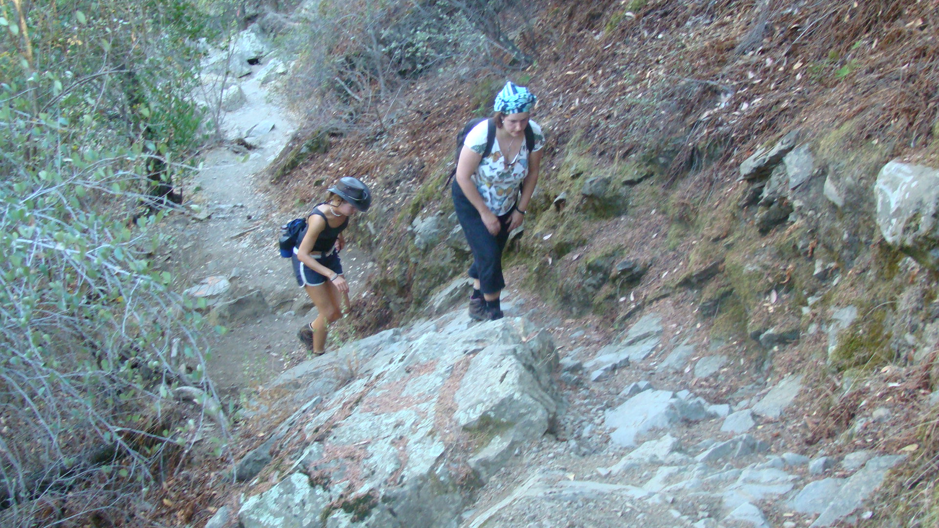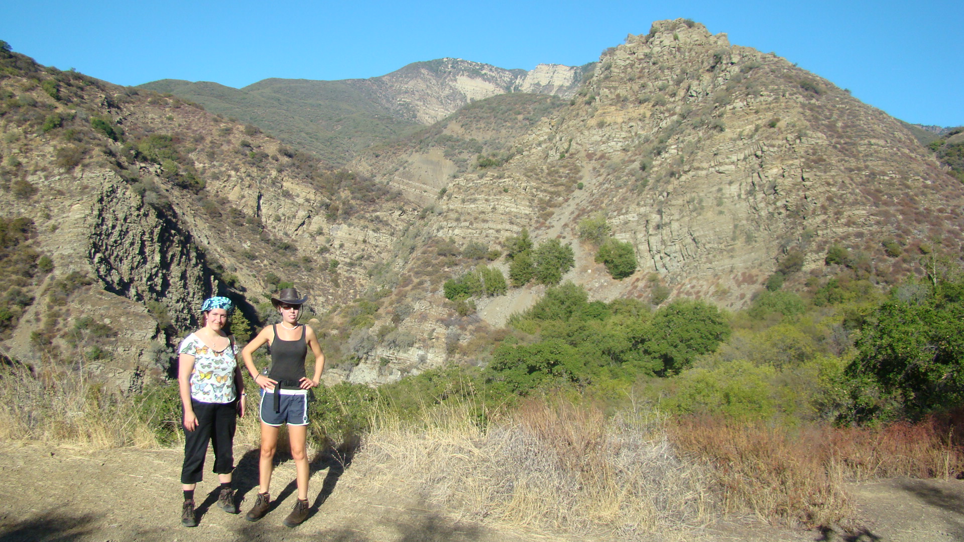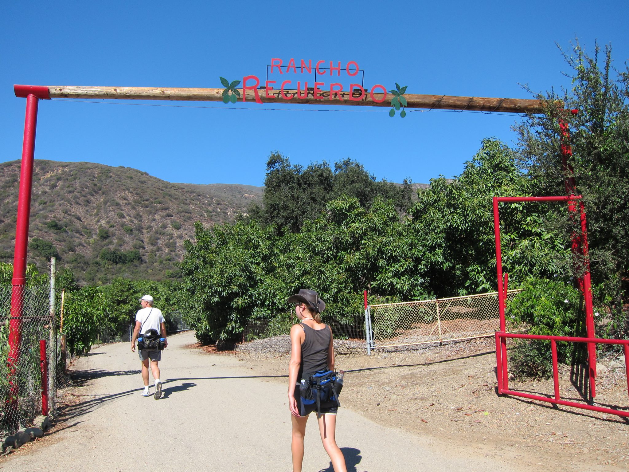 Līdz kalnu takai ir jābrauc ar auto aptuveni 20 jūdzes. Mēs traucamies garām apelsīnu, citronu un avokado birzīm. Esam galā un kāpienu sākam ap vieniem dienā – teju pašā karstākajā laikā. Termometrs rāda 95 Fārenheitus, ir nežēlīgi karsti, Sonja bubina. Sākumā taka vijas pa asfaltētu ceļu, paejam garām kristīgajai skolai, naftas pumpjiem un avokado rančo, kuras vārtus rotā uzraksts: “štrunts par suni, sargies no saimnieka”, kā iebiedējoša ilustrācija izmantota pistole. Pēc tam taka kļūst arvien šaurāka, brīžiem ir grūti samanīt, kur jāiet. Džims raitā solī lēkšo pa priekšu, Sonja ar zināmu pofigismu slāj pa vidu, es elšu un pūšu no mugurpuses. Ik pa brīdim apstājamies, lai padzeros. Džims ir brīdinājis, lai paņemam līdzi daudz ūdens, tas tiešām noder. Man ir līdzi litrs veikala ūdens un litrs krāna ūdens, dzeru tos uz maiņām. Viņi šeit principā visi dzer krāna ūdeni. Man ar to sokas grūti, jo ir sajūta, ka dzeru baseina ūdeni. Vienīgais veids, kā iedzert to nejūtot pretīgo piegaršu, ir kafijas pagatavošana. Tējai baseins laužas cauri, ka prieks.