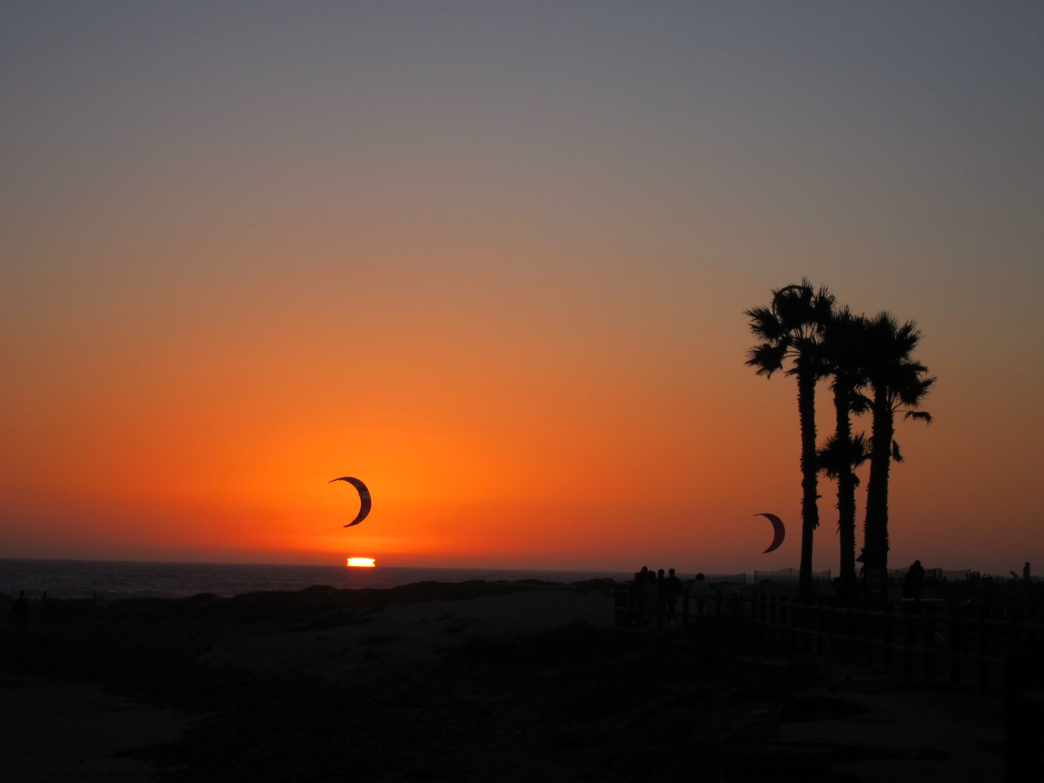 Pēc tam piestājam okeāna krastā, lai noskatītos saulrieta izrādi. Uz oranžsarkano debesu fona melnās kaitotāju buras izskatās pēc lieliem mēnešiem, kas plūdeni maina savu atrašanos pozīciju, veidojot debesīs naksnīgas mozaīkas.