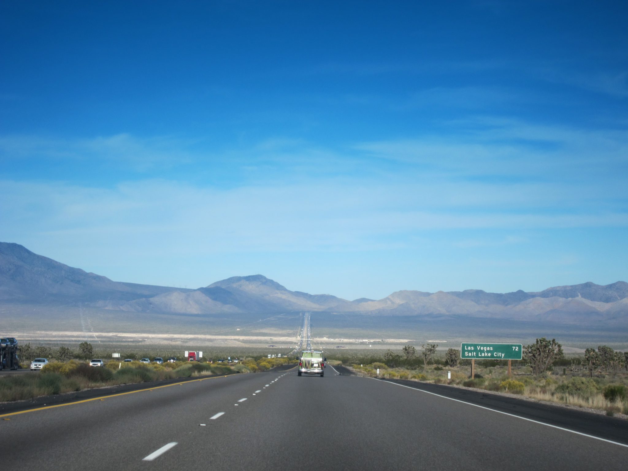 Nolemju braukt bez GPS, kas es nevarēšu atrast Lasvegasu. Ceļš ir skaists, tad vēl piestāju ceļmalā un par pāris dolāriem sapērku apelsīnus, greipfrūtus un guavas no blakus esošās birzs. Kādu brīdi viss iet tiešām labi, veicu piecas pareizas nogriešanās, līdz attopos pilsētā Palmdeilā, kurai man vajadzēja pabraukt garām. Nav labuma bez ļaunuma, jo šai vietā ieraugu mobilā telefona veikalu, kurā tieku pie ASV sim kartes un vietējā numura. Tad nu tomēr ieslēdzu GPSu un turpinu ceļu.