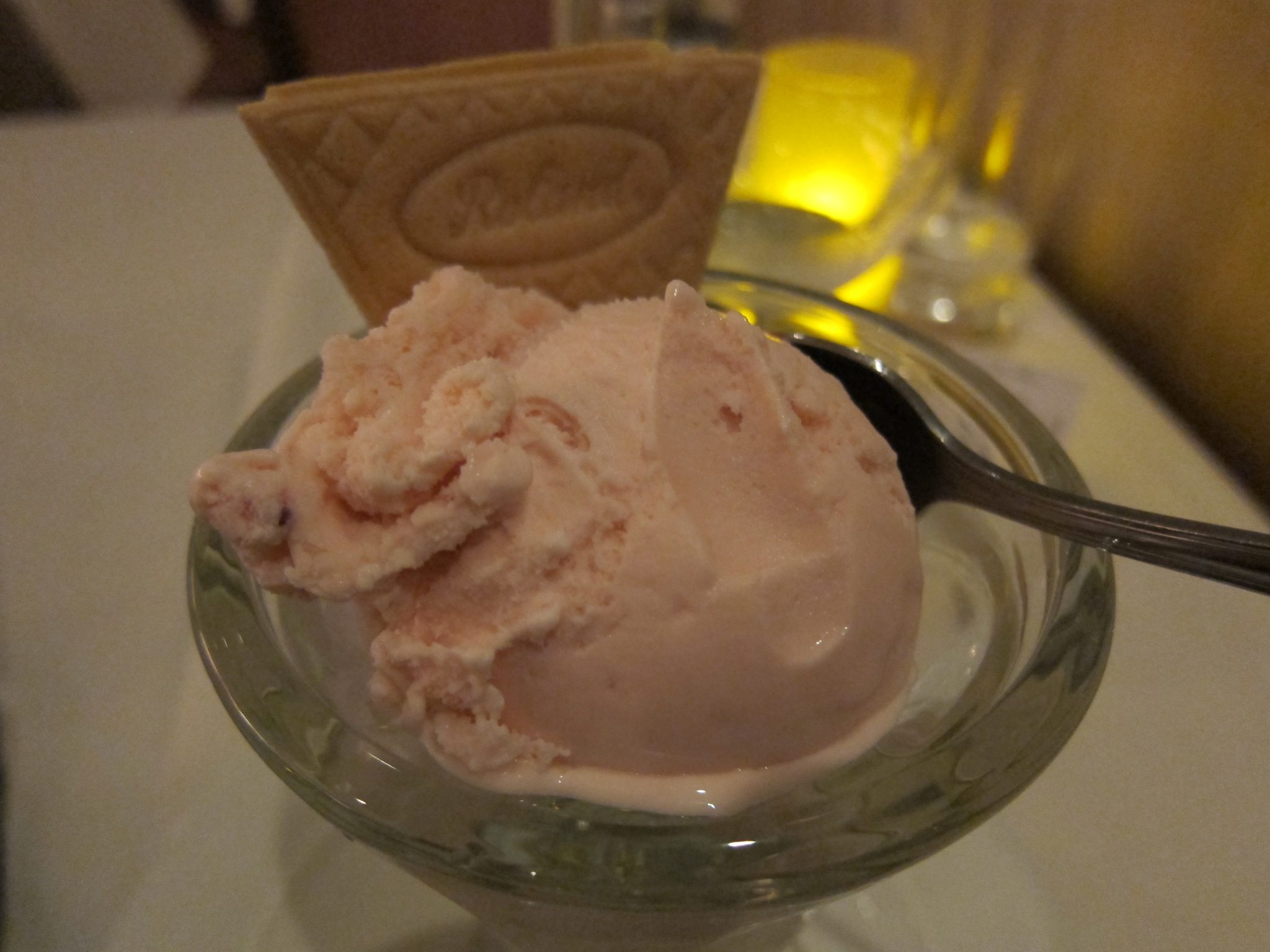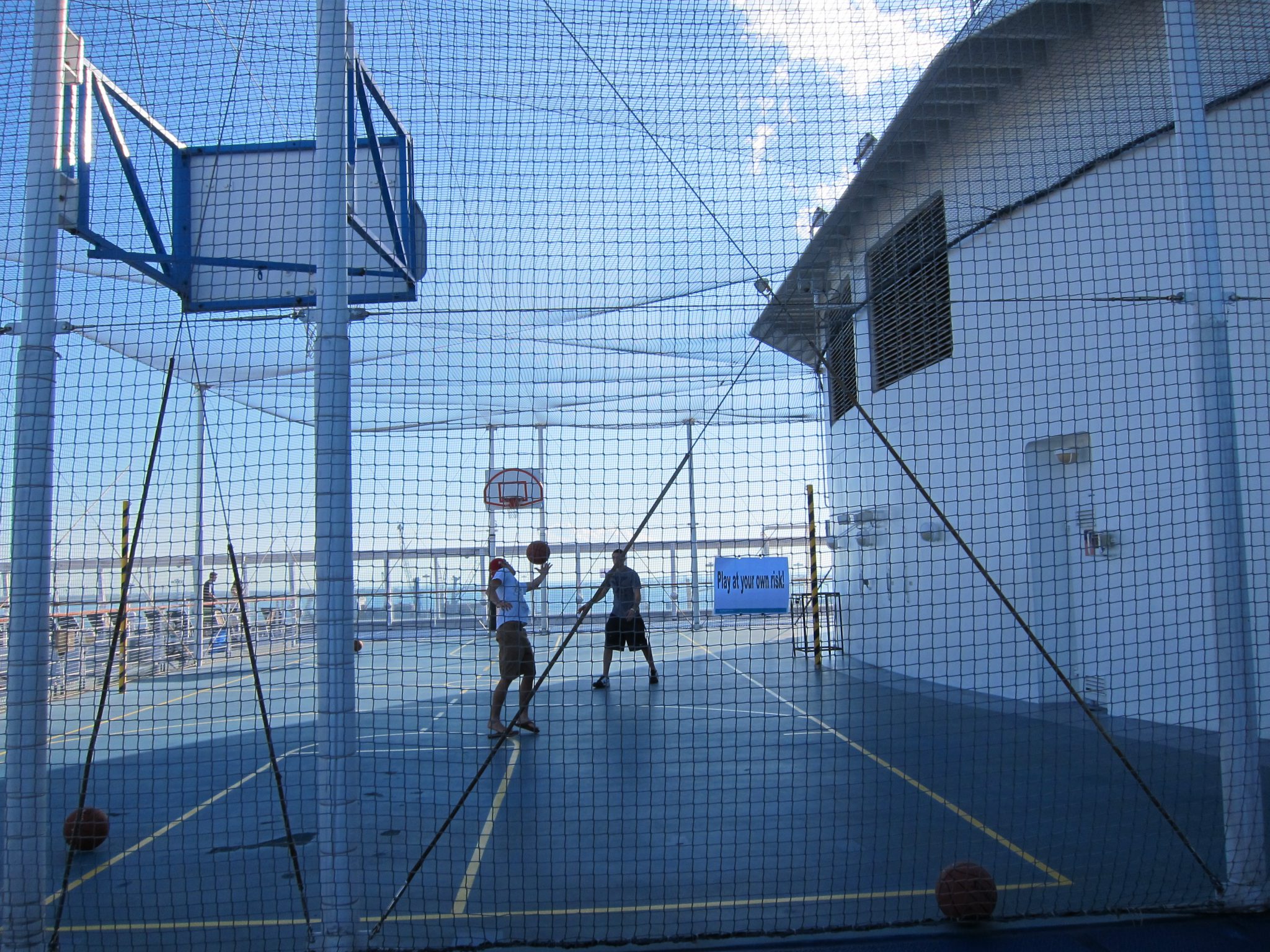 Kad debesis satumsušas pavisam, dodos sistemātiskā kuģa izpētē. Eju garām veikaliem, kazino zālei, trenažieru zālei, teātrim, līdz nonāku līdz kādam restorānam un nolemju, ka sen nav ēsts :). Visi galdiņi ir aizņemti un tev iedod mazu devaisu – kad tas sāks mirgot un vibrēt, galdiņš ir brīvs. To viņš dara pēc minūtēm 15 un tieku nosēdināta pie maza galdiņa. Mani apkalpo ļoti jauks oficiants un arī maltīte (izņemot starteri) ir tiešām garda. Un atvadām vaicāju, ko kuras puses ir oficiants, viņš saka, ka no Indonēzijas, Bali. Es savukārt vēstu viņam, ka došos tur pēc pāris mēnešiem. “O, es tev izrādīšu salu, ja būšu mājās”. “Tas būtu jauki”, saku viņam un iedodu Feisbuka kontaktus. Ja nu arī nebūs mājās, no Feisbuka draudzības neviens nav nomiris. Kad pieceļos kājās, konstatēju, ka jaukā indonēzieša galva ir manā krūšu līmenī. Domās izsaku cerību, ka citi cilvēki Indonēzijā ir mazliet garāki. Citādi būs kā Vjetnamā, kad maza meitenīte aizskrēja pēc brālīša, lai viņam parādītu mani. Brālītis, mani ieraugot, sāka nevaldāmi raudāt, jo neko tik lielu un briesmīgu savā īsajā 3gadnieka dzīvē vēl nebija redzējis.