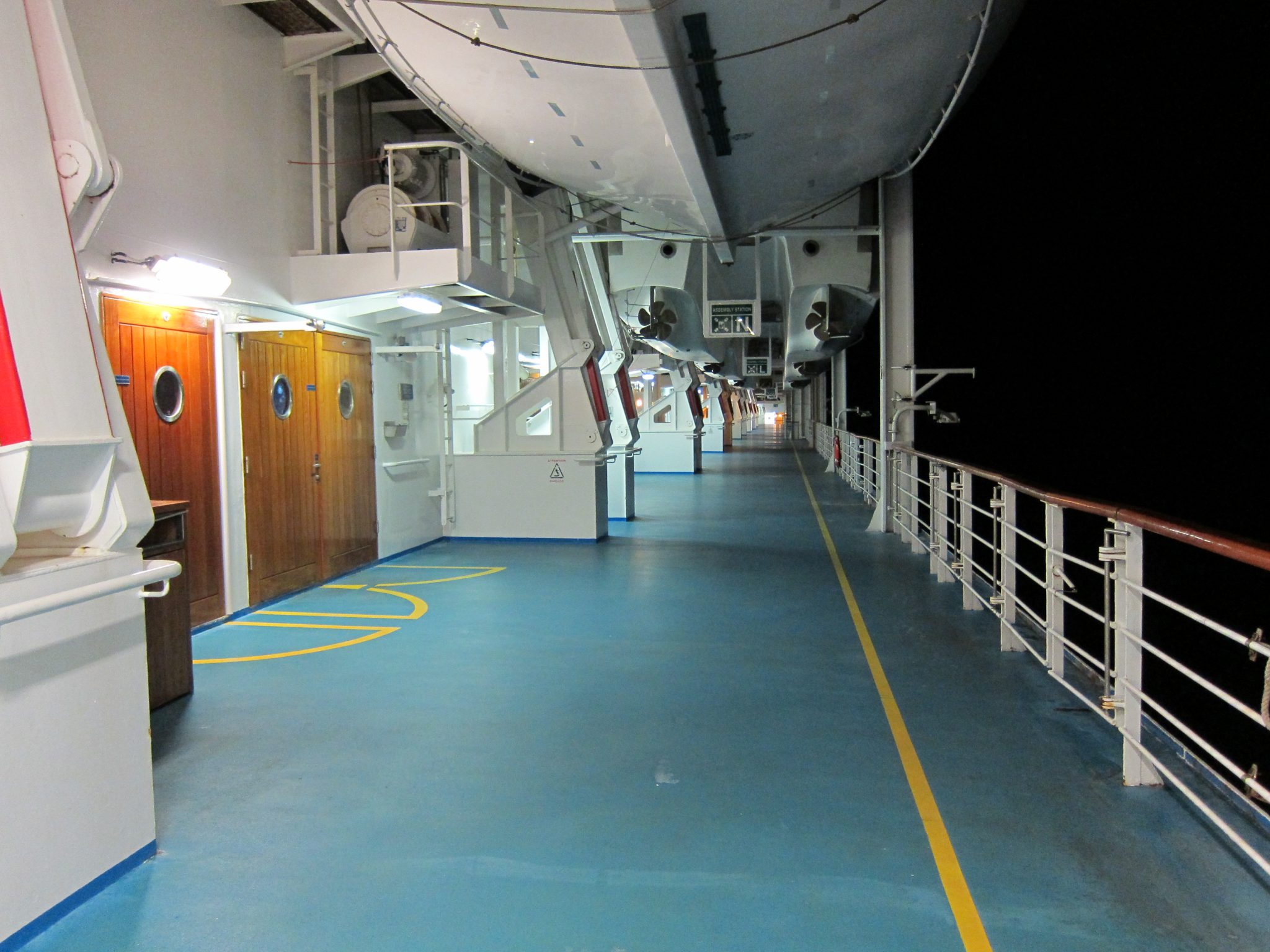 Tomēr nokāpjot lejā un ejot pa garo gaiteni, vienubrīd uznāk tāda Titānika sajūta. To pastiprina kajītes televizorā skanošie drošības instrukciju paziņojumi, kas tiek drillēti uz riņķi, kamēr notiek pasažieru uzņemšana. Ieeju dušā, izkrāmēju mantas un tad dodos apskatīt kuģi. Tomēr pa ceļam topu pārtverta un nosūtīta uz drošības instruktāžu. Izskatās, ka lielāko tās daļu esmu palaidusi garām, redzu vestes uzvilkšanas aktu un pasākums ar to ir beidzies.