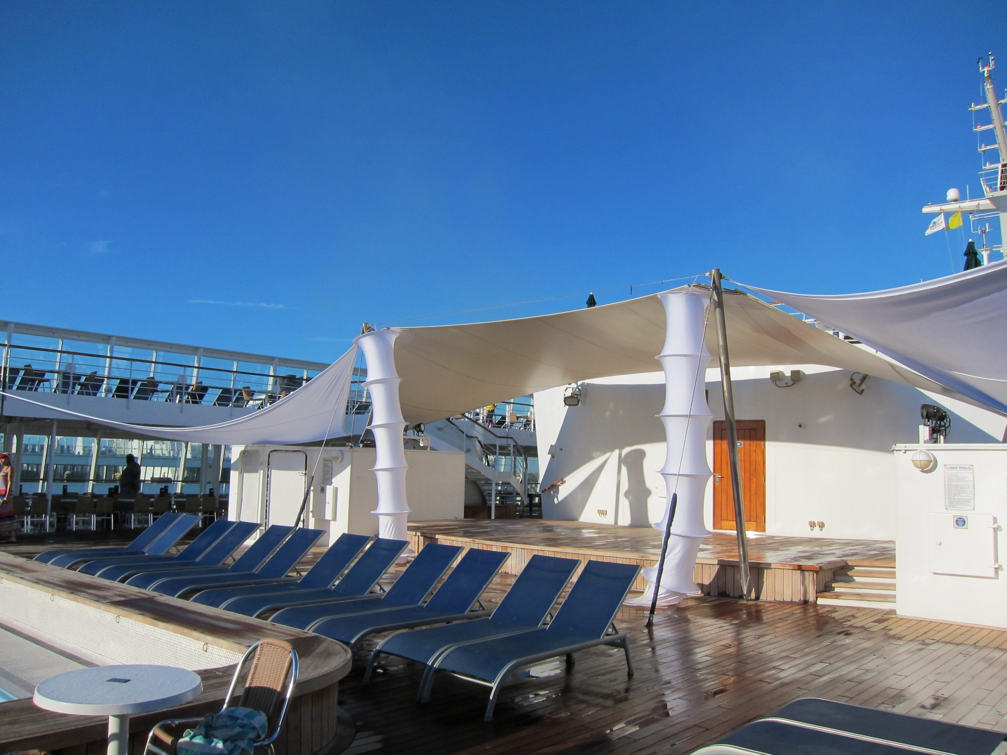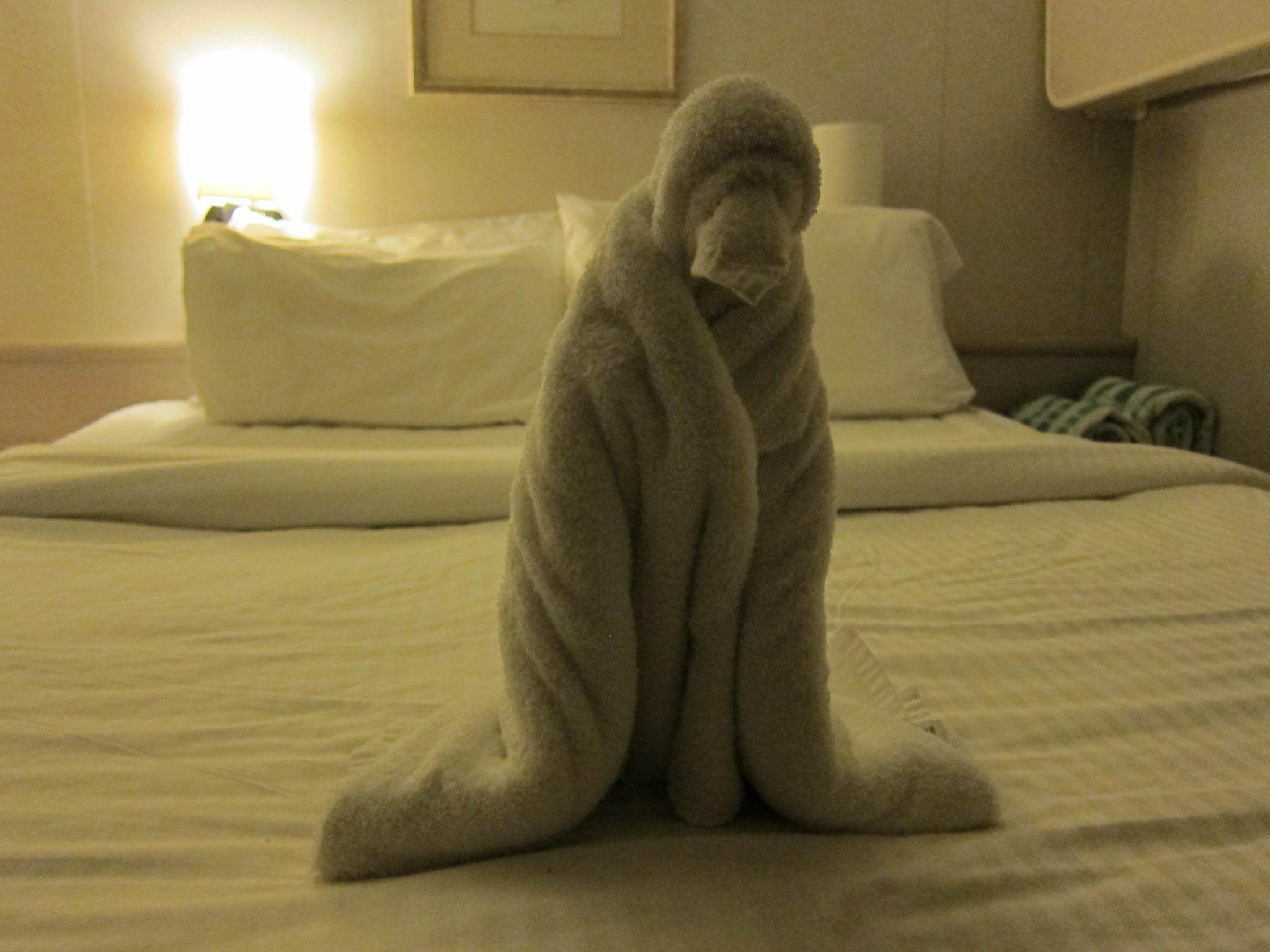 Pēc vakariņām nolemju apmeklēt kādu šovu – tribute 60-to un 70-to gadu mūzikai. Tā kā līdz šovam vēl pusstunda, nometu savu sarkanvīna glāzi uz galdiņa, pie kura netālu atrodas elektrības kontakti un aizskrienu vēl līdz kajītei. Atgriežoties atpakaļ, netālu sēdošais puisis man velta frāzi: “Hmm, es te sēdēju un domāju, vai nāksi atpakaļ pēc tā sava vīna vai nē.” Puisis ir īpašs ar to, ka ir ļoti liels. Tiešām ļoti liels. Biju ievērojusi viņu jau iepriekš, pārvietojoties speciālā braucamajā. Pēc brīža parādās arī viņa sieva un mēs paspējam pirms šova mazliet papļāpāt. Es izstāstu par saviem dienas piedzīvojumiem un parādu bildes, šie mazliet ilustrē savu dzīvi. Viņi aiziet mazliet pirms šova beigām, uz atvadām pusis pienāk pie manis, paspiež roku un novēl man veiksmi turpmākajā ceļā. Pēc šova vēl izstaigāju kuģi, paklausos kā viens melnais izpilda Eltona Džona dziesmas, mazliet papļāpāju ar meitenem, kas šeit ir vecmeitu ballītes ceļojumā, tad izstaigāju vietas, kur esmu ilgāk sēdējusi un atvados no tām. Rīt būs gara diena, tāpēc dodos pie miera.