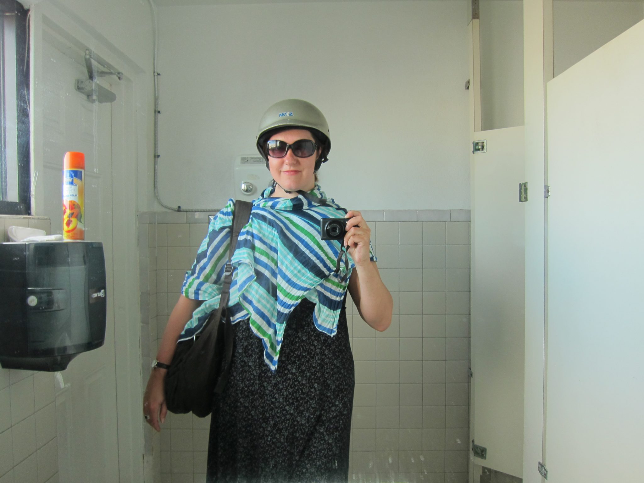 Tad dodos nomāt motorolleri. Standartcena ir 50 dolāri par dienu, esmu nolēmusi maksāt 40. Beigās tomēr sanāk 60, jo klāt nāk degvielas un apdrošināšanas izmaksas. Ar motorolleri neesmu braukusi kopš Vjetnamas. Atceros sākotnējās bailes un nedrošību un lielisko brīvības sajūtu pēc tam. Saņemu ķiveri un īsu instruktāžu, un esmu gatava doties ceļā. Lēnām čubinu kopā ar pūli un kundzīte, kas man iznomā braucamo, panāk mani, nospiež tauri, cilvēki aizlec uz visām pusēm. “Use a horn, use a horn, mem”, viņa sauc man nopakaļus.