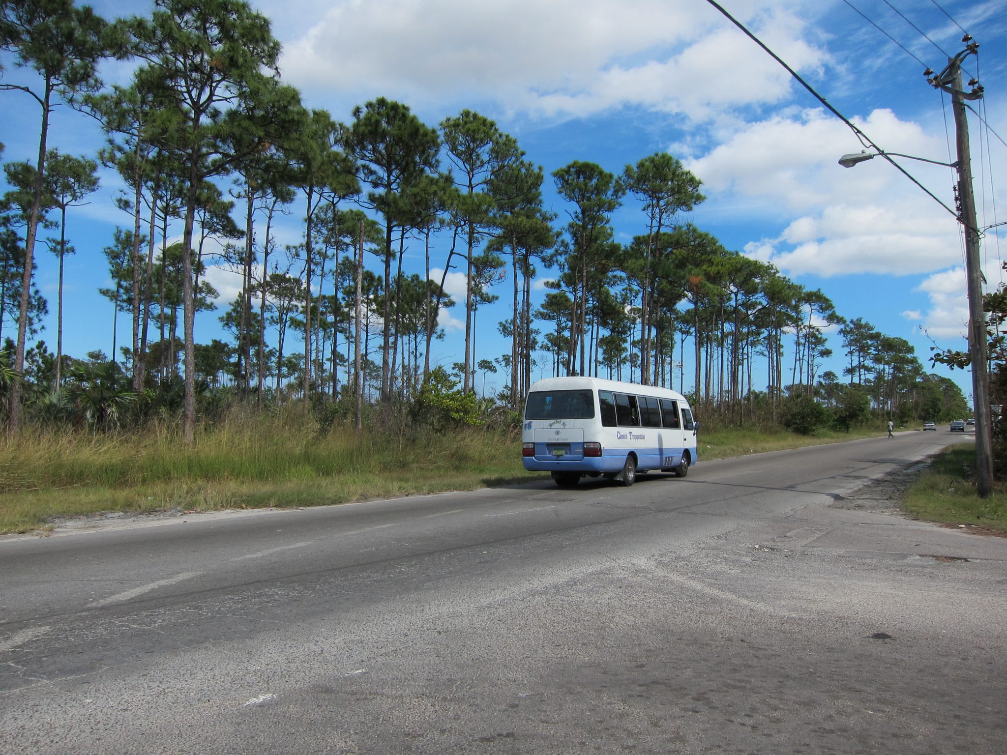 Tad nu turpinu ceļu gar rietumu krastu un te ir pavisam cita – tūristu pasaule. Izskatās, ka vētra nav gājusi secan arī Bahamām, jo šoseja vietām ir smilšu aizpūsta un ceļmalās guļ ar saknēm izrauti koki. Drīz jau esmu Nassau pilsētā. Ar visām daudzajām maldīšanās un apstāšanās reizēm, apbraukšana apkārt salai man ir prasījusi 3 ar pus stundas. Ko nozīmē iepriekš dzirdētais, ka tas ir “too far”? Cilvēki tiešām ir dīvaini bez gala.