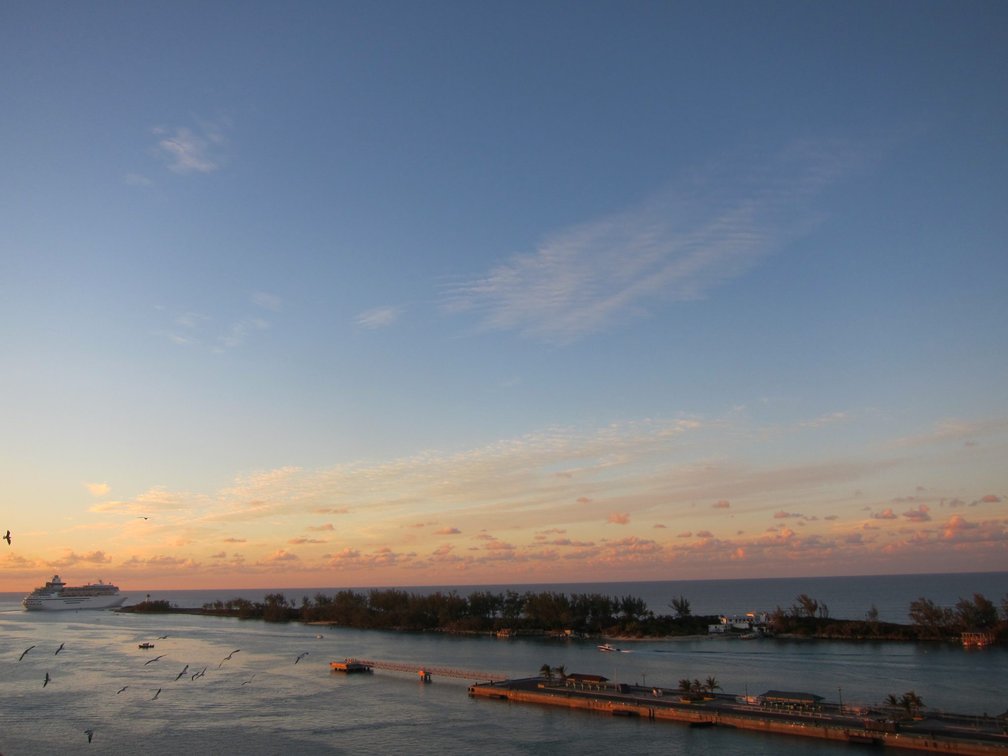 Šonakt pulkstenis tika pagriezts par vienu stundu atpakaļ. Agrāk Amerikā pulksteni grozīja nedēļu iepriekš, bet tad attapās, ka nevajag to darīt kopā ar Halovīniem, lai bērni drošāk var klīst pa ielām. Tad nu šorīt, 8 pēc jaunā laika kuģis izskatās stingri vairāk pamodies, neraugoties uz vakardienas ballīti. Laikam visi grib pēc iespējas ātrāk doties iepazīt Bahamu salas.