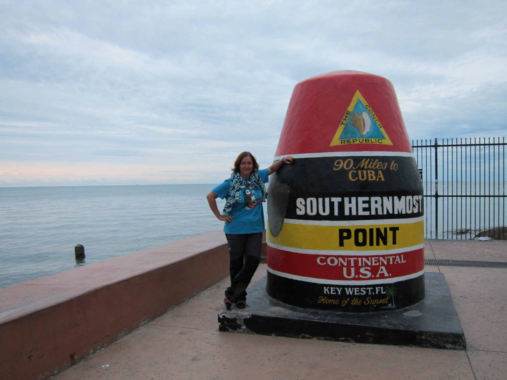 Tad pusskriešus dodos pie auto, jo stāvvietas maksa strauji tuvojas izskaņai. Kad esmu pie mašīnas, automāts rāda 00:00, bet auto stāv uz vietas un nav nobloķēts. Meklējot ceļu ārā no pilsētas, netīšām uzskrienu marķierim, kas simbolizē ASV galējo Dienvidu punktu. Uz tā rakstīts, ka līdz Kubai ir nieka 90 jūdzes. Tas ir tuvāk nekā Miami.