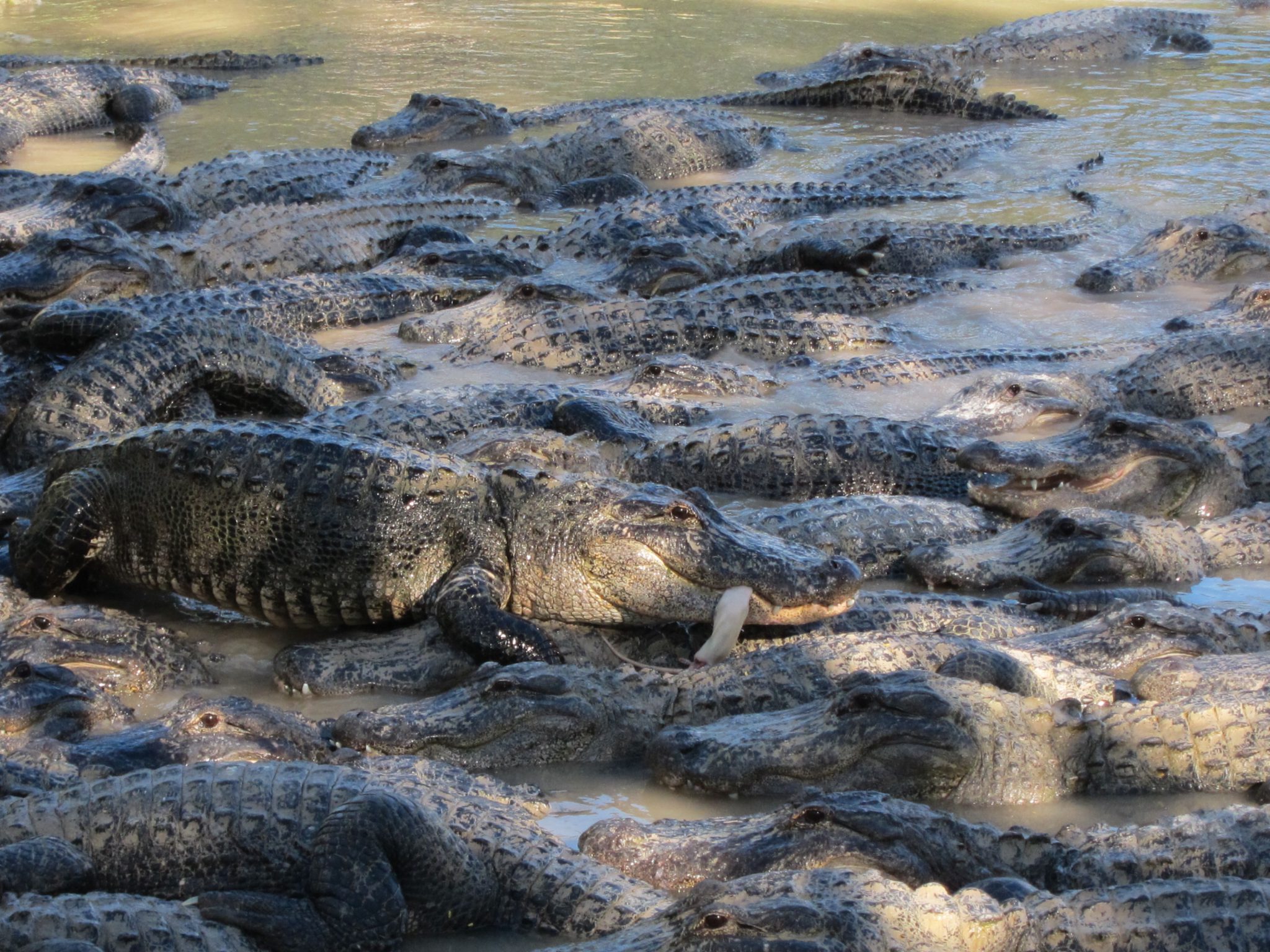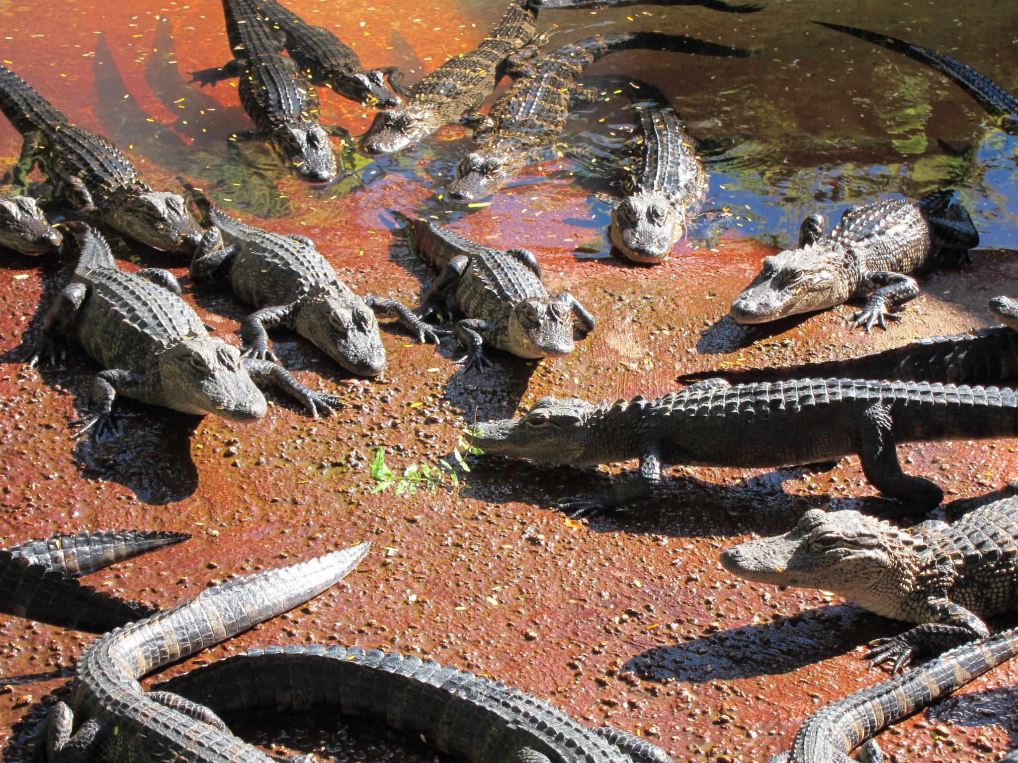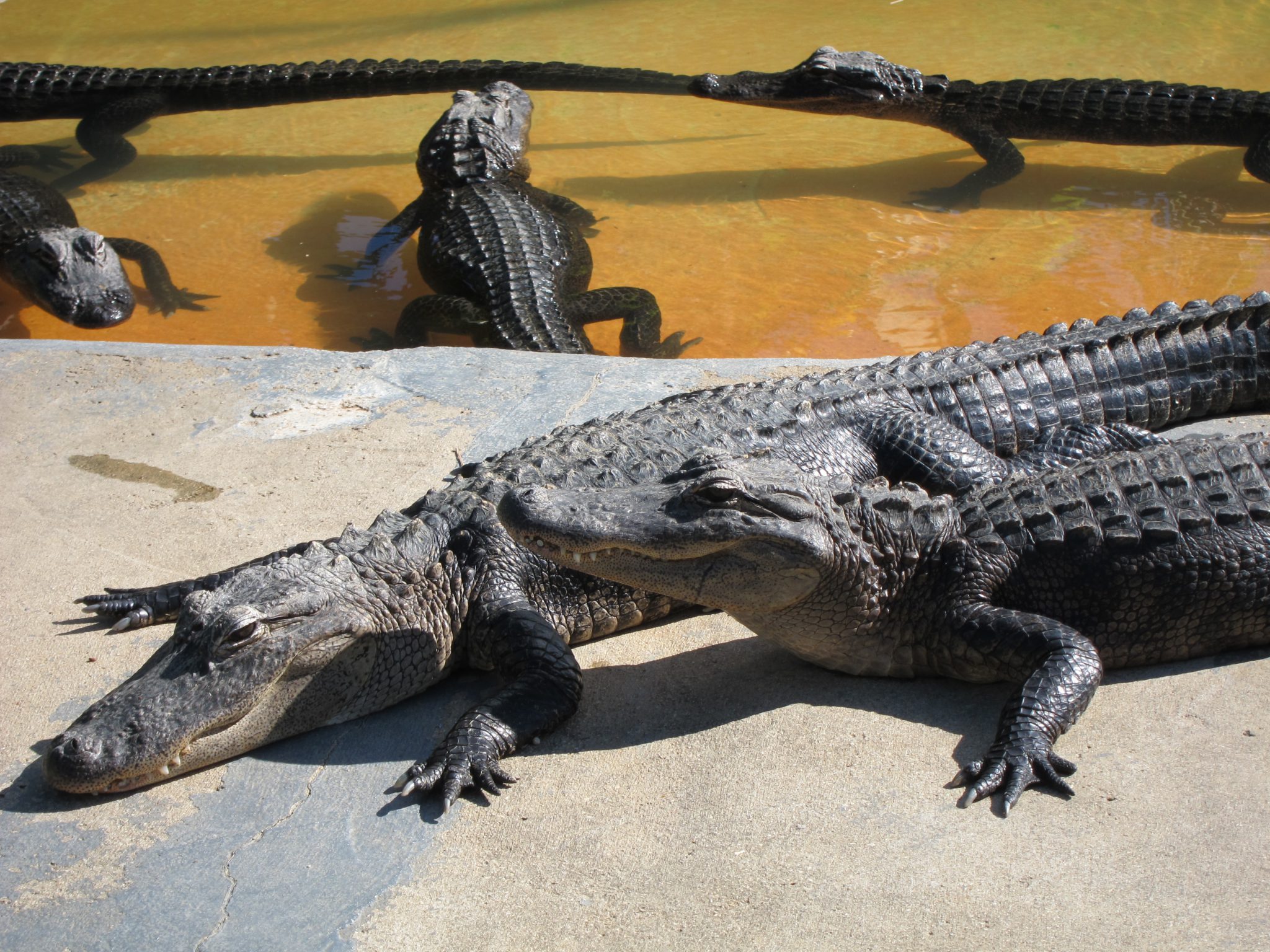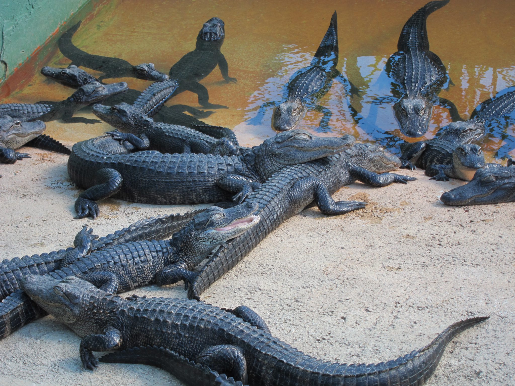 Esmu ietrāpījusi uz aligatoru barošanas laiku, kas ir 3 pēcpusdienā. Pat, ja tūristi nezina, cikos tas ir, krokodili gan zina un ir sapulcējušies vienā iežogojuma stūrī, glīti sagūluši kā baļķi ar deguniem vienā virzienā. Daži laimīgie tiek pie kādas beigtas peles un, to saķēruši, kāpjot citiem sugasbrāļiem uz galvas, dodas prom.
