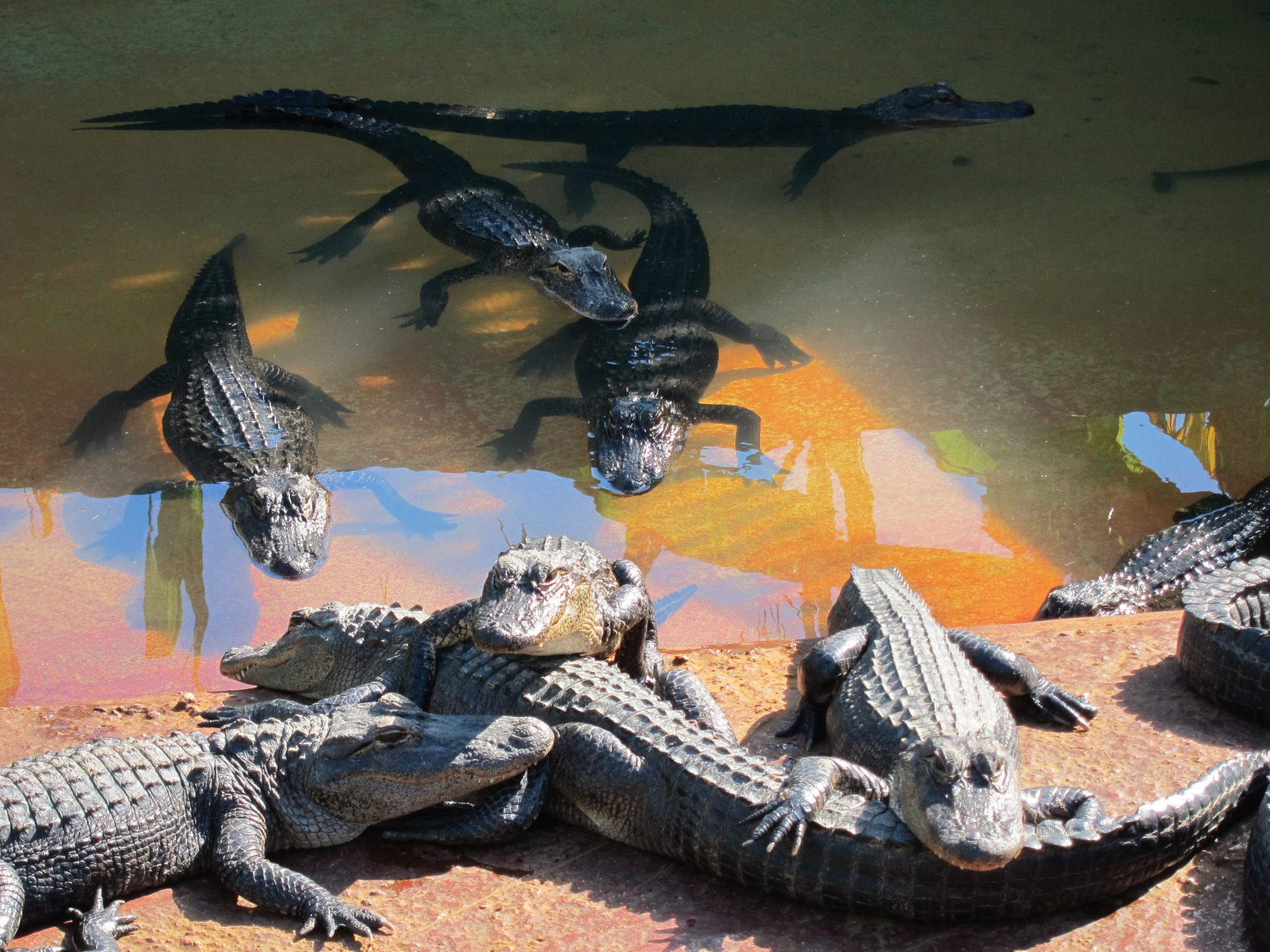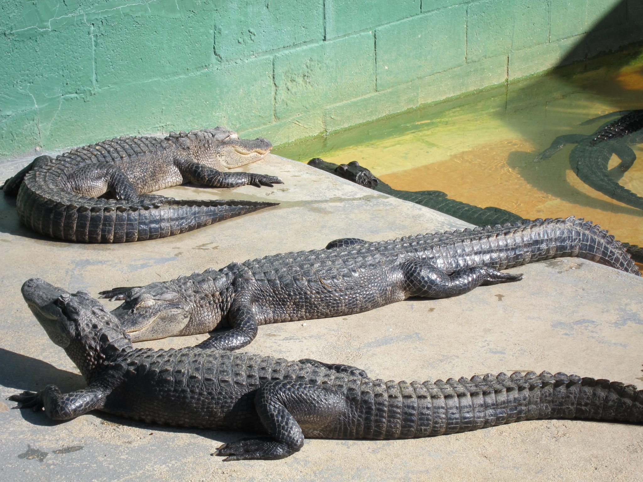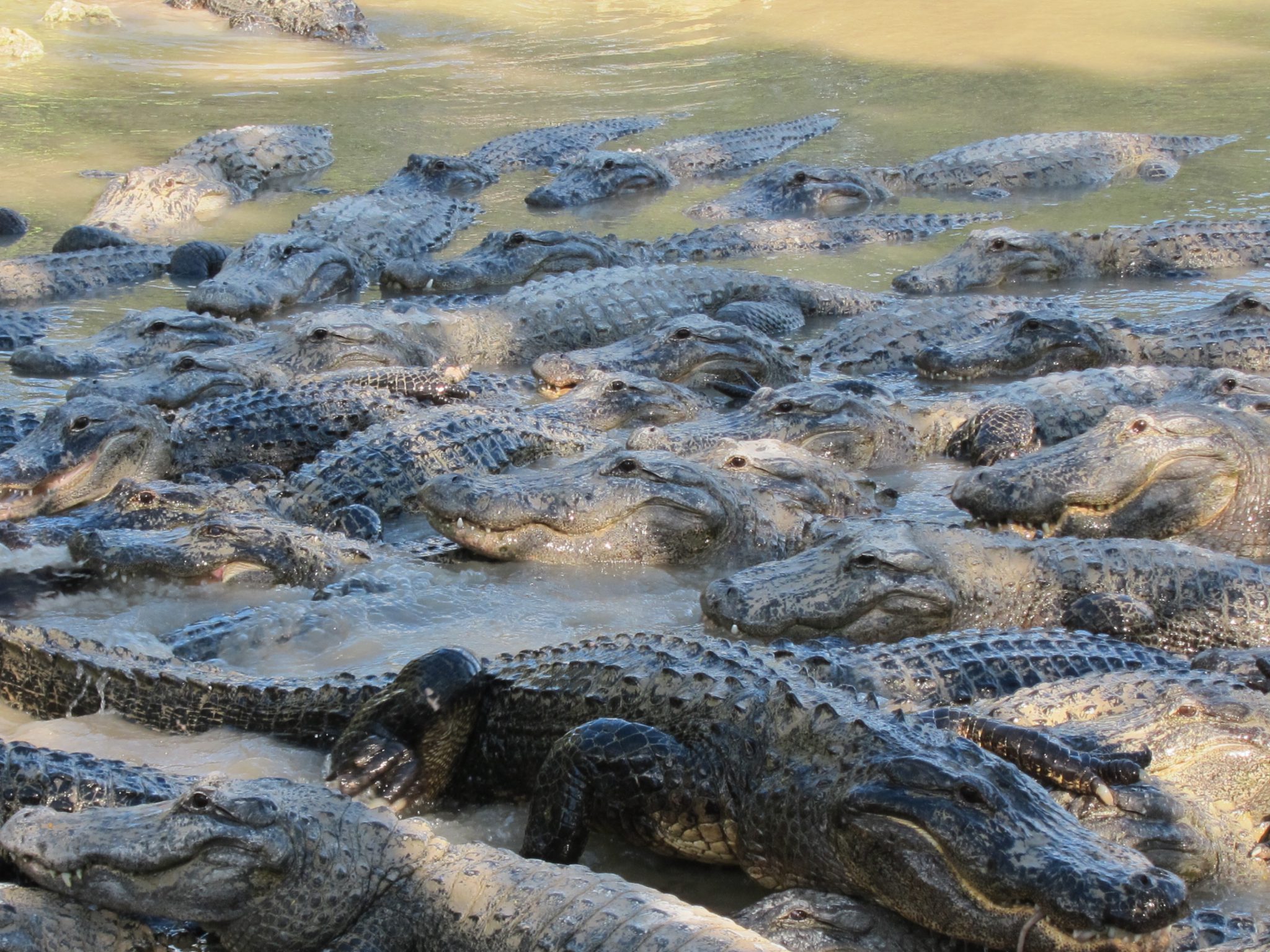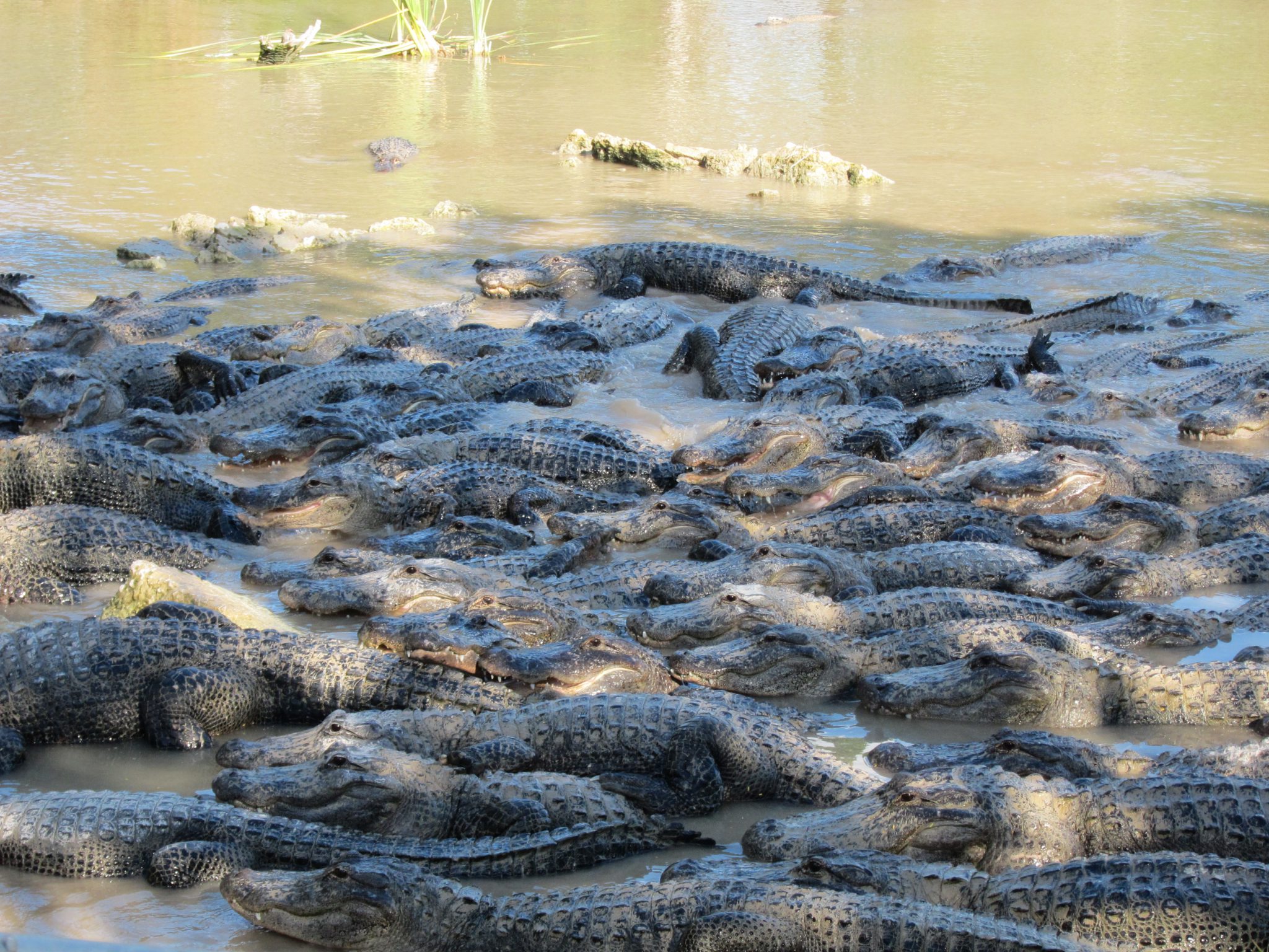 Esmu ietrāpījusi uz aligatoru barošanas laiku, kas ir 3 pēcpusdienā. Pat, ja tūristi nezina, cikos tas ir, krokodili gan zina un ir sapulcējušies vienā iežogojuma stūrī, glīti sagūluši kā baļķi ar deguniem vienā virzienā. Daži laimīgie tiek pie kādas beigtas peles un, to saķēruši, kāpjot citiem sugasbrāļiem uz galvas, dodas prom.