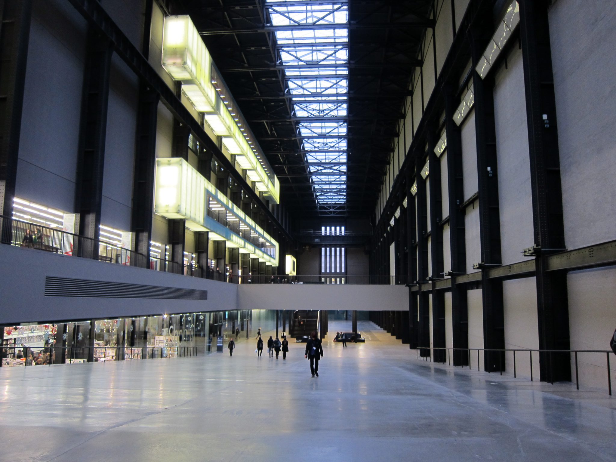 Kādā vietā pamanu aizdomīgus plakātus, kas mani ieinteresē un jau drīz stāvu milzīgas rūpnīcas priekšā, kurā iekārtots Tate Modern muzejs. Mana mīļā modernā māklsa, ko es vairāk varu vēlēties! Eju iekšā un esmu pilnībā apburta. Man ir vājība uz vecām rūpnīcām, un šī ir īpaši smalks eksemplārs. Pilnai laimei apmeklējums ir bez maksas, naudu viņi grib tikai par ieeju atsevišķās izstādēs.