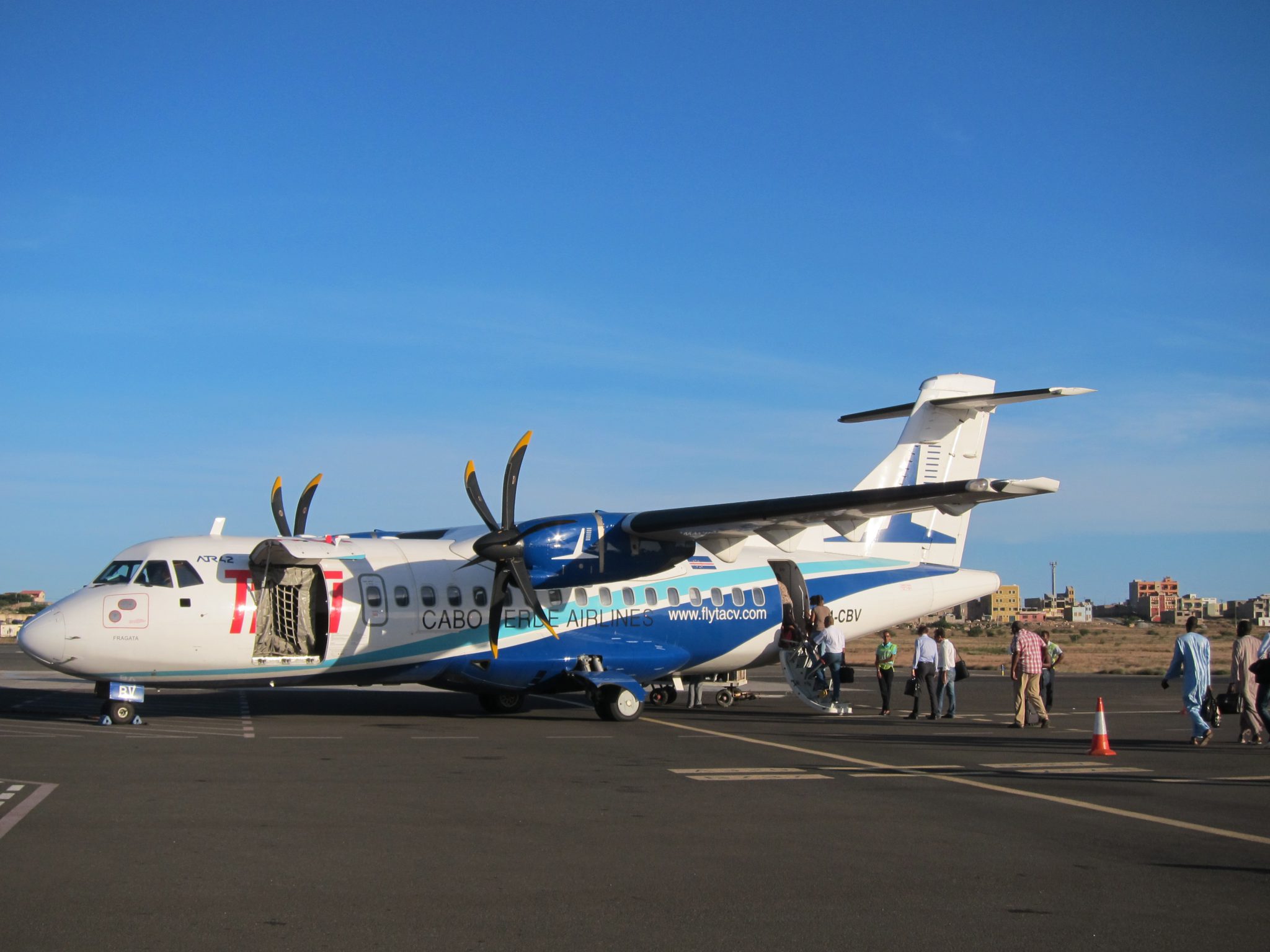 Esmu apzinīgi ieradusies vietējo lidojumu uzgaidāmajā zālē pirmā. Pamazām sarodas arvien vairāk ļaužu, tomēr, kad pienācis laiks celties gaisā, no lidmašīnas nav ne vēsts. Man tas ne īpaši patīk, jo nākamā lidmašīna diezi vai mani gaidīs. Ar nepilnas stundas nokavēšanos lidmašīna ierodas un sakāpjam tajā, lai lidotu uz Sal salu. Šī ir mazākā lidmašīna kādā esmu lidojusi. Principā ir sajūta, ka sēžu autobusā. Amizantu sajūtu rada sēdēšana pretējā braukšanas virzienā, ar seju pret visiem pārējiem pasažieriem – tas man par to, ka iečekojos pirmā. Vienīgais lidmašīnas stjuarts drošības instruktāžu veic, ar elkoņiem vicinādamies pāris centimetrus no manas sejas. Kopējais lidojuma laiks ar visu pacelšanos un nosēšanos ir minūtes 15. Piezemējos Sal brīdī, kad gaisā būtu jāpaceļās manai nākamajai lidmašīnai. Cik vien ātri varu, nesos uz lidostu un pēc pāris minūtēm esmu pie saviem vārtiem. Tur visi pasažieri rātni sēž un gaida. Atviegloti uzelpoju, ar acīm sameklēju vienīgo brīvo krēslu rindu, aizeju līdz tai un atkrītu benķī.