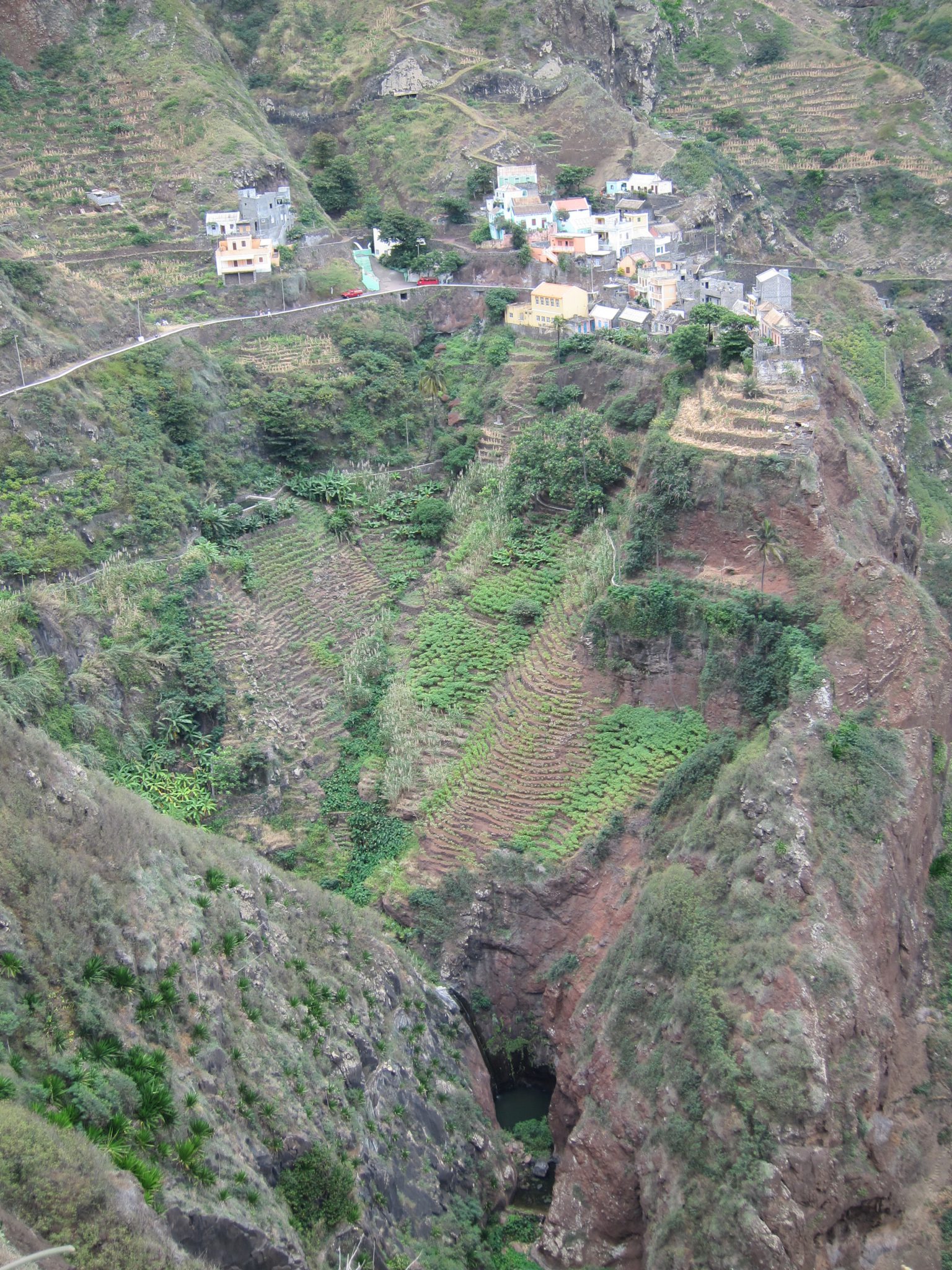Viesnīcā mums izniedz līdzņemamās brokastis un stumjamies ar koferiem uz prāmi. Pa ceļam saskrienamies ar jauko spāņu pāri, ar kuriem kopā bijām Boavistas viesnīcā. Prāmis maksā 770 eskudos (ap 7 eiro) un drīz jau esam ceļā uz Santo Antao salu, kura redzama pavisam netālu. Aptuveni pēc stundas brauciena esam klāt Porto Novo. Gribam tikt uz citu pilsētu – Ponte de Sol un zinām, ka šeit pieejami tā saucamie “Kolektiv”, kaut kas stipri līdzīgs mūsu mikroautobusiem. Mums uzklūp bars ar šoferiem, pirmais piedāvajums ir 4,50 eiro. Izklausās labi, bet nolemjam vēl pārbaudīt cenu. Izšķiramies un pēc brīža satiekamies katra savu piedāvātāju. “Pa cik tev?”, prasu. “4 eiro”, Laura saka. “Un cik Tev?”, Laura prasa pretī. “Arī 4”, mēs sasmaidāmies. Lauras atrastais jaunietis nodrošina šoferēšanas pakalpojumus, manis atrastais finālā piedāvā gida pakalpojumus. Viņš sola pēcpusdienā piebraukt uz Ponte de Sol un izklāstīt savu piedāvājumu. Nu labi ir, lai jau klāsta, atteikt var vienmēr.