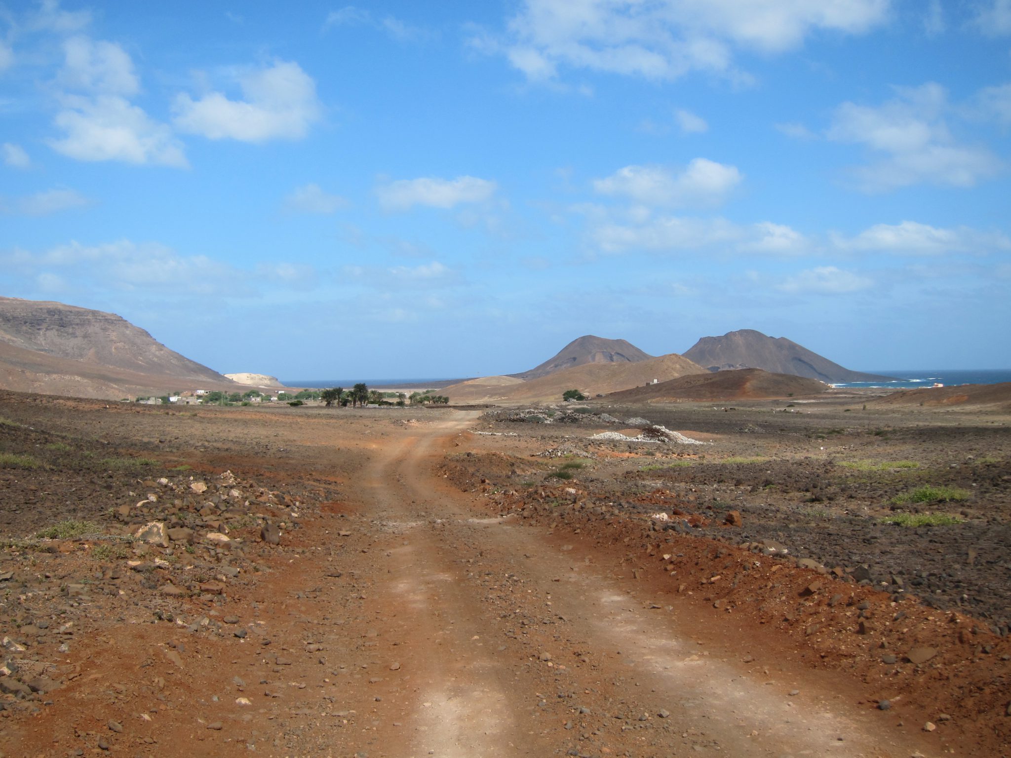 Nogriežamies manis izraudzītajā ceļā un man tas patīk. Apkārt sarkanīgi akmeņi un smiltis, tālumā tādas pašas nokrāsas kalni un vietām par ceļa esamību liecina vien pāris iepriekš braukušu auto riepu nospiedumi. Tie brīžam aizved katrs savā virzienā, lai atkal pēc laiciņa satiktos. Mūsu džipam šis ceļš ir nieks, braucam uz priekšu kā lielie. Ieraugām pie horizonta okeānu un es ceru, ka ceļš iet līdz tam. Tā arī ir. Pēc brīža novietojam auto netālu no pludmales un aizejam līdz okeānam. Kāda cita mašīna apstājusies tieši pludmales smiltīs, laikam makšķernieki. Tālumā redzam nākam šurp kādu ģimeni, kas starp akmeņiem ko garšīgu lasa, jo ir bēgums.