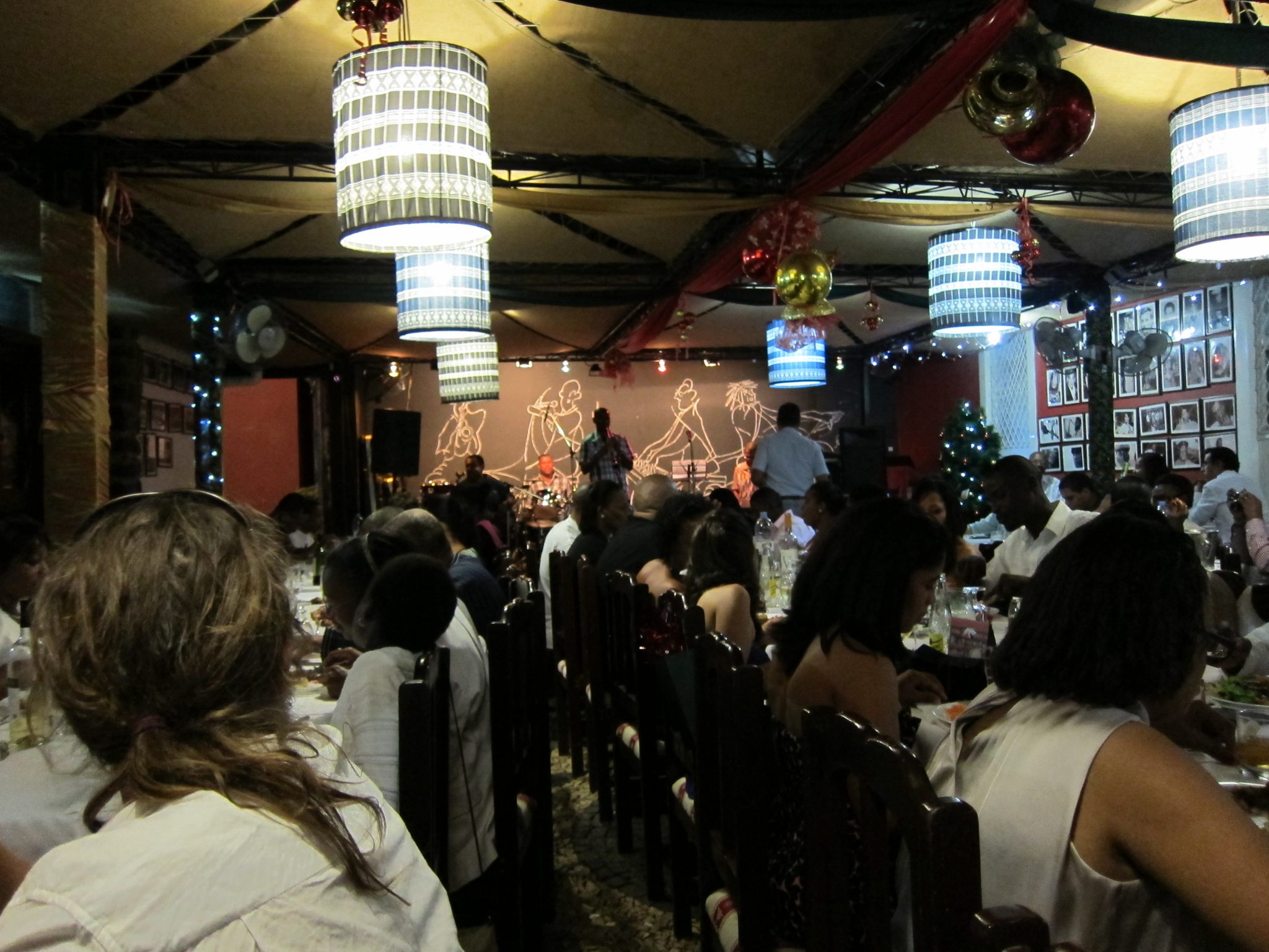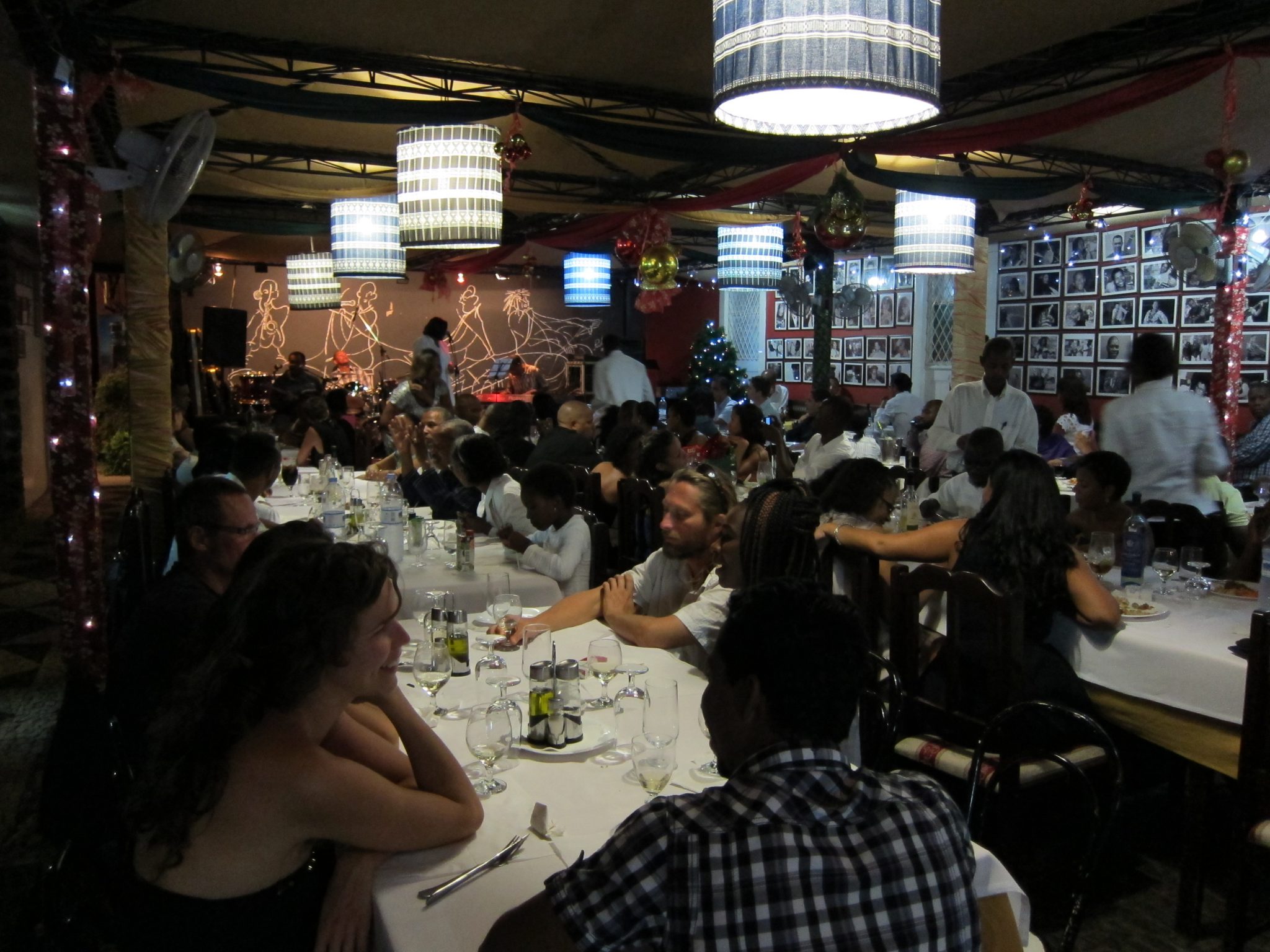 Restorāna priekštelpā atkal sastopu savas garās paziņas, nosmejamies visas par mūsu kārtējo satikšanos. Restorāns ir smalks un lielisks. Esam vieni no pirmajiem viesiem, pasūtām vīnu, čalojam un gaidām, kad atvērsies bufete. Kad tā atveras, badīgi metamies virsū plašajai ēdienu izvēlei – dažādi pagatavotajām zivīm, gaļai, dārzeņiem. Ēdiens ir ļoti gards un atmosfēra lieliska. Nemanot restorāns ir piepildījies ar cilvēkiem un nav neviena brīva galdiņa. Uz skatuves uzstājas grupa, kura dzied populāras Kaboverdes dziesmas, daudzi dzied līdzi un vēlāk arī turpat pie galdiem, piecēlušies dejo līdzi. Ak, kā es gribētu, lai šeit šovakar būtu Laura. Viņai noteikti būtu ļoti paticis. Es šovakar saņemu kompenāciju par vakardienu dubultā.