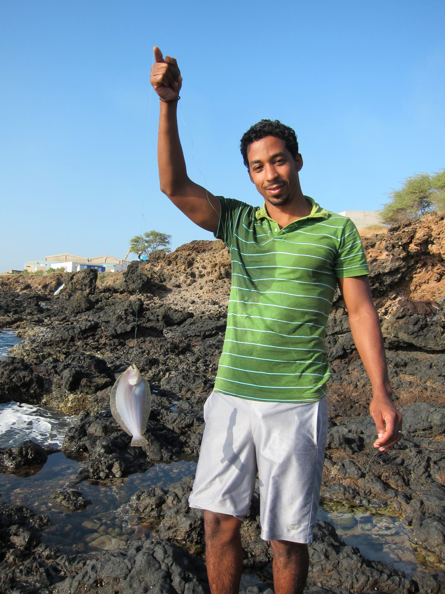Aizeju uz veco vietu, vismaz tur ir drošāk. Kā priekšpēdējo Emanuels izvelk patiešām lielu zivi, bet pati pēdējā, īsi pēc izvilkšanas noraujas un sākumā iekrīt ūdens lāmā, bet tad vilnis to izglābj, ieskalojot atpakaļ okeānā. Metam mieru makšķerēšanai, jo līdz lidmašīnai palikušas pāris stundas. Nodomāju, cik jocīgi – uz pirmo pārlidojumu Kaboverdē, es jau ap šādu laiku sēdēju lidostā, tagad stāvu un mierīgi makšķerēju.