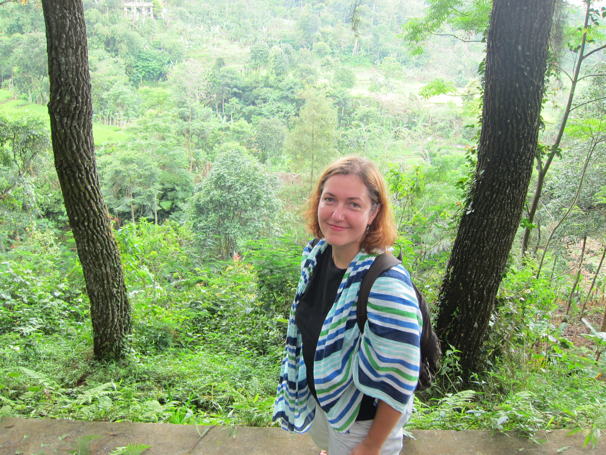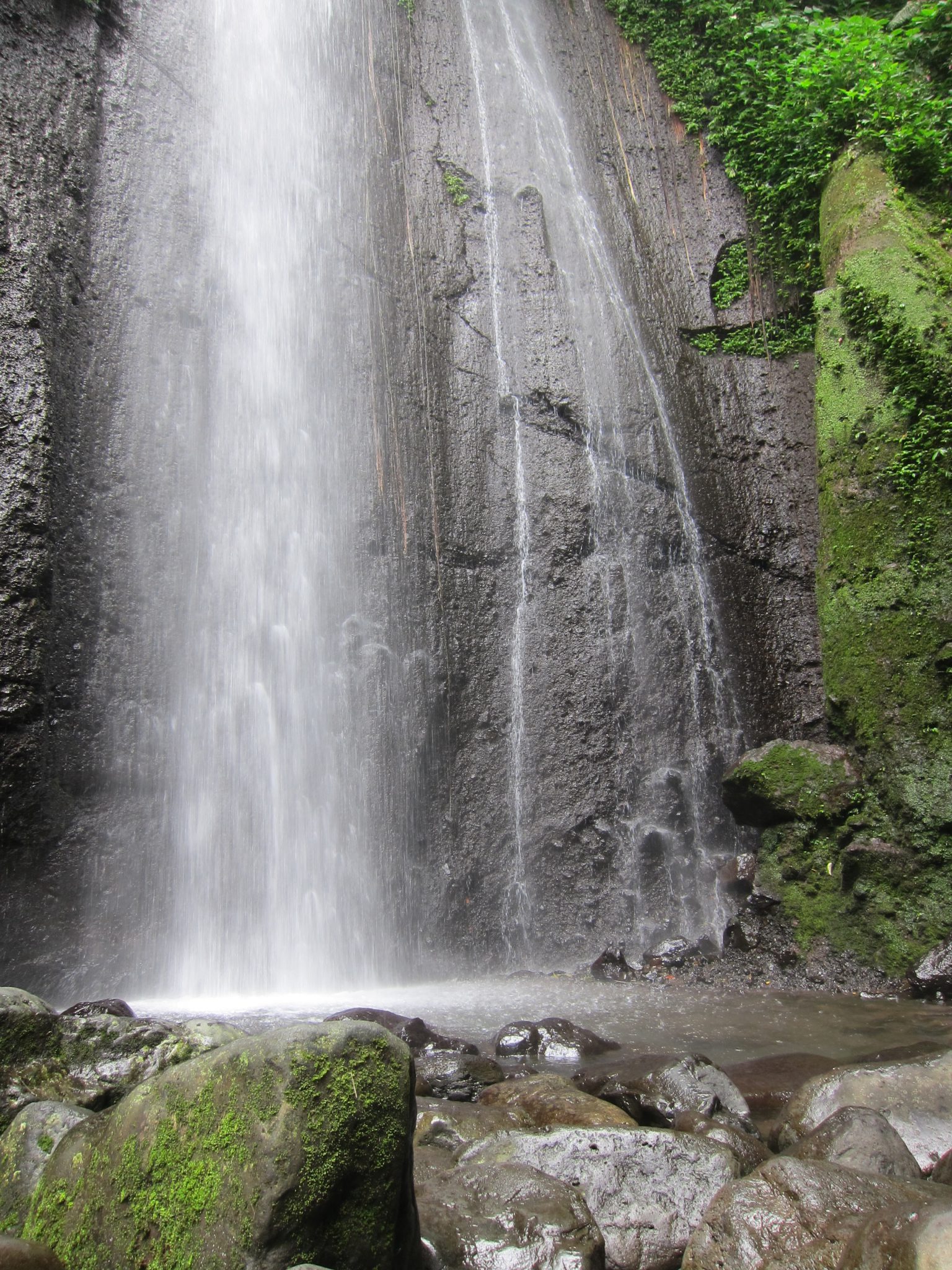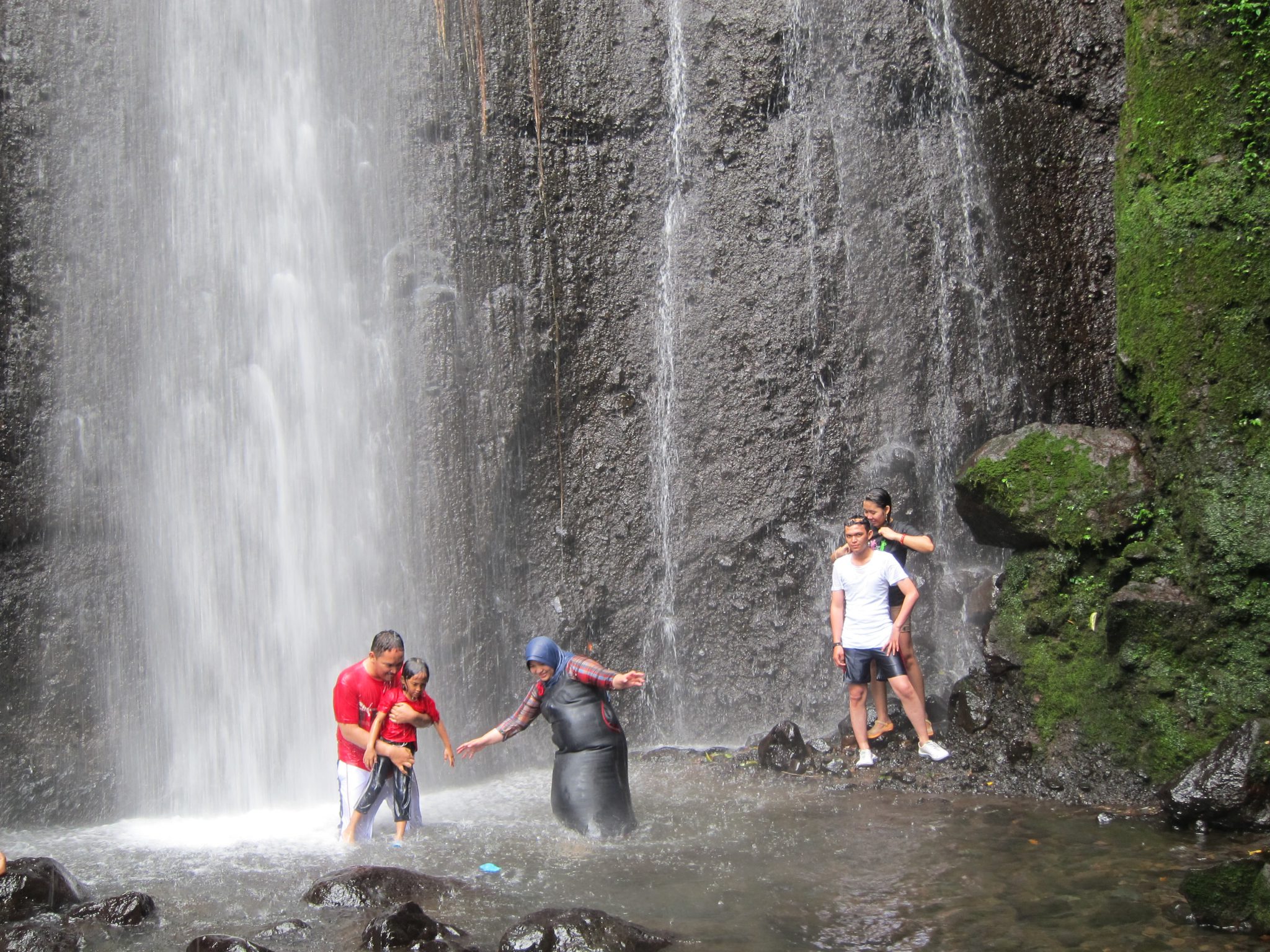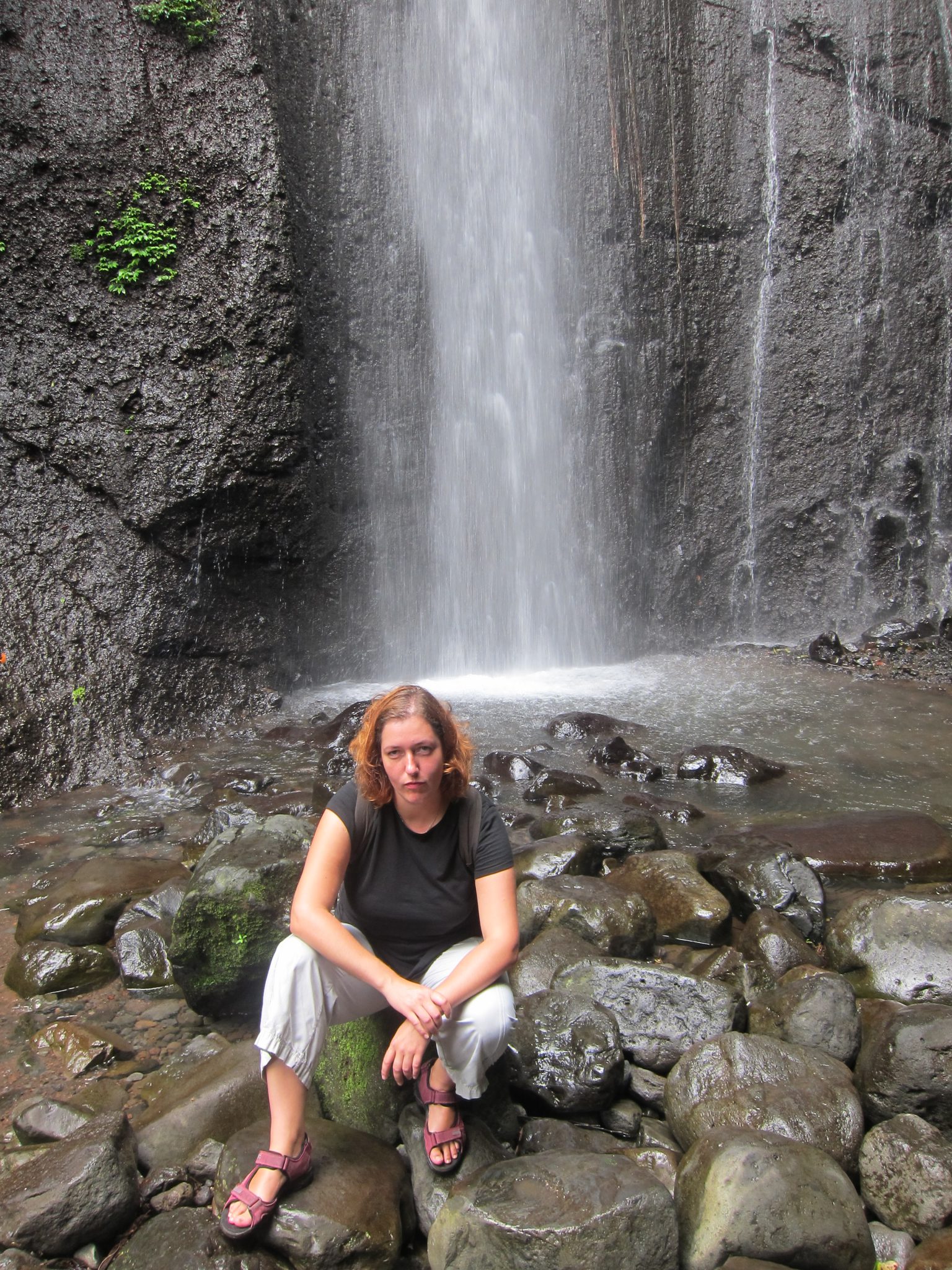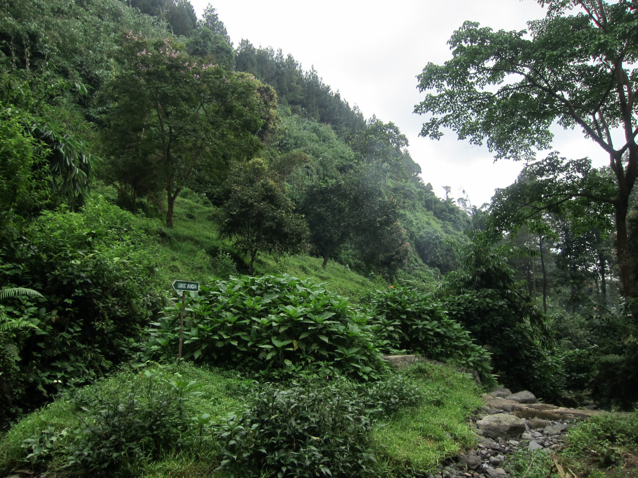 Iekoduši un padzēruši rīta kafiju, dodamies uz Curug Nangka (curug – ūdenskritums; nangka – džekfruits). Pa akmeņiem lēkādami, ejam augšup pa upes straumi, līdz nonākam pie burvīga ūdenskrituma. Ūdens gāžas no kādu 30 metru augstuma, radot dabīgu spa. Reina ar Tomu izmanto iespēju ielīst zem “dušas”, es šoreiz atturos, jo negribu pēc tam visu ceļu pārvietoties slapjās drēbēs un apavos. “Zini, diezgan sāpīgi”, pēc procedūras atzīst Toms.