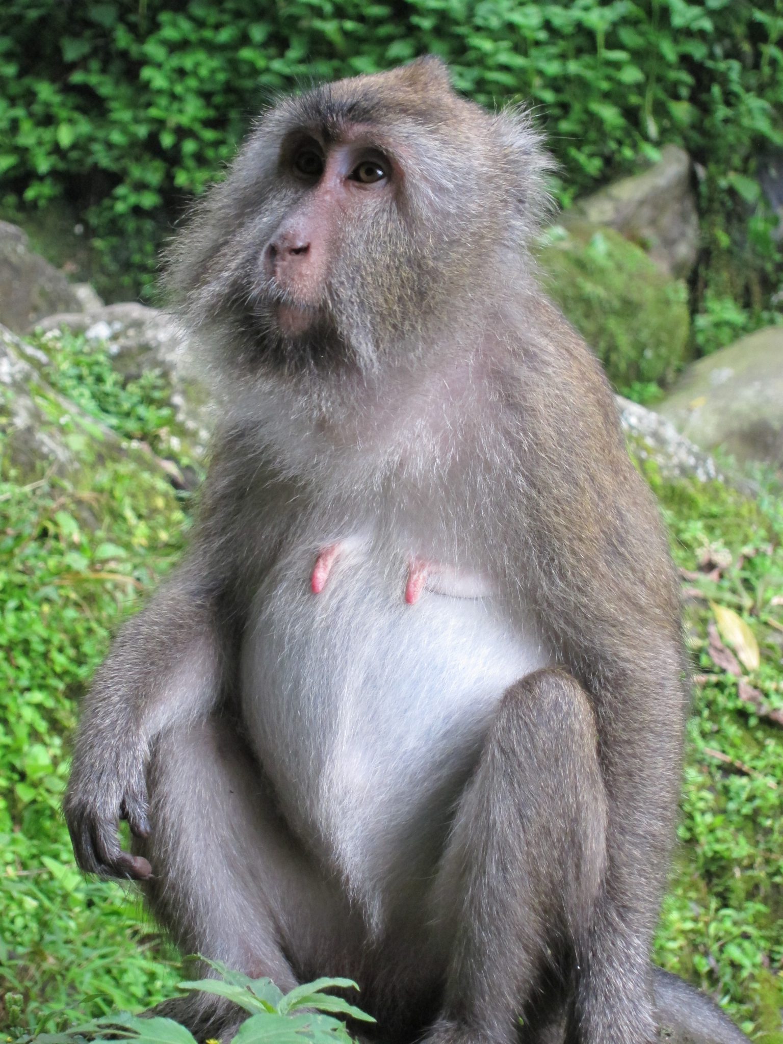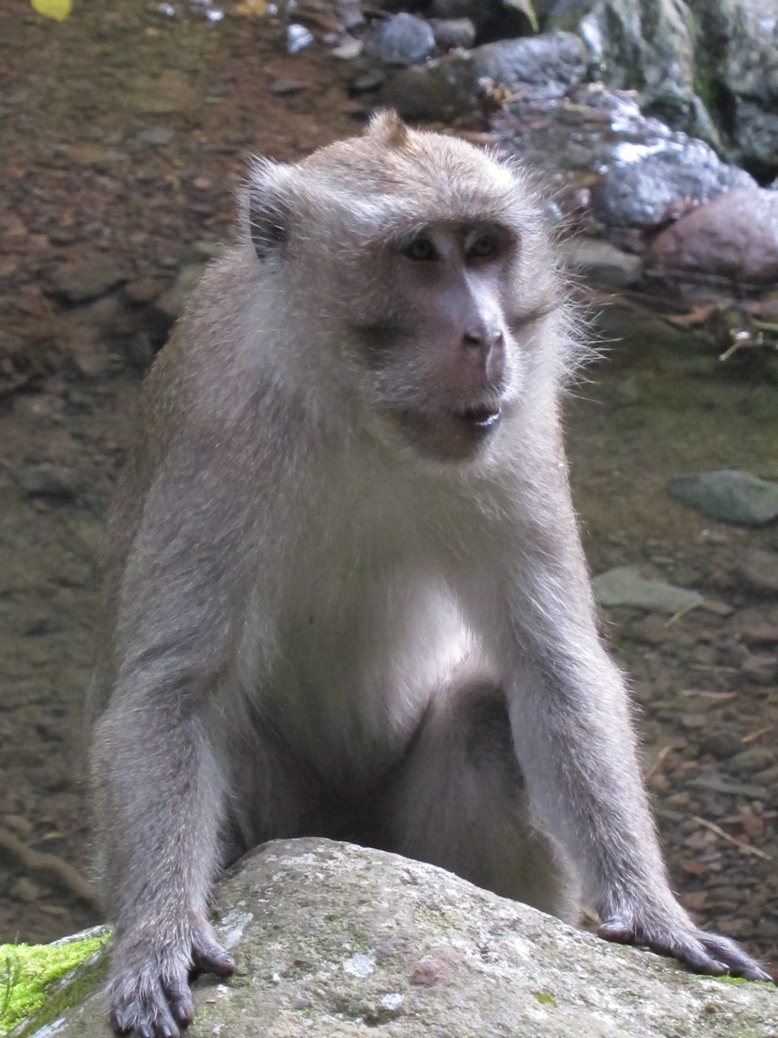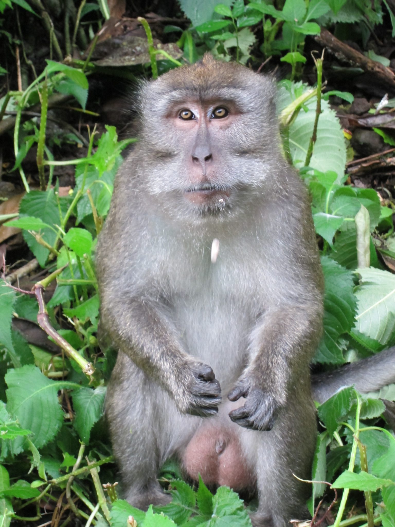 Pagājušies augstāk kalnos, sastopam mērkaķu baru. Tieši viņus arī meklējam, mums līdzi ir zemesrieksti, lai draudzētos ar zvēruļiem. Ēd no rokas. Labu laiciņu pavadām ķerot kadrus un barojot kustīgos radījumus. Brīdī, kad barvedis sāk kļūt nejauks, nolemjam, ka gana esam socializējušies ar senčiem, un visi zūdam kokos – mērkaķi uz vienu pusi, mēs uz otru.