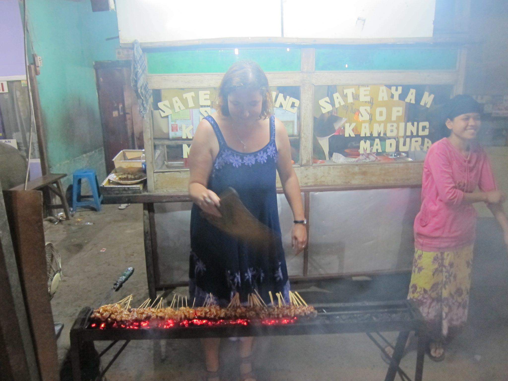 Brālēna mājās pārģērbjam sausas drēbes, pateicamies par naktsmājām un, pārmaiņas pēc ar vilcienu, dodamies atpakaļ uz Džakartu. Sākumā braucam uz Toma viesnīcu, paņemt viņa mantas, pēc tam kopā dodamies pie Reinas. Atkal jau esam izsalkuši un dodamies apēst kādu sate – gaļas iesmiņus ar īpašu mērci. Nezinu, vai tāpēc, ka piedalījos cepšanā, vai tāpēc, ka aiz muguras gara diena vai kā, bet man nenormāli garšo. Reinai ar Tomu atkal ir iemesls ierēkt par manu svētlaimīgo seju.