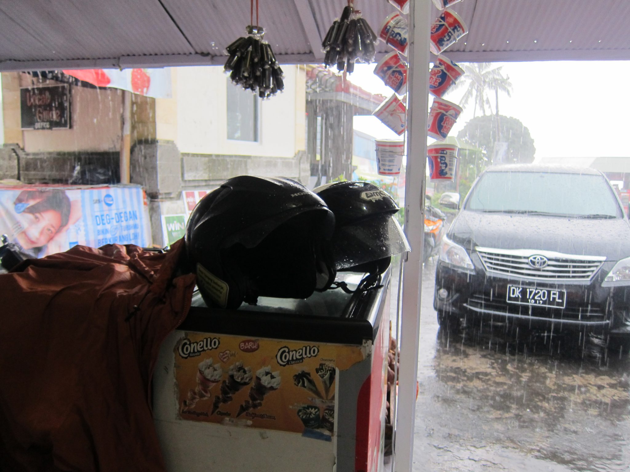 Beidzot esam ieradušies Kintamani, mūsu šodienas galamērķī. Piestājam pirmajā vietā, kur rakstīts homestay Miranda. Rivfals aiziet izzondēt situāciju un atgriežas ar tekstu, ka istaba maksā 120 000 rūpijas (6 lati). Man pilnīgi vienalga, cik tā maksā. Gribu siltumā, gribu uz tualeti, gribu karstu tēju, gribu novilkt slapjās drēbes. Pa ceļam kādā brīdī sapņoju par karstu vanna un tad pati sevi atsaucu realitātē, sakot, ka, visticamāk, labākais, kas mani vakarā sagaidīs, būs auksts ūdens taziks. Tā arī ir.