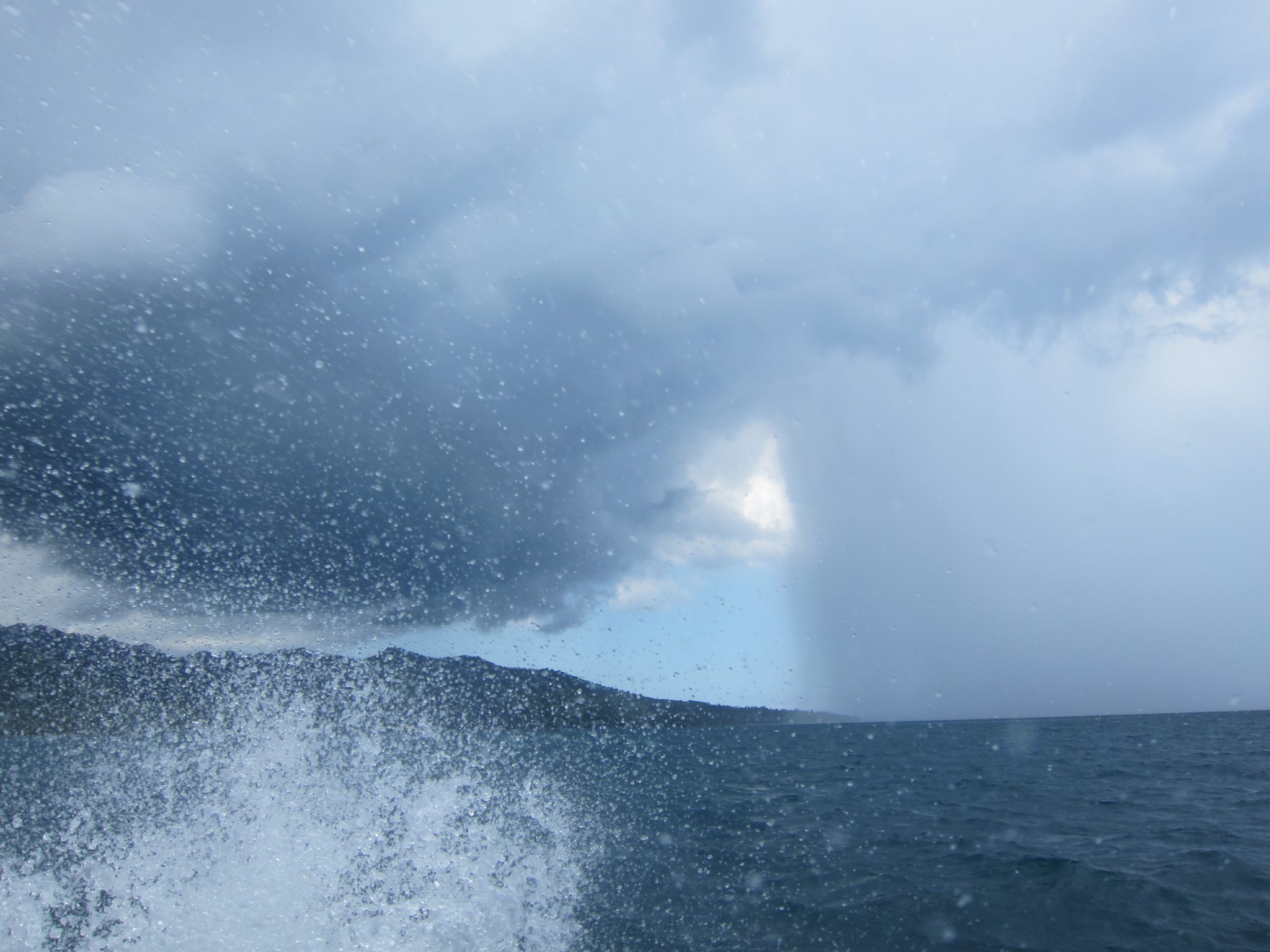 Mans busiņa paziņa ir paspējis paēst pusdienas un pa laivas ārpusi arī atnāk līdz priekšgalam. Apsēžas uz laivas purna ārpus kabīnes un saka, lai es arī tur nākot. Ok. Es izlienu ārā, apsēžos uz virves rituļiem un esmu gatava ceļam. Šī gan nav stratēģiski labākā vieta, jo brīžiem viļņi sitas tik augstu, ka tieku pilnībā apšļakstīta. Bet ūdens ir silts, saule spīd un es izbaudu procesu. Izskatos tik laimīga, ka mans ceļabiedrs pēkšņi sāk vērties ar saldu skatienu un klāstīt murgus par salas parādīšanu. Būtu šeit dilles, aizsūtītu tajās.