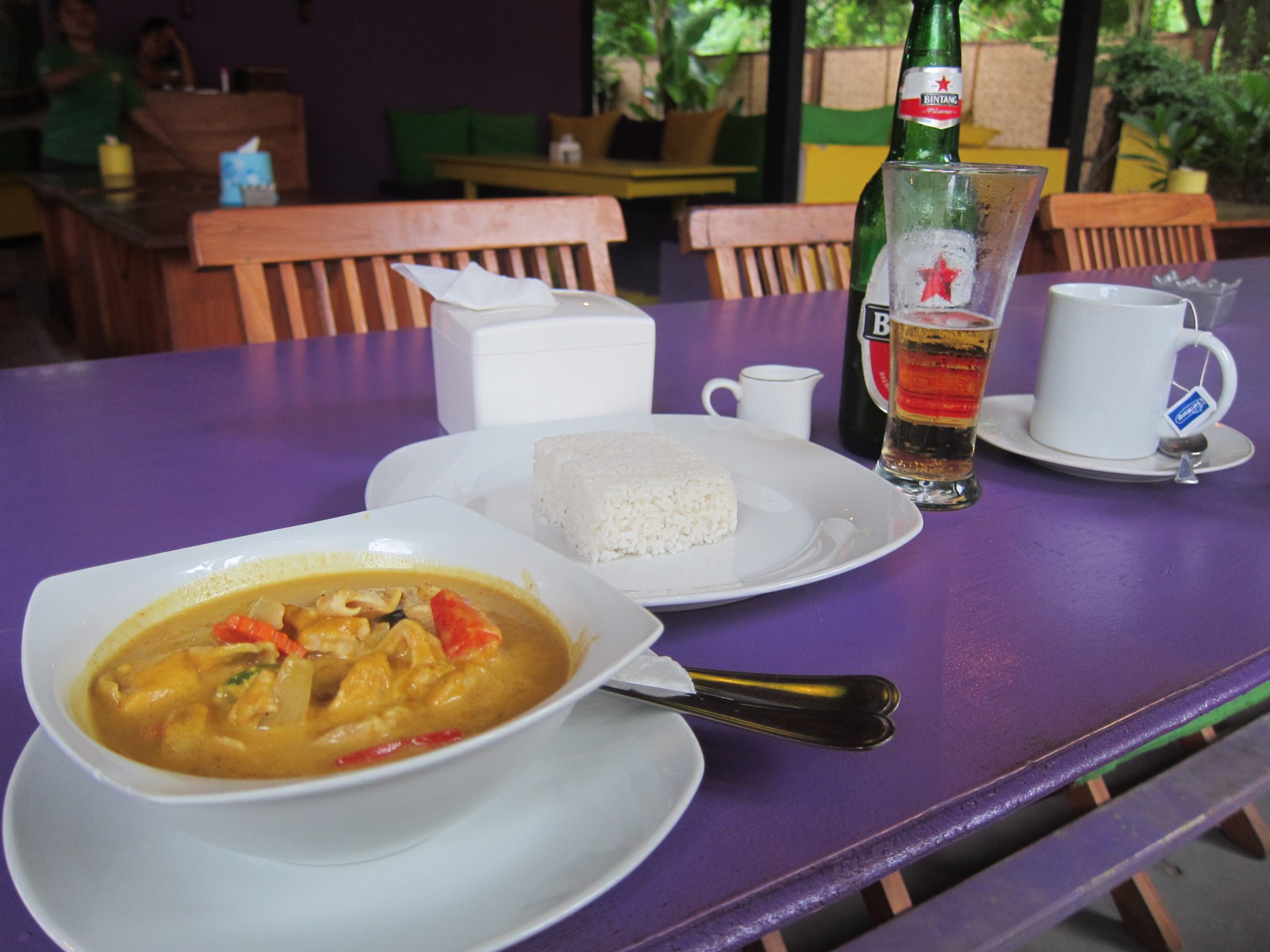 Lēnām rāpjos šejienes vienīgajā kalnā, jo ceļvedis apgalvo, ka no tā paveroties neaizmirstami saulrieti. Šobrīd gan man neaizmirstami kož odi un slīd kājas, bet neko vairāk par brikšņiem un krūmājiem neredzu. Krietnu brīdi nocīnījusies, ieraugu tālumā gaišāku vietu un nodomāju, ka tūlīt būšu pie lieliskajiem skatiem. Pēc neilga brīža nonāku pie milzīga telekomunikāciju toņa pakājes. Nu, nevarētu teikt, ka skata nav nekāda, bet pārāk dižens tas nav, tāpēc rāpjos vien pa otru kalna pusi atkal lejā. Ietrāpu tieši ciemata vidū un lavos gar kazlēniem, vistām un mēslu ratiem uz priekšu. Esmu nozaudējusi orientāciju un gribu ēst. Piestāju kāda taizemiešu restorāna priekšā un noskaidroju, ka esmu 5 minūšu attālumā no savas naktsmītnes. Aiz priekiem pasūtu karstu tēju, aukstu alu un vakariņas.