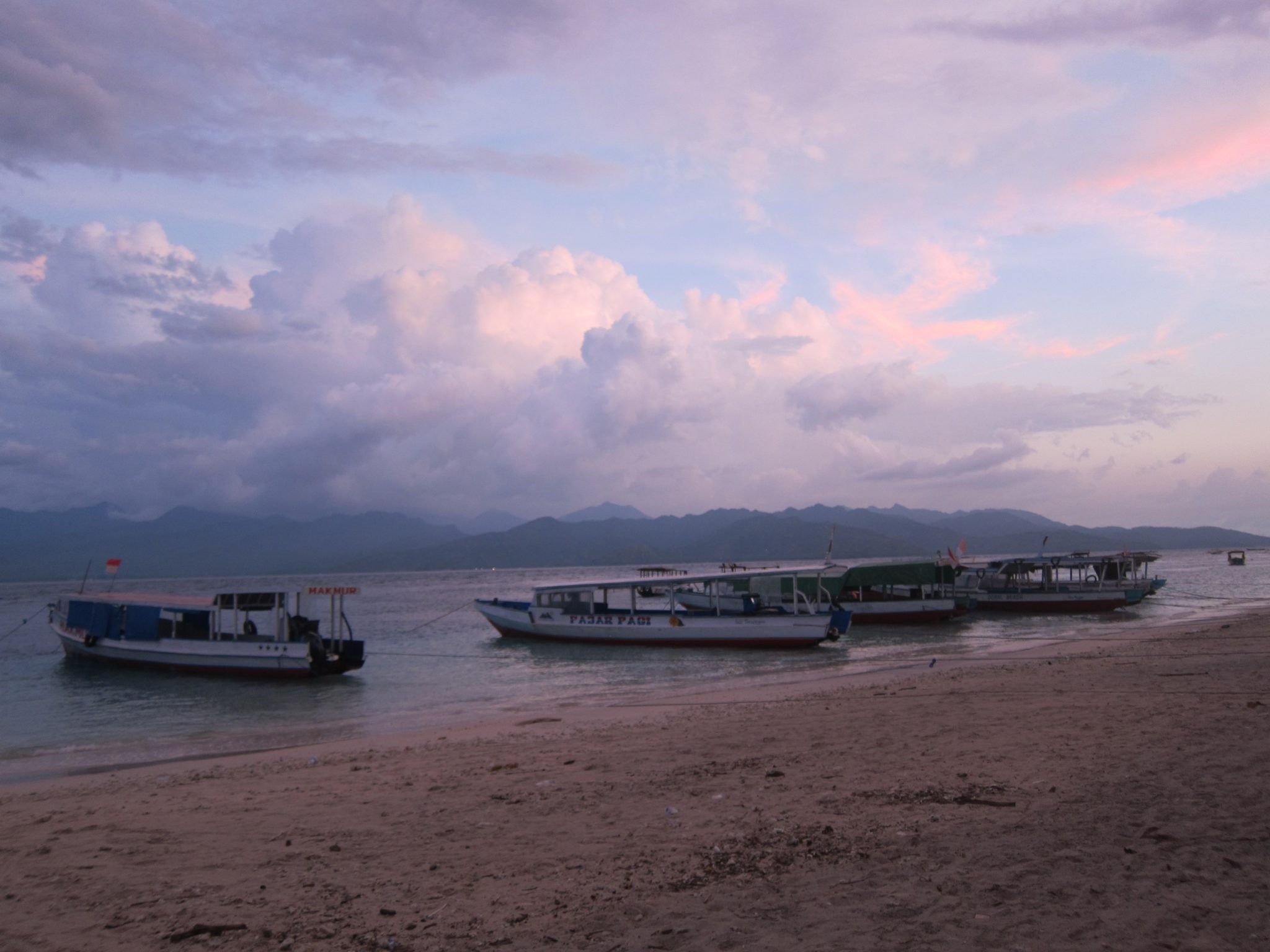 Gili salas ir trīs – Trawangan, Meno un Air. Katrai raksturīga sava atmosfēra. Es piestāju pie lielākās un ar ballītēm slavenākās salas – Trawangan. Starp salām kursē arī hop-on, hop-off laivas, ja gribēšu apskatīt kādu citu salu, izmantošu tās.