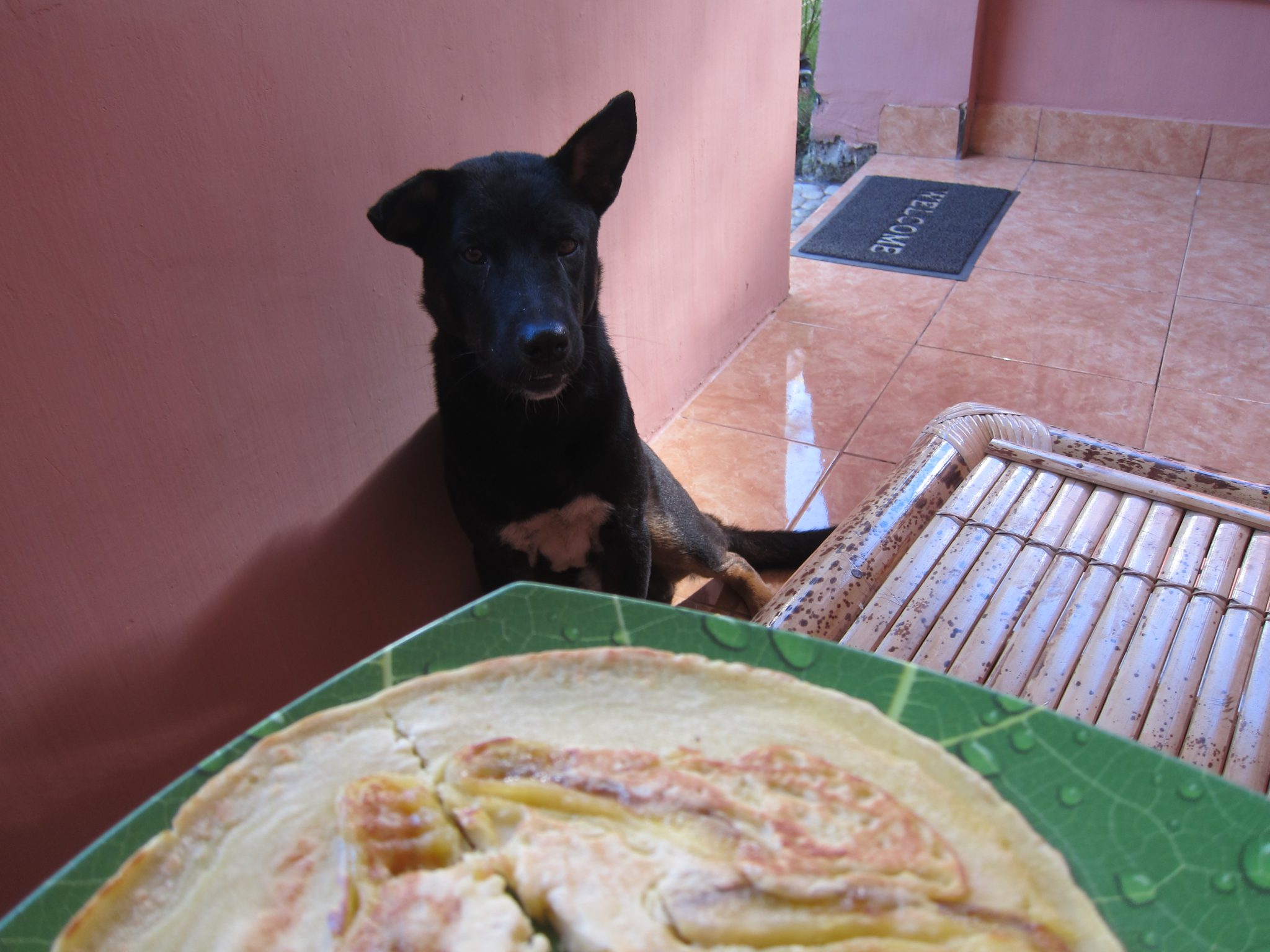 No rīta brokastīs man tiek atnesta solītā banānu pankūka. Melns suns ar siekalainu skatienu pavada katru kumosu. Būtu zinājis kā garšo pankūka, nebūtu tā siekalojies. Esmu tikko paēdusi, kad klāt ir gids – vakardienas vienošanās ietvēra arī nelielu pastaigu līdz ūdenskritumiem.