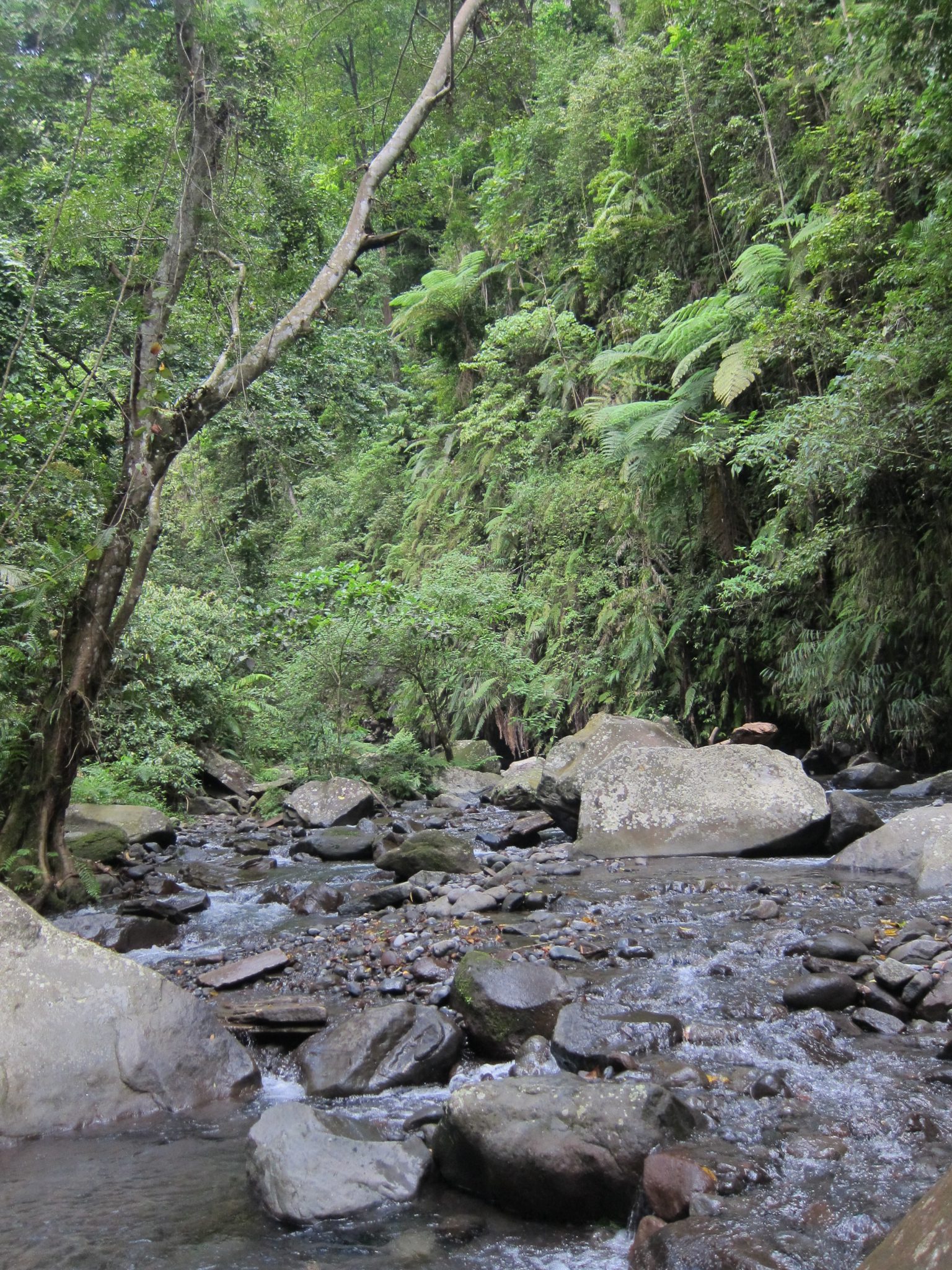 Vienā ziņā gan gids ir labs – viņš zina izrādīt vietējo floru un faunu, kas mani kā vienmēr dikti interesē. Par visām odziņām prasu – vai tās var ēst, pamatā saņemu noraidošu atbildi. Manu joku par to, ka vienreiz jau var, viņš nesaprot. Tērgājot, lēnām tuvojamies otram ūdenskritumam. Šeit peldoties gadi netiek apdraudēti, tad nu uzģērbju peldbikses un metos iekšā. Peldēšanās šeit ir visai relatīvs jēdziens, jo ūdens triecas zemē ar tādu spēku, ka nav, ko elpot. Mēs arī aizlienam aiz ūdenskrituma un, uz klints malas stāvot, vērojam, kā mūsu priekšā gāžas balta ūdens siena. Varens skats!