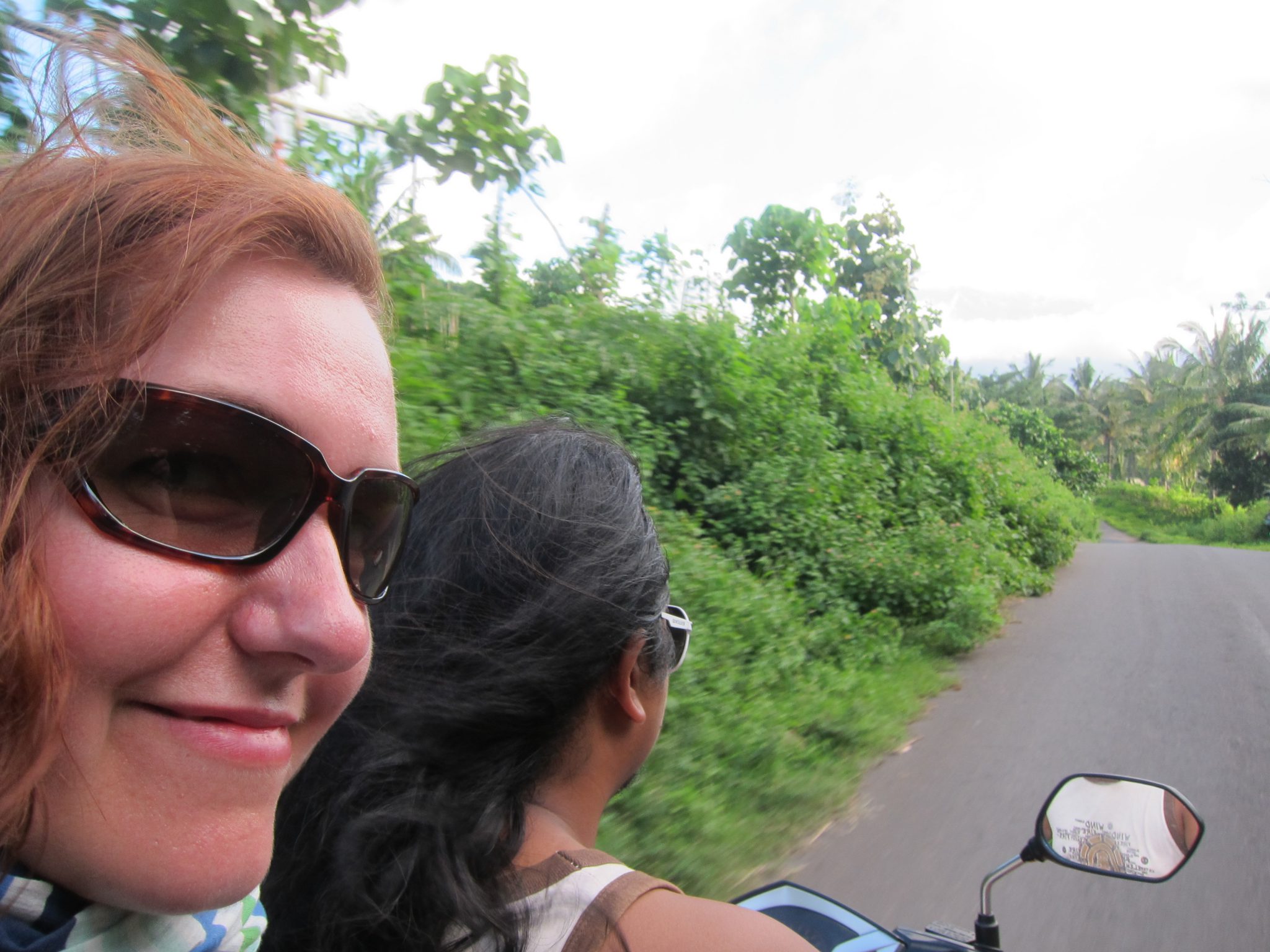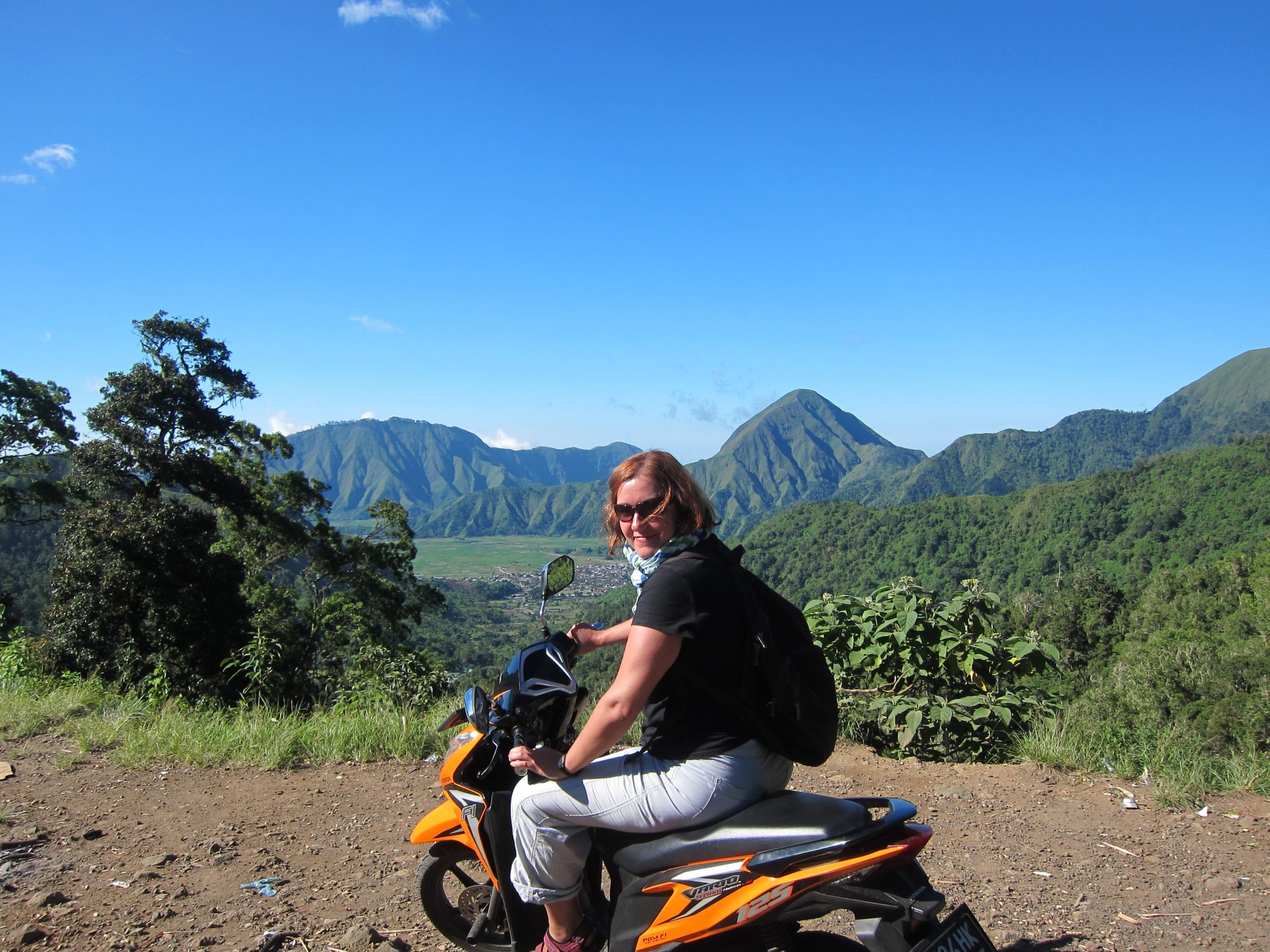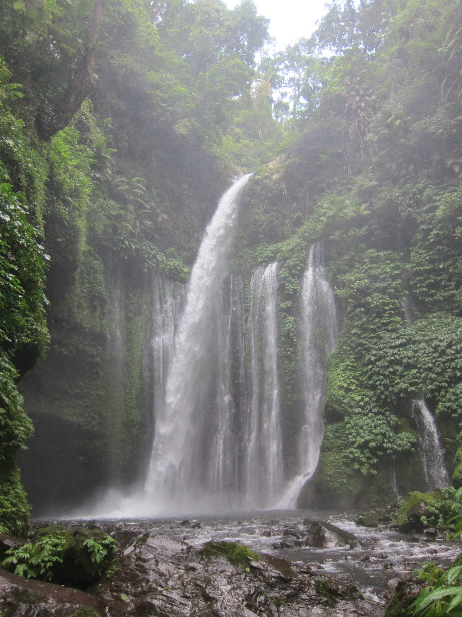 Man reāli patīk Lombok sala. Viss ir zaļš, kalnains, tūristi ārpus īpašiem apskates objektiem nerādās. Braucu un kaifoju. Piestājam paēst nelielā kafejnīcā, kas pieder Džona draugu ģimenei. Ēdiens ir gards un viena no meitenēm perfekti runā angliski. Tāds atvieglojums parunāties pilnos teikumos.