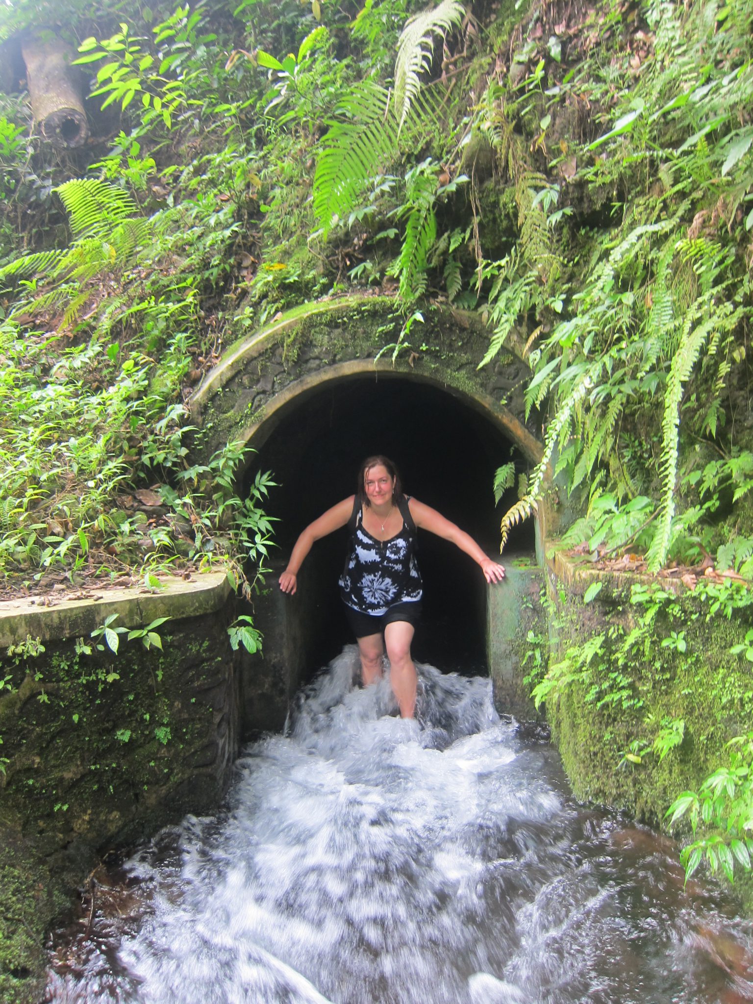 Manu gidu sauc Amen vai Omen, kaut kas tādā garā. Vismaz atcerēties viegli. Tad nu abi ar Omenu tipinām lejup pa kāpnēm, līdz nonākam pie pirmā ūdenskrituma – kas tajā peldoties, kļūstot gadu jaunāks. Man mans vecums tīri labi patīk (Omens man vispār piedāvā tikai 25), tāpēc dodamies taisnā ceļā uz otro ūdenskritumu. Šeit jau gājiens kļūst interesantāks – brīžam jābrien pa seklu upi, tad jāšķērso jau nopietnāka upe pa betona apmali ar lieliem caurumiem vidū. Omens stāsta, ka kāds vīrs, kuram bijusi augstuma fobija, šo vietu šķērsojis teju pusstundu un rāpus. Es, savukārt, neģēlīgi tēloju klupienu pie pēdējā šķēršļa, tieku saķerta un, kad mana viltība ir pamanīta, tieku arī drusku norāta. Nu kaut kā tak nopietnais cilvēks jāuzjautrina. Izskatās gan, ka es vienīgā uzjautrinos.