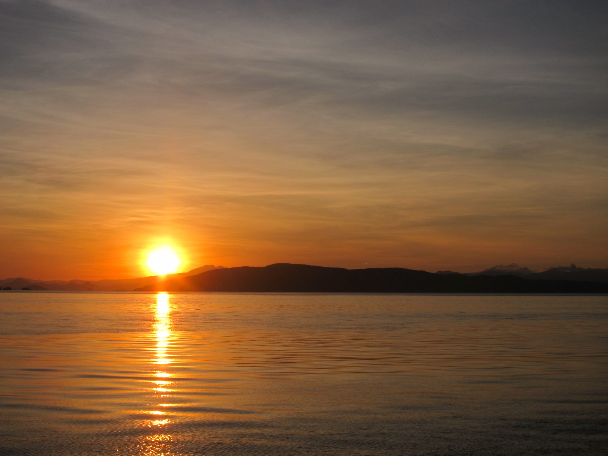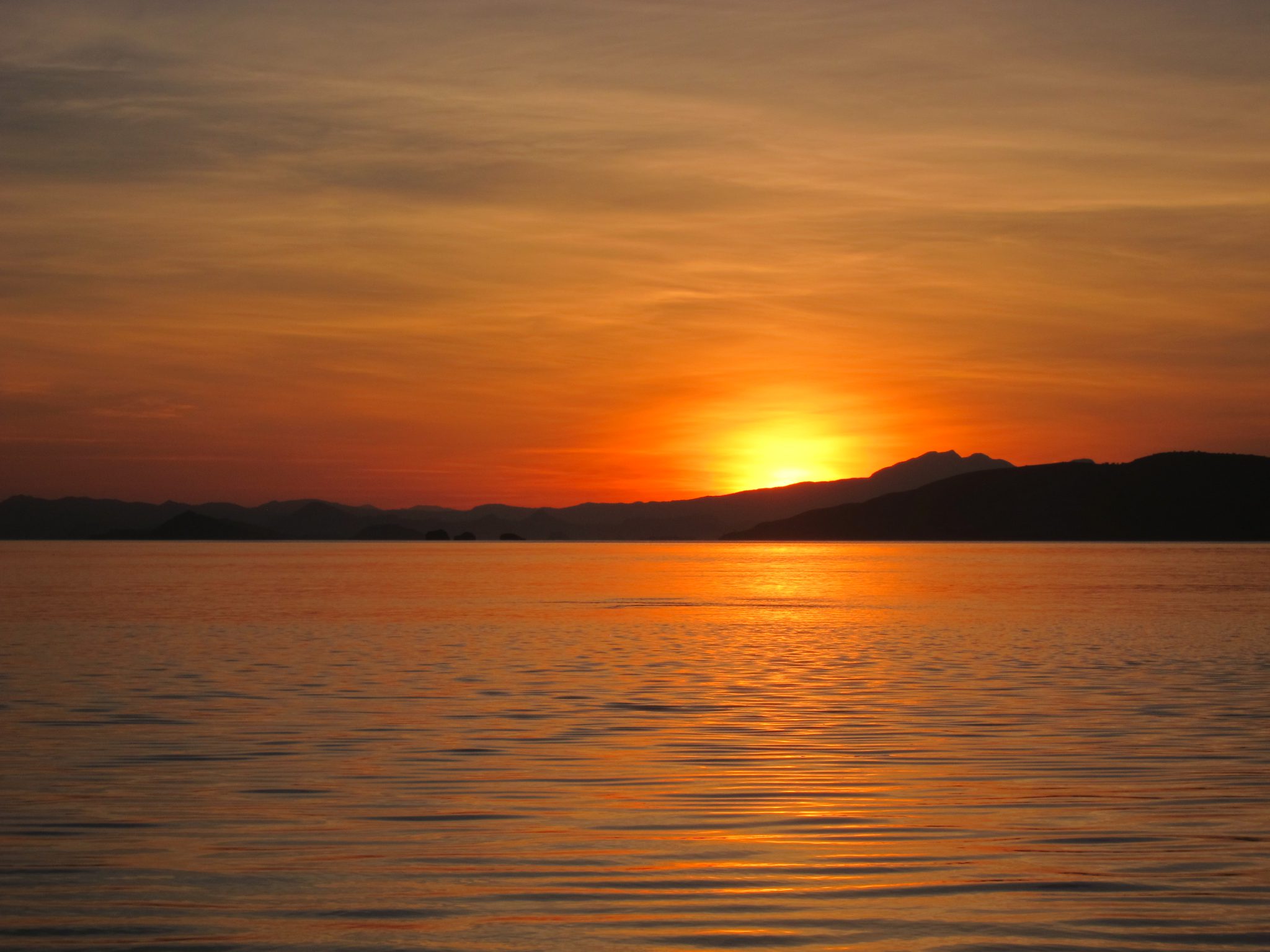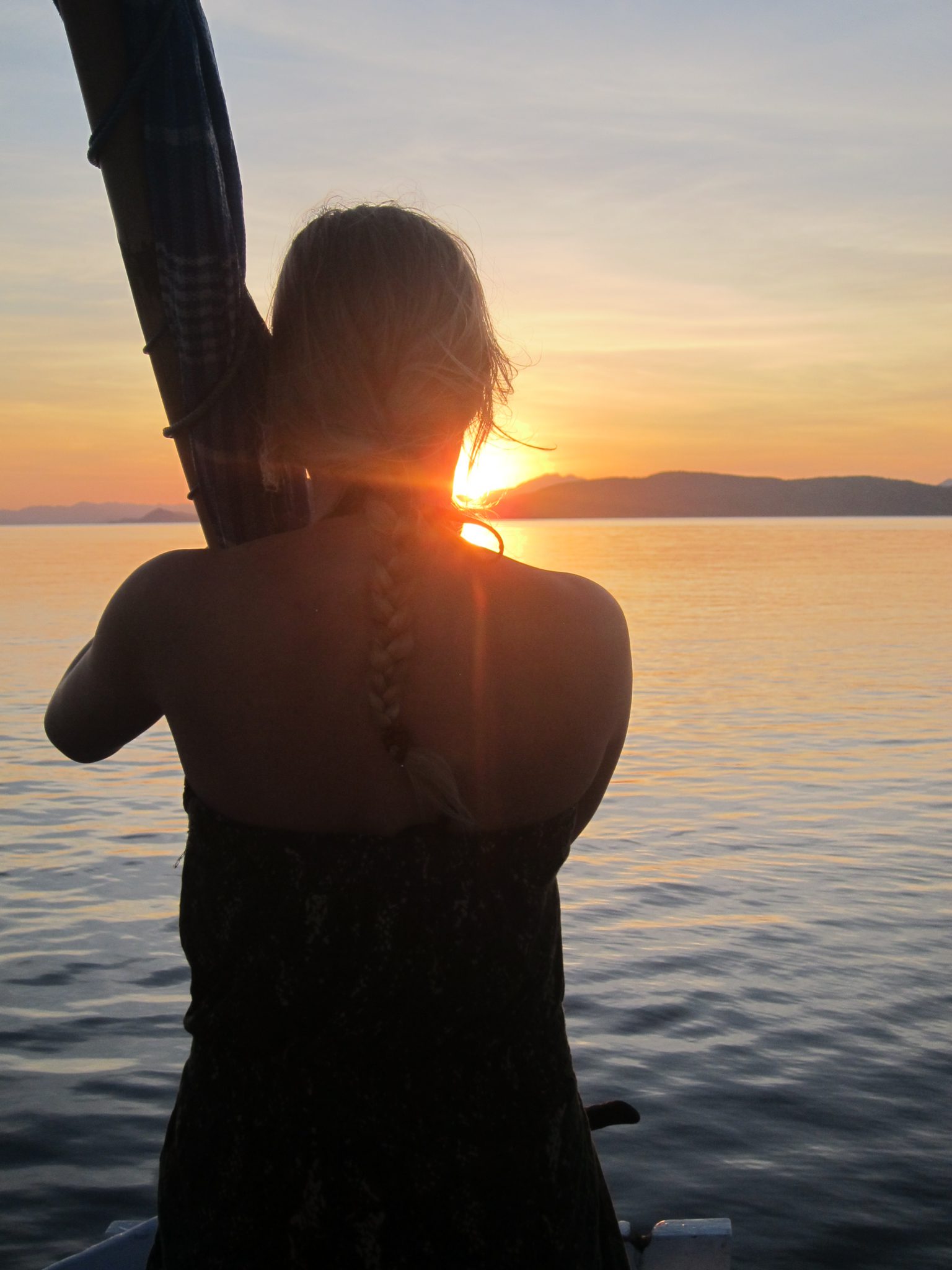 Atpakaļ vairs līst un vēlreiz visus traucēt negribas, tāpēc aizlienu uz kuģa priekšgalu, skatos naktī, skaitu zvaigznes un domāju, cik tālu ir rīts. Raustu dažas makšķerauklas, kas palikušas ūdenī, un rotaļājos ar planktonu. Tad izdzirdu no tālīnā krasta ciemata gaiļus dziedam, un īsi pēc gaiļiem to pašu dara arī musulmaņi. Tas nozīmē, ka rīts nav tālu. Drīz nakts sāk pamazām izbālēt un aust gaisma. Debesis austrumu pusē sākumā iekrāsojas viegli zilganas un dzeltenas, lēnām pārejot spilgti oranžos un sarkanos toņos. Šis ir viens no skaistākajiem saullēktiem, ko esmu redzējusi un kā par spīti mans fotoaparāts guļ kopā ar ceļabiedriem uz augšas klāja. Jo, kurš gan nakts vidū, ejot pačurāt, neņem līdzi fotoaparātu.