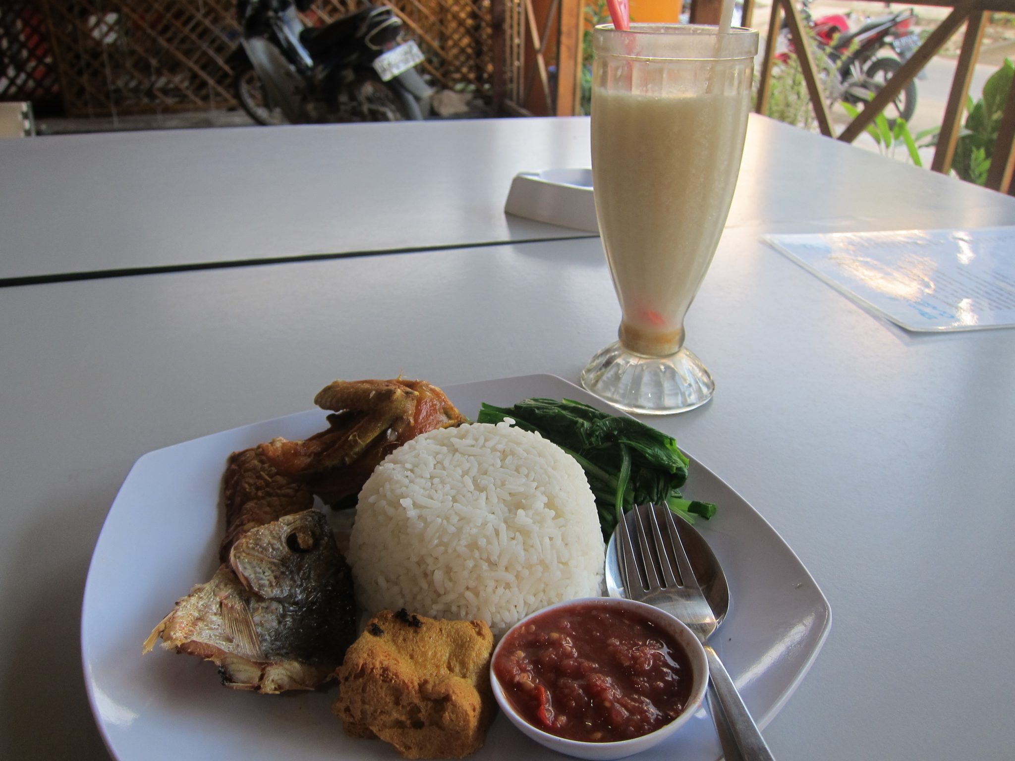 Izstaigāju mazo ostas pilsētiņu, apskatu vietējo tirgu, noskaidroju viesnīcu cenas un paēdu vakariņas. Man jāpieņem lēmums – uz kurieni un kad doties. Pameklēju lidojumus internetā, tie ir relatīvi dārgi. Bet, galvenais, es nemaz negribu lidot, man daudz labāk patīk braukt ar kuģiem. Gribu tikt ar kuģi uz Sulawesi salu, bet vietējo domas – vai uz turieni iet kuģis un kad tas iet, dalās. Nolemju, ka rīts gudrāks par vakaru, nenorezervēju neko un dodos uz kuģi pie savējiem.