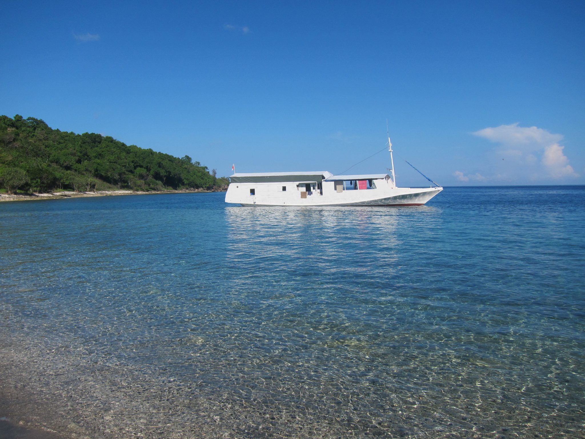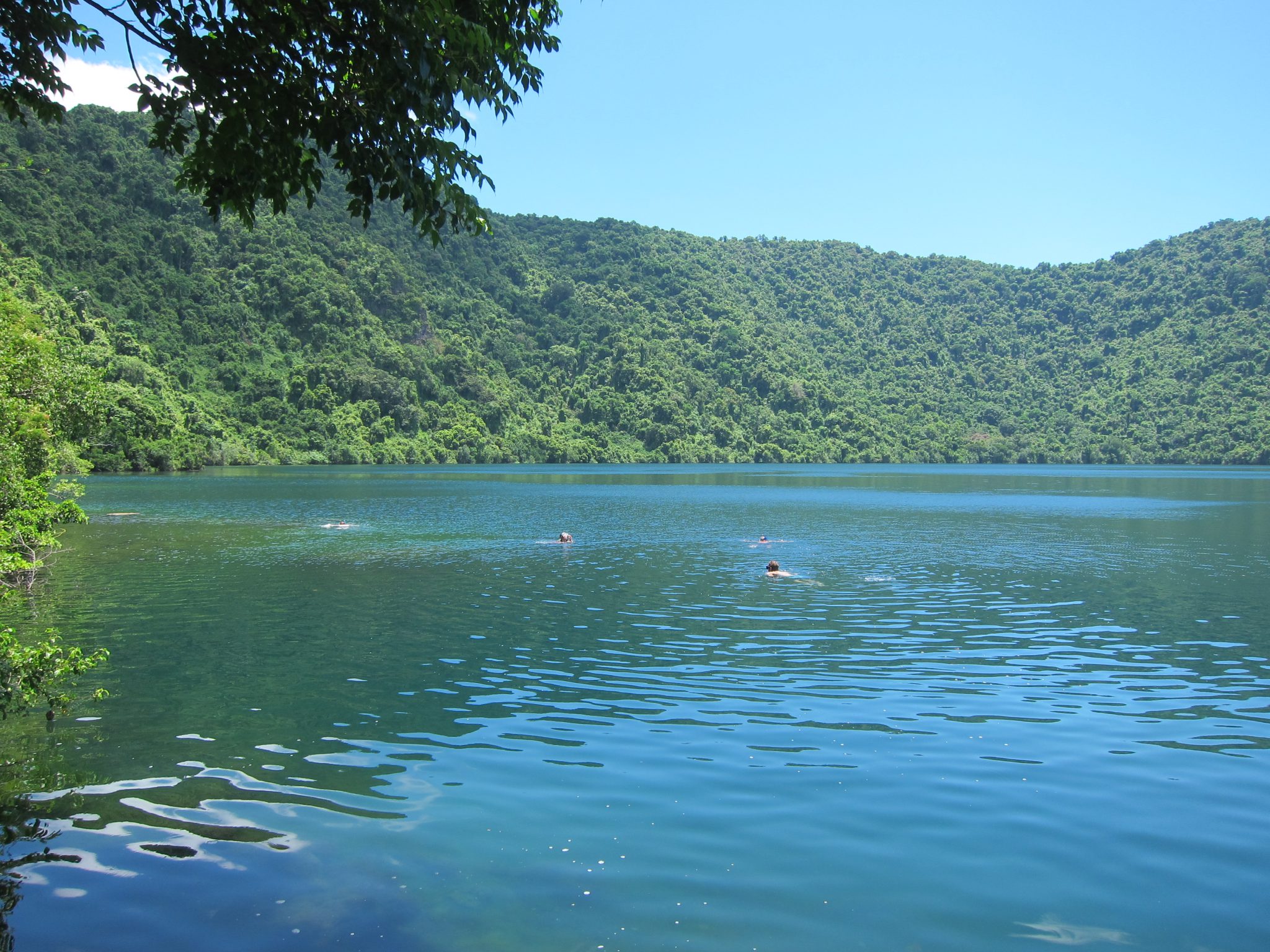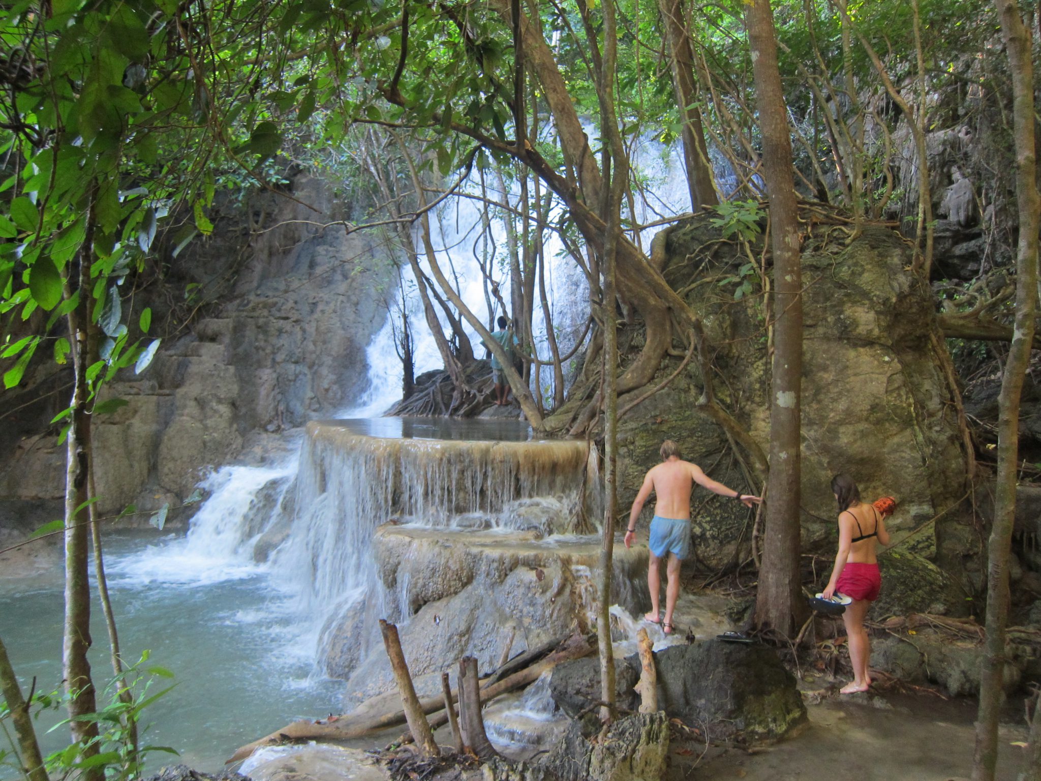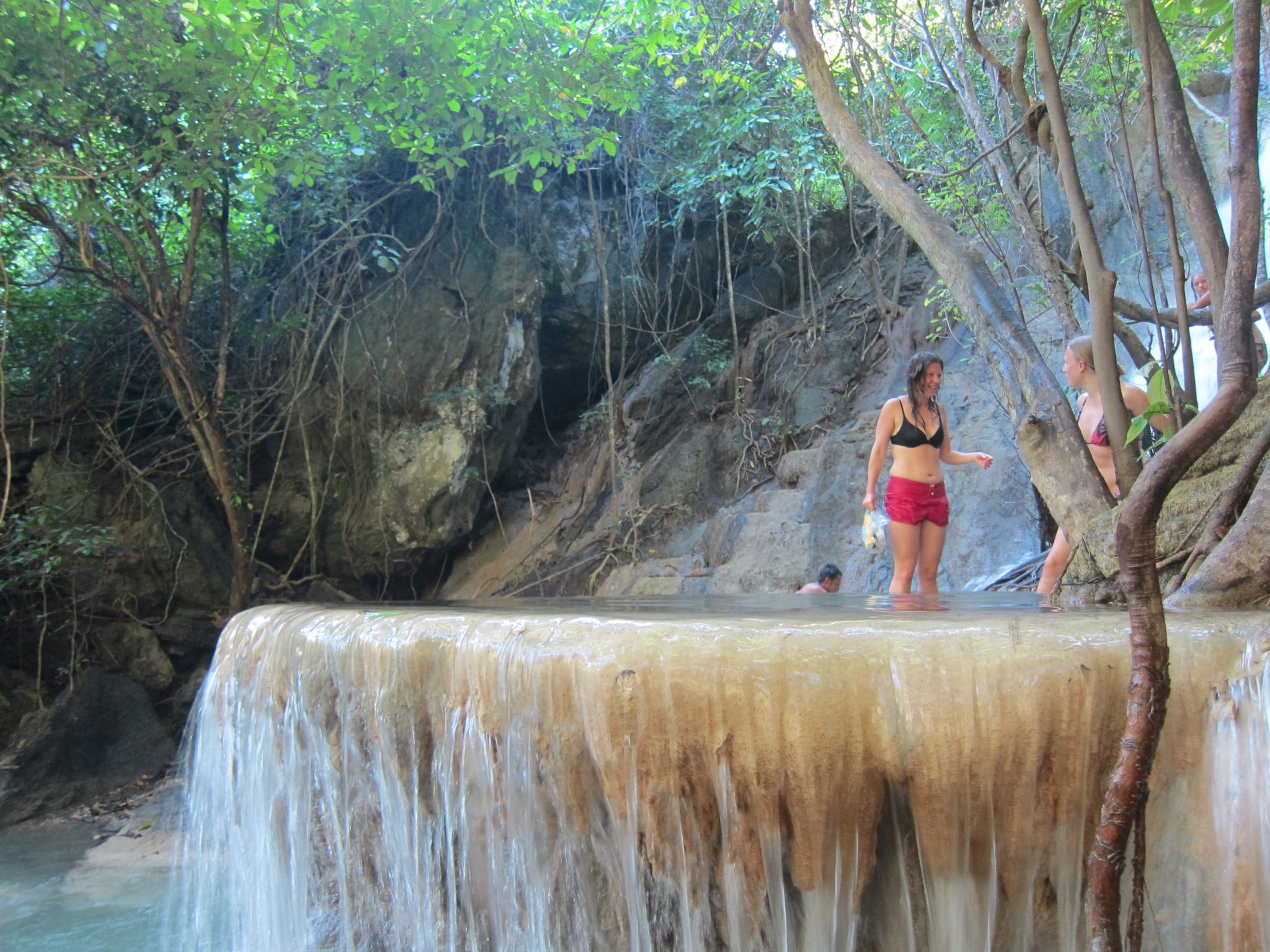 Pēc brokastīm pietauvojamies kādā līcītī. Mantas – apavus, šampūnu, fotoaparātu drīkstam salikt kastē, kas ar mazu koka kanoe laivu tiks nogādāta uz salas. Paši – lūdzu, leciet okeānā un peldiet uz krastu. To arī darām. Viens pēc otra, visi saplunkšķ iekšā ūdenī un airējas uz salu. Tur, pa džungļu takām, dodamies ūdenskrituma virzienā. Drīz tas ir klāt – īsts dabisks SPA ar muguras masāžu, džakuzi un citām atrakcijām. Vienīgi kājas drusku pinas pa koku saknēm un uz ūdenskrituma kopā ar mums par dušu priecājas mazi tārpiņi. Bioloģijas speciāliste atzīst, ka tie neesot diez ko bīstami. Ja nu kas, mūsu vidū ir arī divi ārsti.
