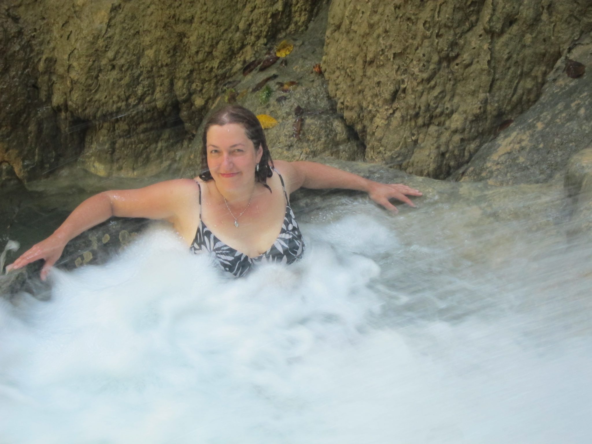 Visi centīgi ieziež ķermeni ar ziepēm, matus ar šampūnu un ļauj ūdenskritumam būt dušas vietā. Tīri un balti dodamies atpakaļ uz krastu. Laime gan nav ilga, jo, lai nonāktu atpakaļ kuģī, atkal jāpeld sāļajā okeānā.