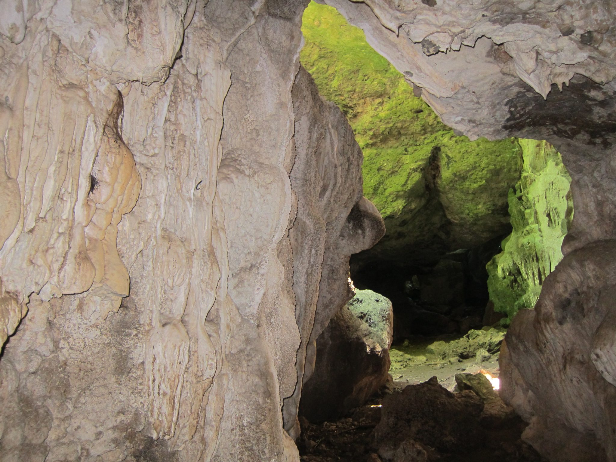 Man par prieku local ranger tīri labi runā angliski, attiecīgi uzzinu visādu informāciju par alu un ne tikai to. Pati ala ir milzīga, ar daudzām ejām. Gluži uz vēdera nav jālien, bet šaurākajās vietās jāuzmanās, lai ar galvu nenotriektu kādu gadsimtiem veidojušos stalaktītu vai stalagmītu. Alā redzamas arī bruņurupuča un citu jūras mošķu fosīlijas. Ir arī dzīvā radība – zirnekļi manas plaukstas izmērā, circeņi un sikspārņi. Esmu sajūsmā par šo vietu! Patīkams ir arī fakts, ka esam vienīgie apmeklētāji un tādējādi varam brīvi izložņāt visus stūrus un kaktus, ko es, protams, arī daru.