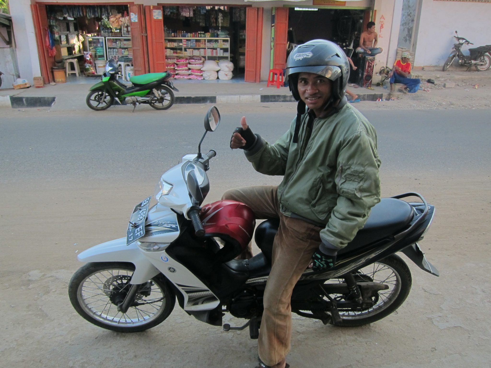 Nolemju meklēt citas iespējas. Eju pa ielu un visiem, kas piedāvā “transport, transport”, prasu – cik maksātu ceļš līdz ūdenskritumiem un arī alām. Pamatā summa svārstās no 150 000 līdz 200 000, bet pēkšņi kāds saka, ka ir ar mieru šo maršrutu veikt pa 100 000. Vienīgā neraža – šoferis faktiski nerunā angliski. Tomēr, tā kā esmu noskaidrojusi, kā vietējā valodā ir minētie objekti, pēc to nosaukšanas un intensīvas bakstīšanas kartē, izskatās, ka esam viens otru sapratuši. Braucam uz priekšu, bet tādas īstas pārliecības, ka nonākšu, kur vēlos, man nav. Bet kaut kur jau nonākšu. Šoferis braucot atvainojas, ka viņš tik slikti runā angliski. “Nekas”, es viņu mierinu, “man svarīgāk, ka tu labi brauc ar motorolleri”. Un to viņš gan pieprot.