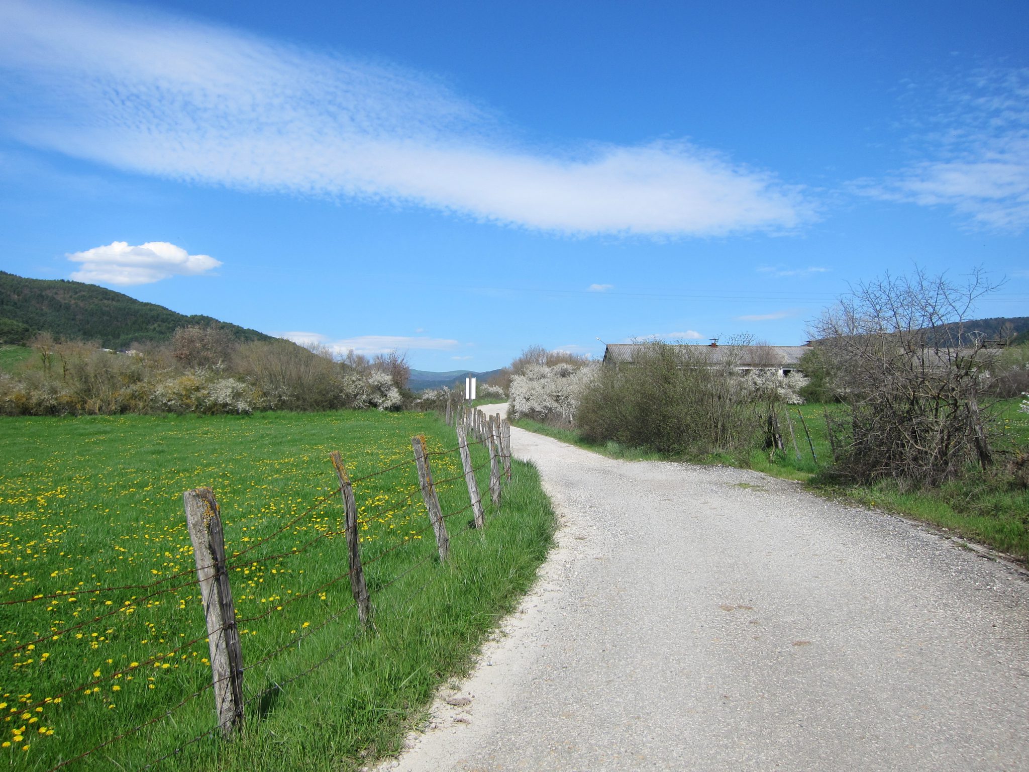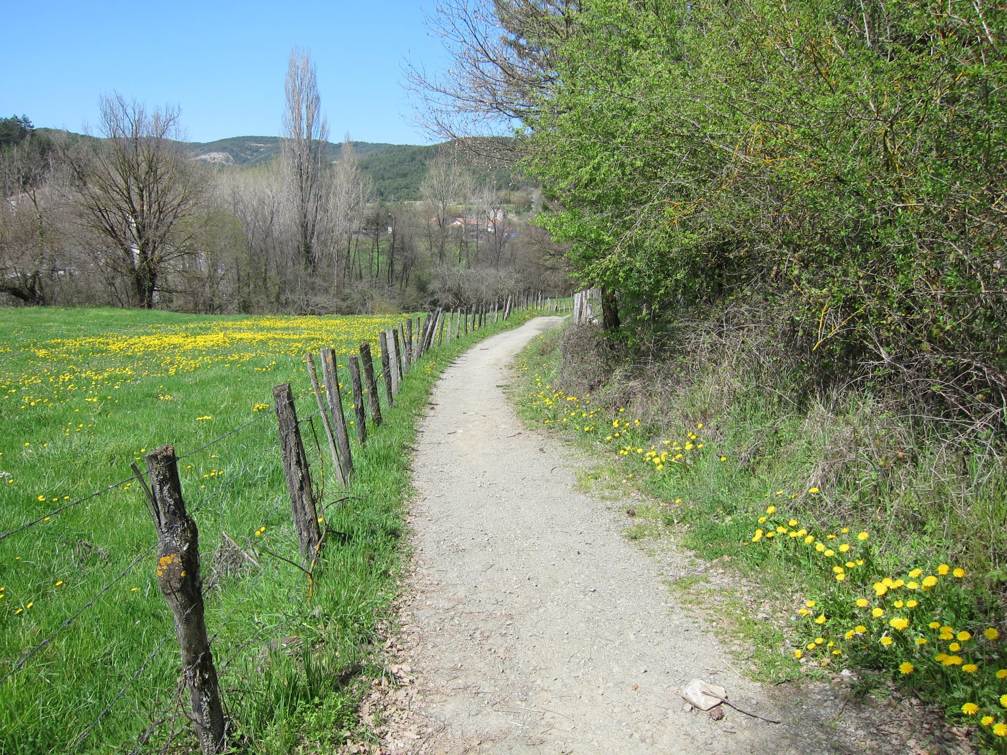 Šodien ceļš iet te augšā, te lejā, bet bez tādām pārmērībām kā vakar. Pamatā iznāk soļot pa mīlīgām meža takām, kur rūsganajās ceļmalās sazēlušas pirmās košās pavasara puķes – vizbulītes, vijolītes, gaiļpieši un citi spilgtumi. Tā kā ceļš nav redzams tālu uz priekšu, rodas sajūta, ka soļo viens. Vairākas reizes izdodas paieties, nevienu nesatiekot vairāk kā stundu.