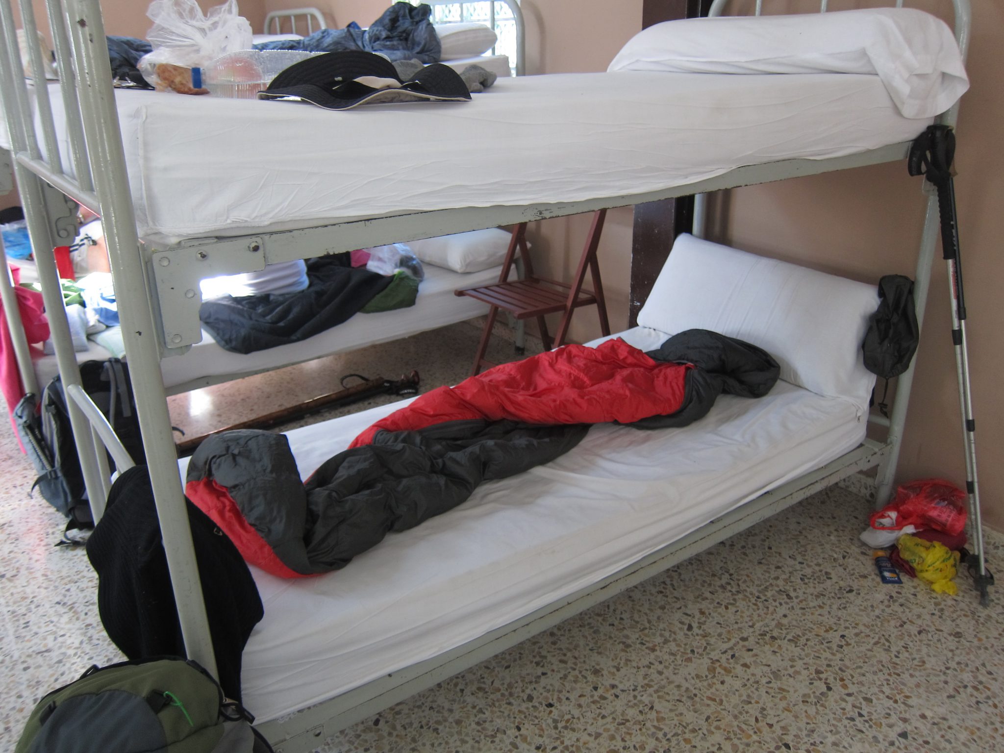 Bez grūtībām atrodu valsts refugio, samaksāju 6 eiro un tieku pie gultasvietas. Sākumā iekrītu gultā, gribu vēl padzerties ūdeni un.. tieši šai brīdī tas beidzot ir beidzies. Iekārtojos, tad nomazgāju sevi un zeķes. Pie refugio zālītē sēd jaunais brits un kāda jauka meitene. Brits tūlīt būs piebeidzis vīna pudeli.