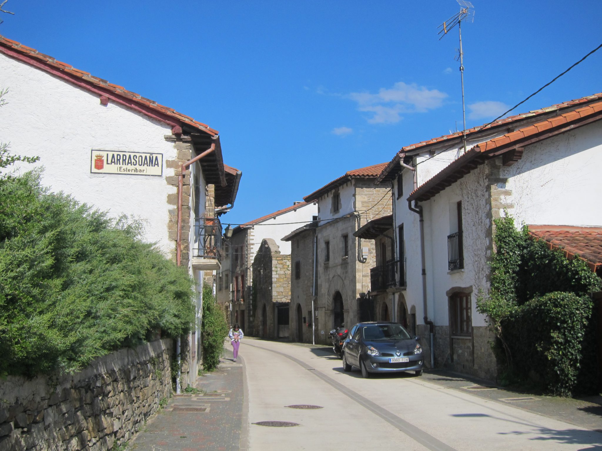 Pirmo stundu man ir sajūta, ka Larasonā nakšņošu viena pati. Tomēr pēc brīža manu tuvojamies kanādiešu pāri, tad vēl kādu vīru. Man ir aizdoma, ka spāņiem ar attāluma noteikšanu nav viss kārtībā. Larasonā iesoļoju pirms pieciem, un, lai arī īpaši raits mans solis nebija, tomēr gluži ar 2,5 km/h arī negāju. Vēlāk, apspriežot šo jautājumu ar citiem ceļabiedriem, visi bija ar mani vienisprātis. Pārējiem esot bijusi vēl lielāka vilšanās. Gudrajās kartēs (kas laimīgā kārtā nav manā rīcībā), esot bijis norādīts, ka visi šie 5 kilometri būšot gājiens uz leju. Protams, tas veda arī lejā, bet bija jāuzkāpj ne vienā vien kalnā.