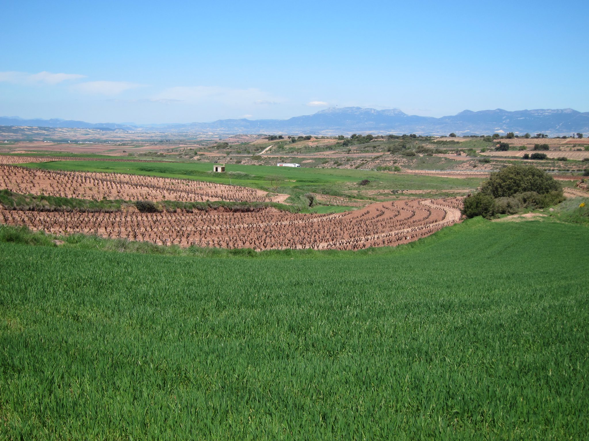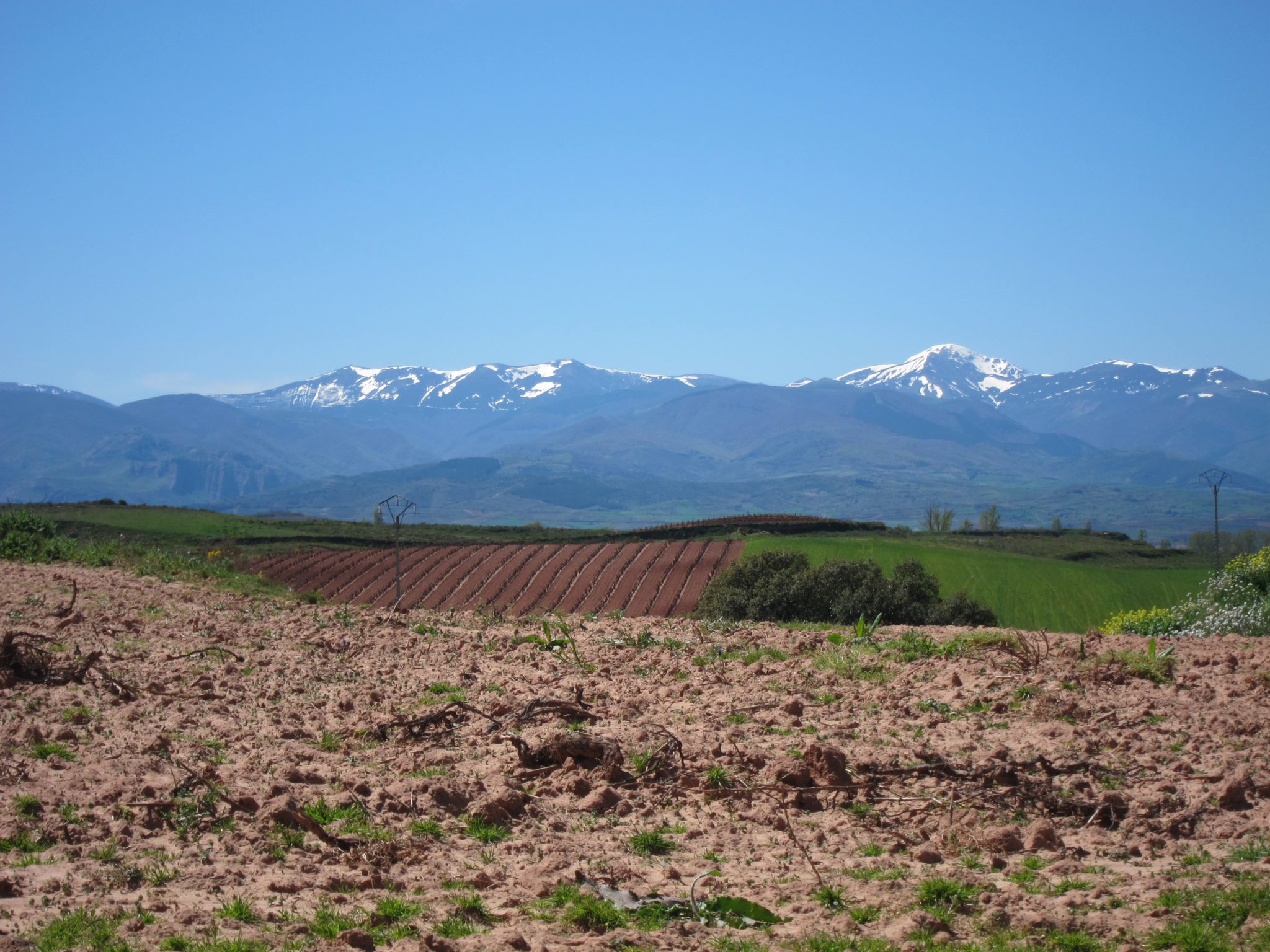 Visu laiku nemanot esam rāpušies kalnup un pēc neliela stāvāka kāpiena beidzot paveras fantastiska panorāma – vīnogulāju lauki, kalnu grēdas un tālumā pat slejas daži varenie milži ar sniega cepurēm galvās. Palikuši mazāk kā 10 kilometri un kājas atkal uzsāk veco dziesmu. Mums šodien gana staigāts, tu kā gribi, mēs nekur neiesim. Paliksim tepat un sāpēsim. Jāpierunā šīs gandrīz uz katru soli. Atkal jau pārvietojos ar pingvīna cienīgu ātrumu un grāciju. Protams, tā kā beidzot ir, ko bildēt, arī šī iemesla pēc apstājos “pie katra staba”. Garām ejot Franks pazobojas, ka tagad zinot, kāpēc man tik lēni ejot – fotografēšana esot pie vainas. Sava taisnība viņam ir.