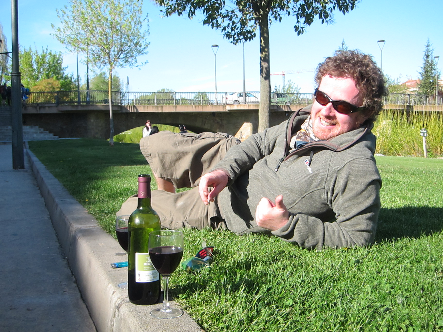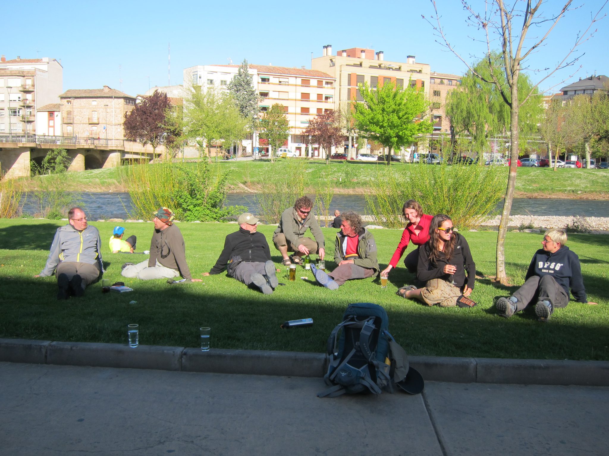 Pavisam netālu, pilsētas krodziņu rajonā, upmalā satieku Šonu un Annu, kuri mani aicina pievienoties uz tapām, ko es arī ar prieku daru. Šie malko vīnu un ēd, es tikai ēdu. Tapas ir tikai iesildīšanās vakariņām, bet baudījusi tās, paziņoju abiem, ka man ir gana. Šie gan ir nobrieduši notiesāt katrs vēl 3 ēdienus, nu, lai veicas. Kamēr ēdam, vērojam, kā pilsētā viens pēc otra sarodas citi mūsu ceļabiedri. Pirmo reizi redzu, ka sāk pietrūkt naktsmītnes – mūsu alberģe jau sen ir pilna, arī citās ar vietām pašvaki. Uz ielas jau nevienam nebūs jāguļ, upes malā gozējas paliels hotelis, bet finansiāli tas droši vien nav patīkamākais risinājums.