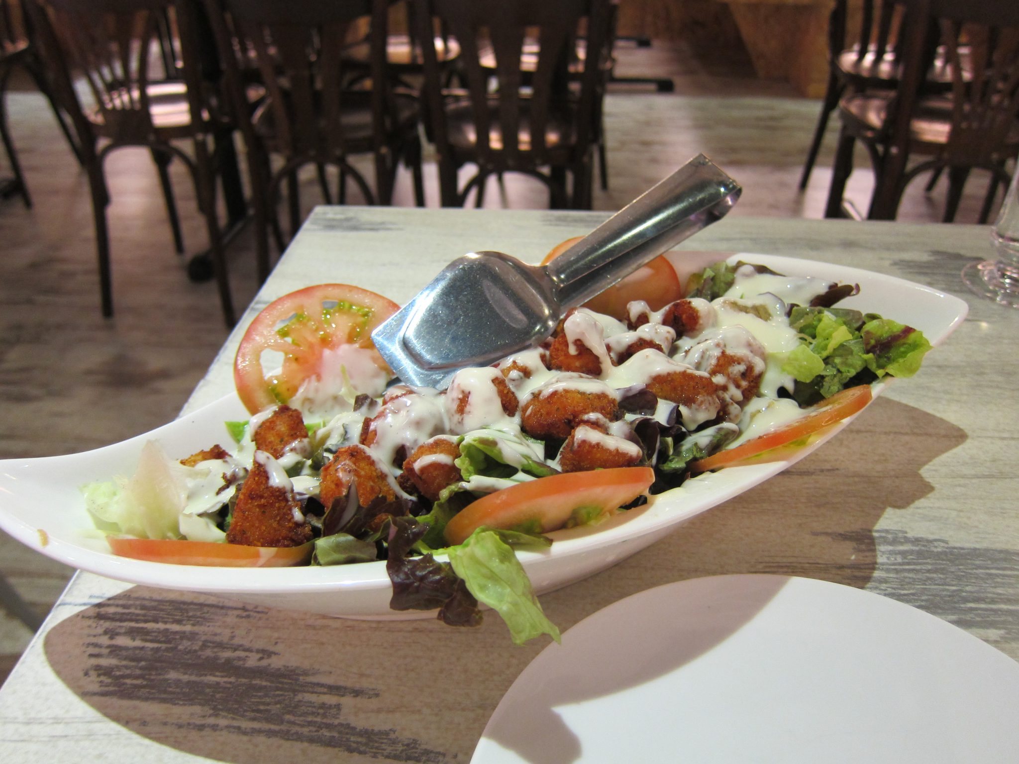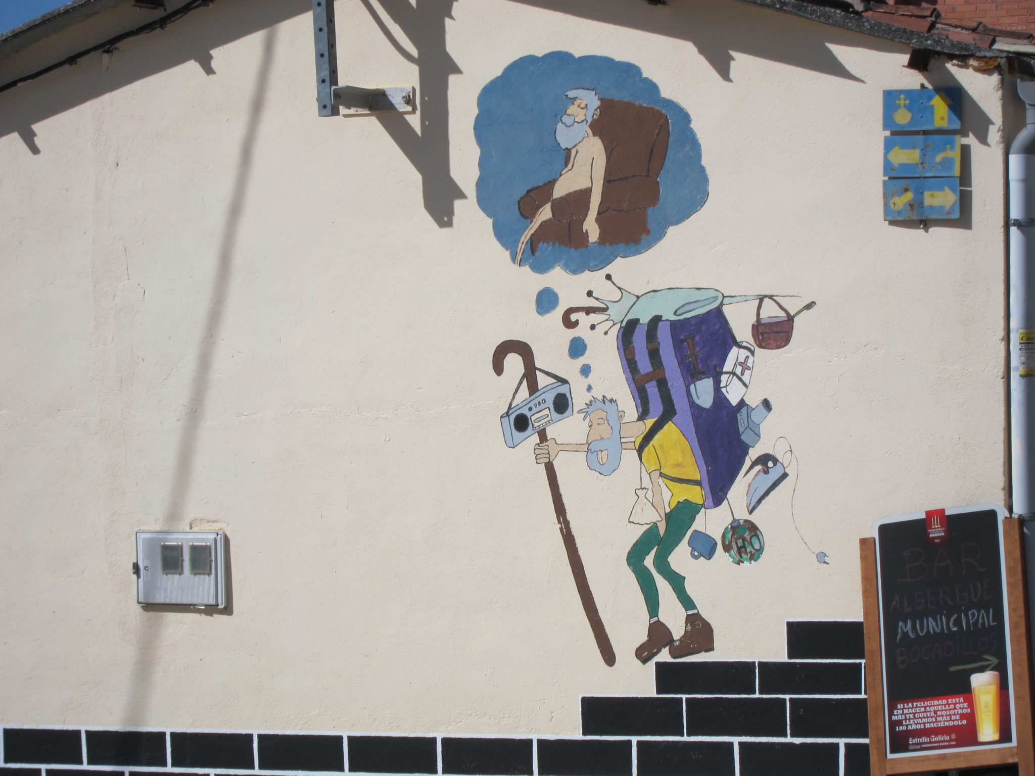 Nu, lūk, tā kā Burgos iesoļoju ap 2 dienā, tad man bija visa pēcpusdiena, lai rakstītu – attiecīgi esmu sarakstījusi cilvēkiem lietas, ko solīju jau sen. Laba sajūta. Kādā krodziņā baudīju lieliskus Cēzara salātus (un daudz!), sadzēros tējas un kafijas, kā bija iecerēts. Un, krodziņā bija ļoti vienkārša, bet, manuprāt, ģeniāla “fīča” – bērnu rotaļu istaba blakus telpā, ar lielu videoekrānu ēdamzālē – vecāku sirdsmieram.