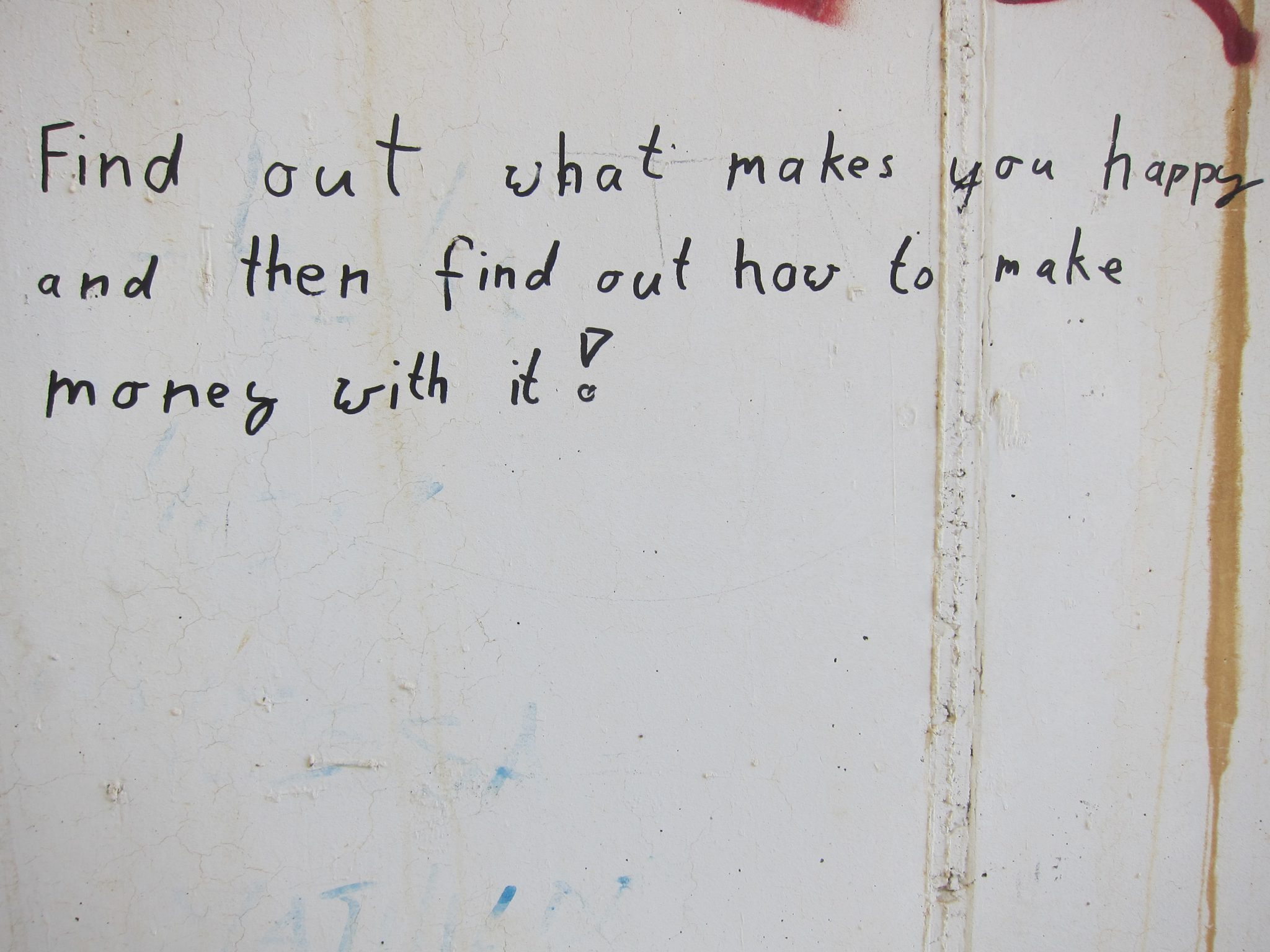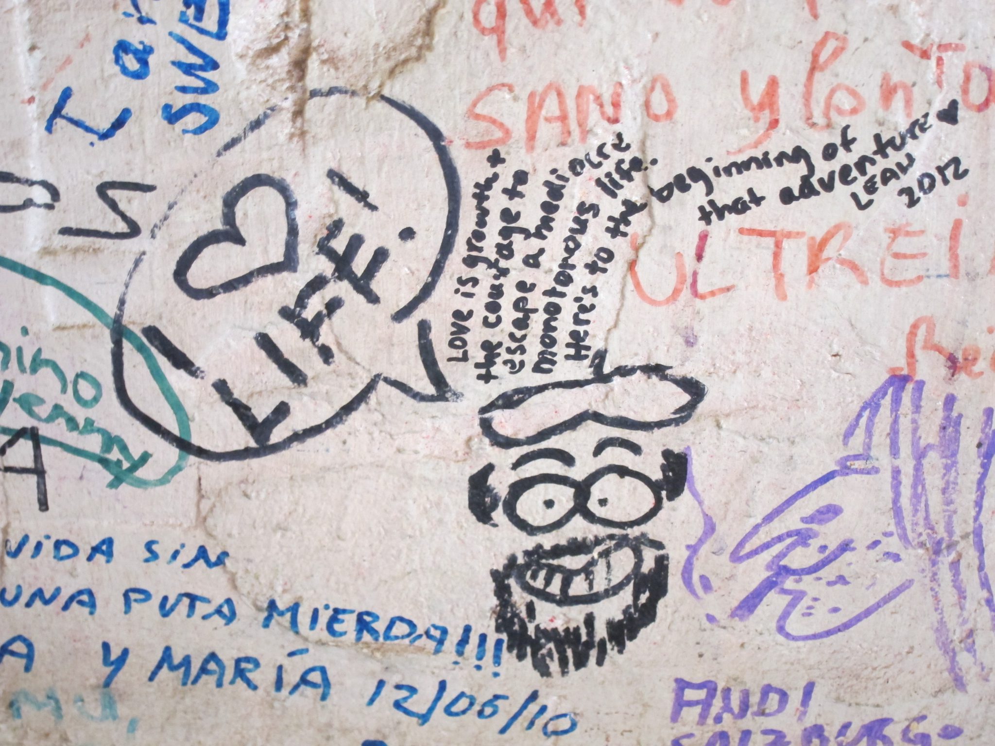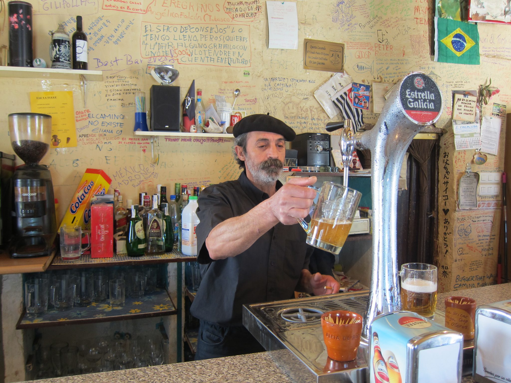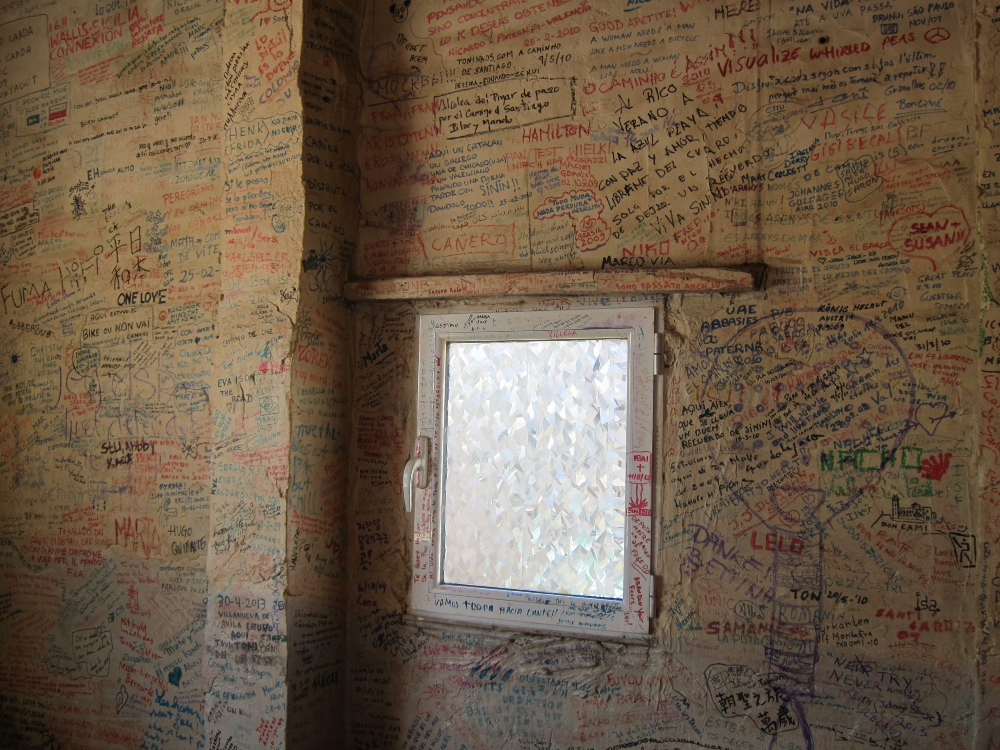 11:00 noēdu savas siermaizes, bet vēl pēc pāris stundām beidzot ir klāt kāds miestiņš, kur var dabūt internetu un kafiju. Uzzinājusi, kur šie abi faktori ir vienkopus, dodos norādītajā virzienā, bet pa ceļam ir tāds krodziņš, kuram nevar paiet garām. Gan jau būsiet ievērojuši, ka man patīk visādi uzraksti uz sienām un citām vietām. Tad nu šis krodziņš ir mana paradīze. Tas ir aprakstīts viss – no iekšpuses un no ārpuses. Šajā vietā wifi nav (un vecais melis apgalvo, ka tas neesot nekur ciemā), tomēr nolemju iemalkot vienu kafiju šeit pat un mazliet papildināt sienu dekorācijas. To izveikusi, kā arī pačalojusi ar diviem puišiem no Kalifornijas, dodos uz blakus krodziņu, kur internets ir kā dzīvs.