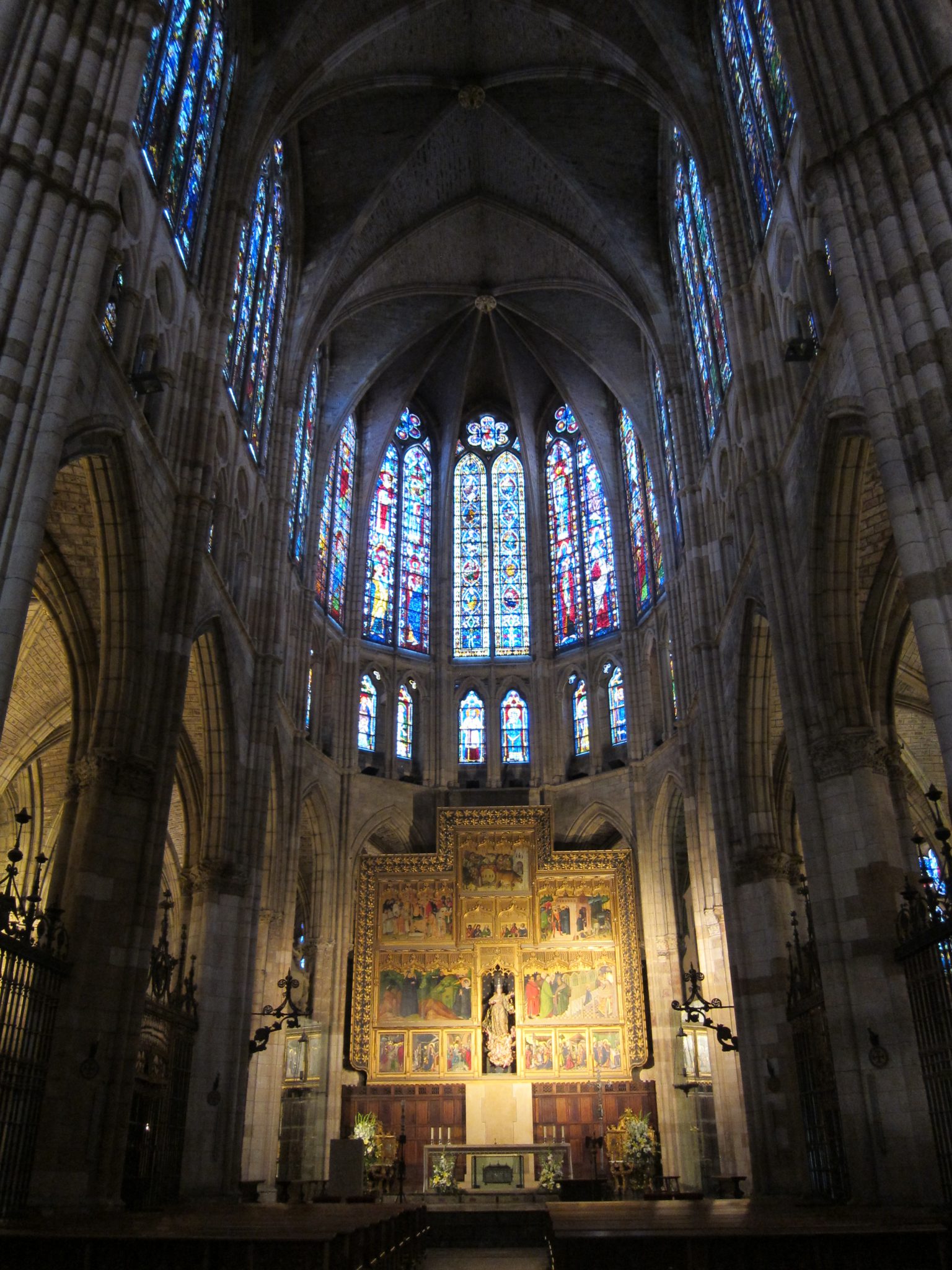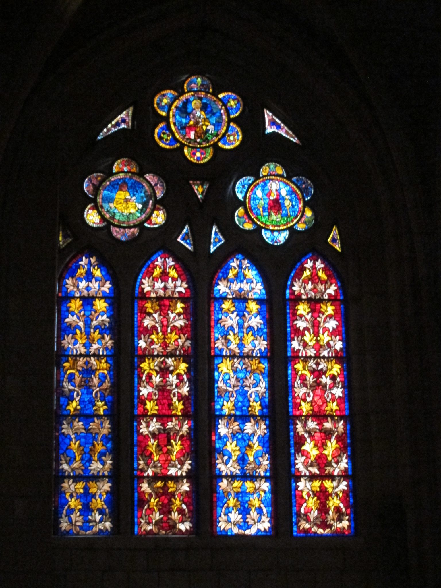 Kolīdz izeju no kafejnīcas, no pretējās ielas puses mani sauc jaunieši, kas piesēduši atpūtināt kājas pēc katedrāles apskates. Mirkli patērzējusi ar viņiem, arī es dodos uz katedrāli. Tās īpašais krāšņums ir daudzās logu vitrāžas, caur kurām katrā diennakts laikā vērojama citāda gaismu spēle. Man šī katedrāle patīk – nav pārāk liela un gaisma, ieplūstot caur krāsainajiem logiem, rada jauku noskaņu.