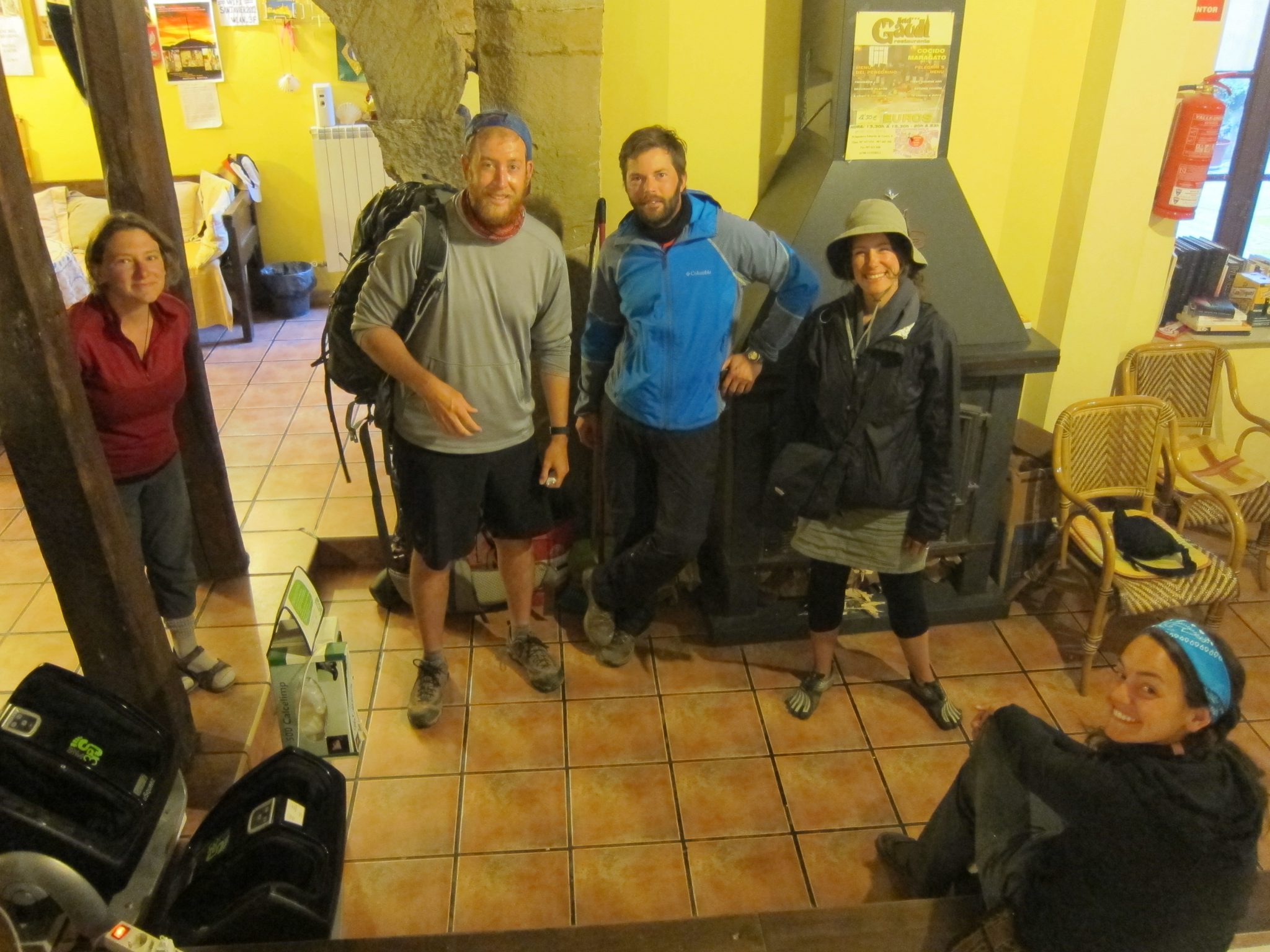Biju domājusi, ka šajā aberģē nevienu pazīstamo nesatikšu, tomēr, ienākusi “vakarēšanas telpā”, konstatēju, ka tur jau sēž man zināmie divi austrāļu kungi – Pīters un Džons (Džons bija tas, kas man norādīja par pārlieku lielo mantu daudzumu, bet Pīters – piedāvāja ar taksi braukt uz Burgosu). Šoreiz viņi mani pierunā aiziet septiņos uz baznīcu – tur būšot īss pasākums, dziedāšot gregoriāņi. Viņi veikalā satikuši mācītāju un viņš, piemiedzot aci teicis, lai ierodoties laicīgi, ja gribot dabūt sēdvietu. Protams, austrāļu kungi izsaka visai ticamu minējumu, ka mācītājs jokojis un droši vien bez mums baznīcā būs pāris ciema večiņas.