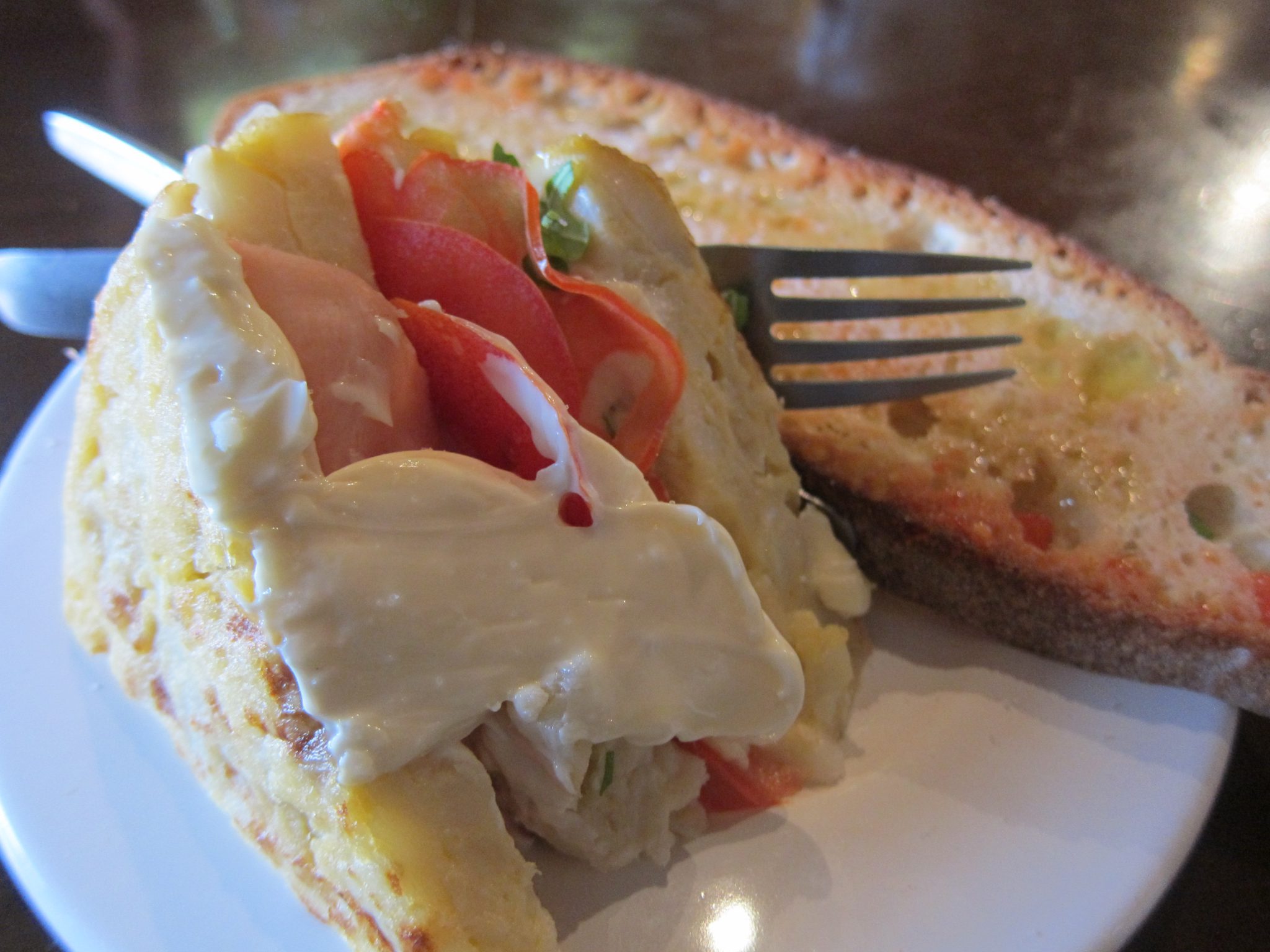 Hilarija un citi jaunieši iestrēgt jau pirmajā bārā, mēs otrajā – pēc kilometriem pieciem. Tas ir bārs ar brīnišķīgu virtuvi, paēdam kārtīgas brokastis. Lai arī ēdiens ir augstas kvalitātes, pārliecinos, ka spāņu nacionālais brokastu ēdiens – kartupeļu tortilja – nav manā gaumē. Bet paēsts ir un duka soļot arī ir.