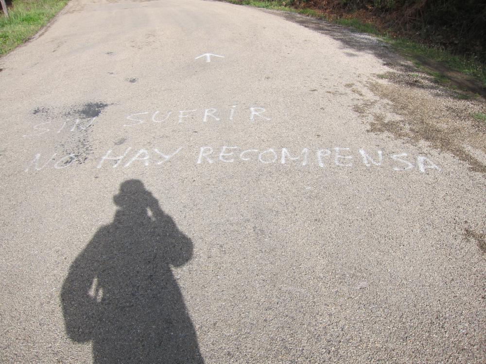 Nosmejamies, bet pēc atpūtas pauzes es tomēr turpinu ceļu. Nākamajā miestā ielas malā sēž man pazīstama japāniete un, ieraudzījusi mani, rāda uz pulksteni un šūpo galvu. Neesot prāta darbs septiņos vakarā vēl soļot. Es izskaidroju faktu par somu un turpinu ceļu. Japāniete paliek sēžam ar trim vietējām spānietēm krietnos gados. Kā viņas sazinās, nav ne jausmas, jo japāniete spāniski nerunā, angliski viņa zina dažus vārdus, bet pieļauju, ka spānietes nezina pat tos. Bet izskatījās, ka visas labi pavada laiku.