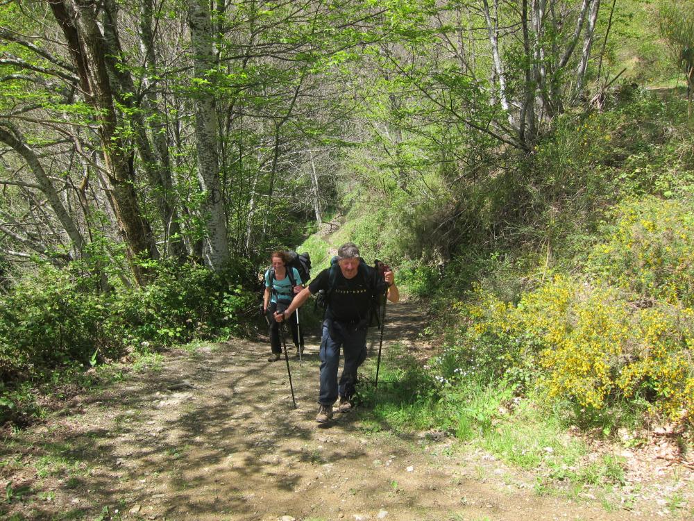 Izejam cauri pilsētai bez problēmām, tad rāpjamies augšup pa aizaugušu taku kalnā. Tā kā Sāra iet (kad iet) ātrāk par mani, tad brīdī, kad meitene izdomā pārsiet lakatu, paeju viņai garām. Uzkāpju kalnā, bet Sāru neredz. Pēc piecām minūtēm jau sāku satraukties, kad viņa beizot parādās pie horizonta un pamāj, ka viss kārtībā. Ok, es turpinu lēnām čāpot augšā – kādu gabalu mums jāiet pa autoceļu. Biju domājusi, ka Sāra mani drīz panāks, bet tā kā tas nenotiek, nolemju pagaidīt. Nu jau gaidu vairāk kā piecas minūtes un teju apsveru domu iet atpakaļ un pārbaudīt vai ar viņu viss kārtībā, kad Sāra izpeld pie horizonta. Ja šitā mums ies visu ceļu, nebūs nekāda aršana. Tomēr no šī brīža mums izdodas turēties kopā.