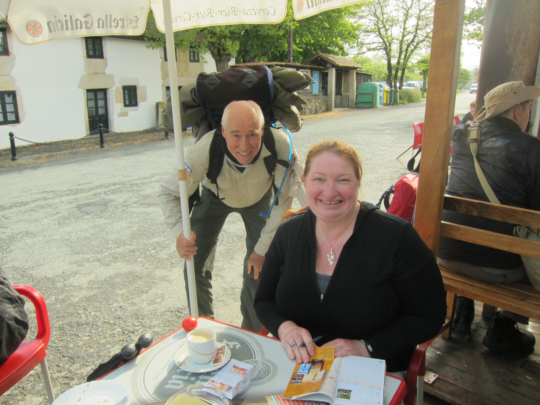 Esmu sagatavojusies, ka šodien ceļš būs vēl pilnāks kā vakar, tāpēc izbaudu rīta stundas. Pirmie “plastic peregrinos” (citējot Šonu) parādās tikai pēc 9 rītā, kad esmu piestājusi uz pirmo kafiju. Tik agri nolemju pauzēt, jo ieraugu pie viena no galdiņiem sievieti no Austrālijas, ko neesmu sastapusi nedēļas trīs. Pie blakus galdiņa otro reizi ceļā izdzirdu krievu valodu – tur piesēduši trīs piligrimi no Sanktpēterburgas.