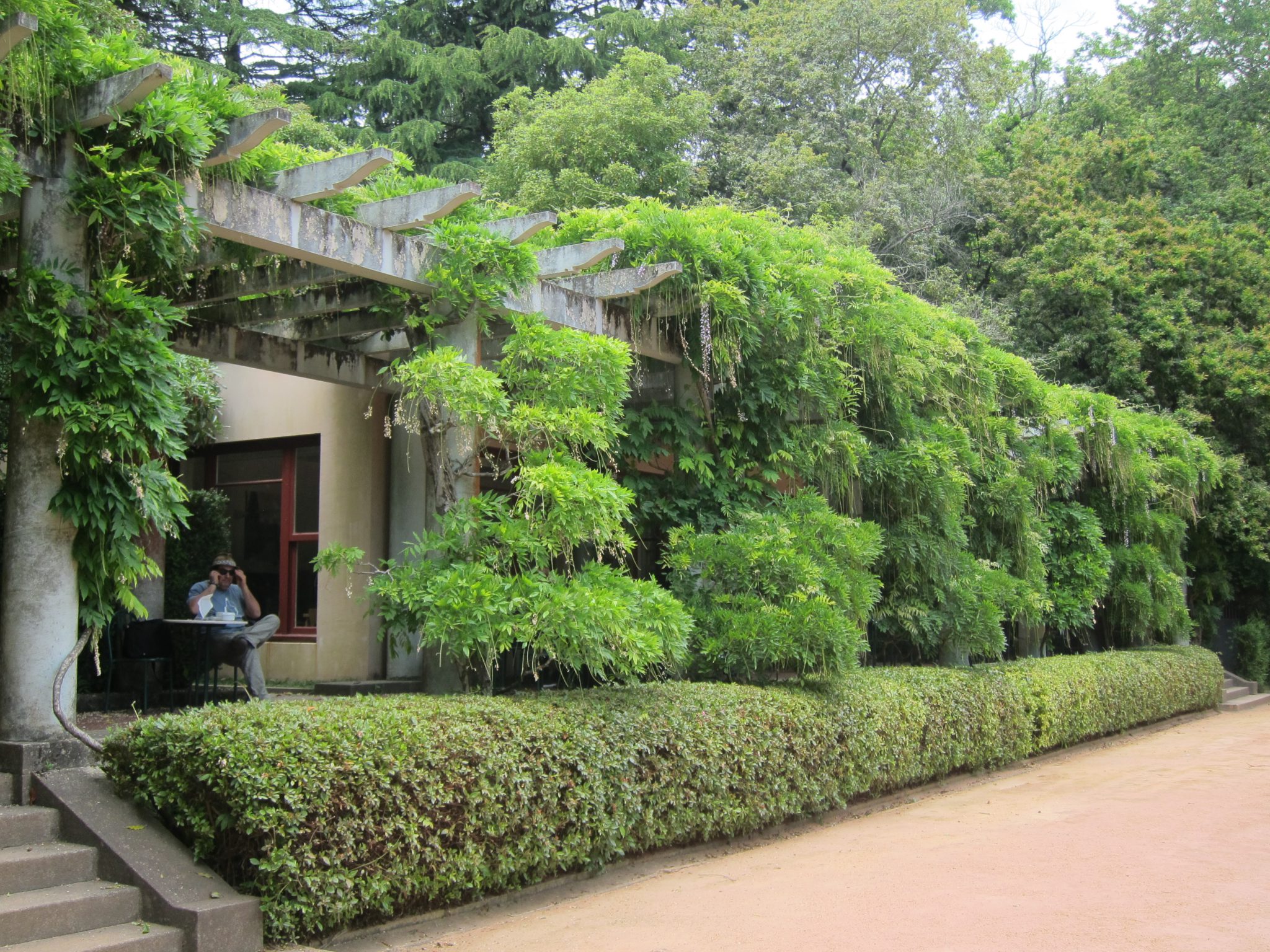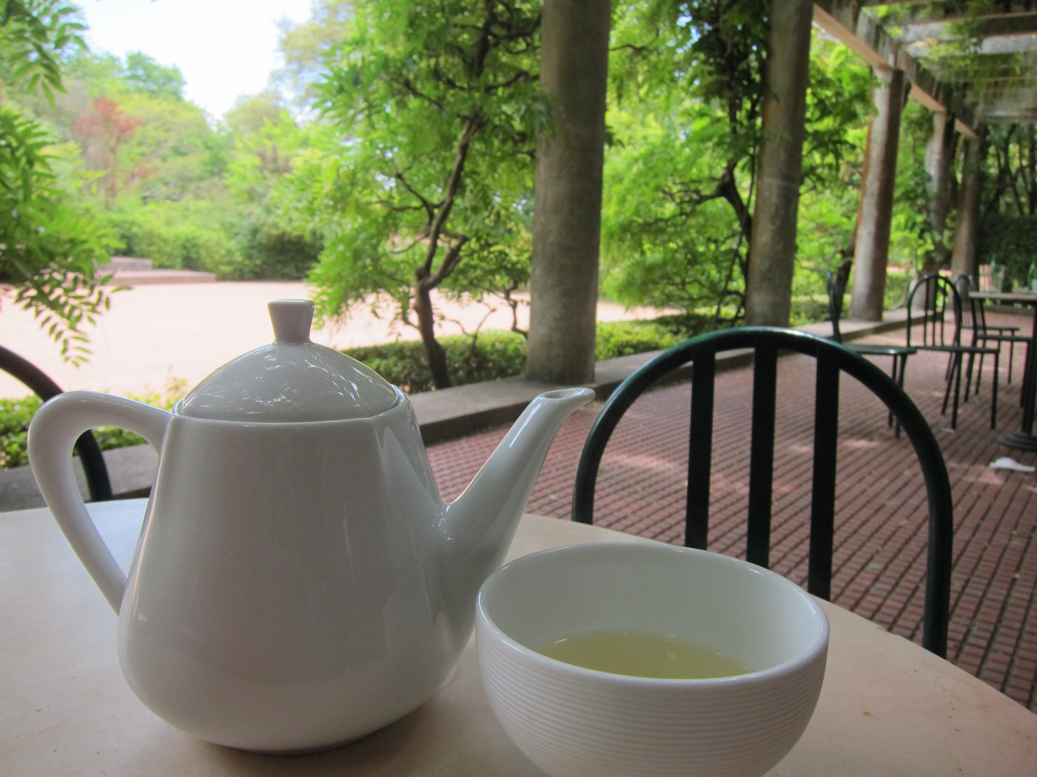Izstaigājusi dārzu, ieraugu glicīnijām apvītu nojumi, kurā iemitinājies tējas namiņš. Nospriežu, ka ir laiks zaļajai tējai. Pasūtījumu pieņem puisis, pēc kura akcenta es pie sevis izsaku minējumu par viņa slāvisko izcelsmi. Camino ieraduma vadīta noauju kājas, malkoju tēju un izklaidēju datoru.