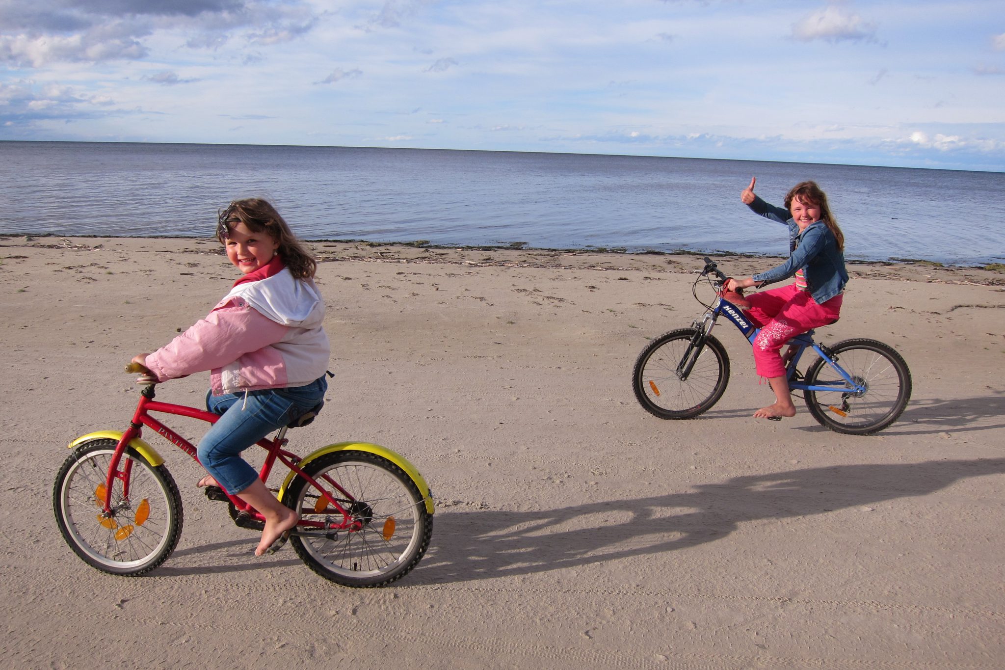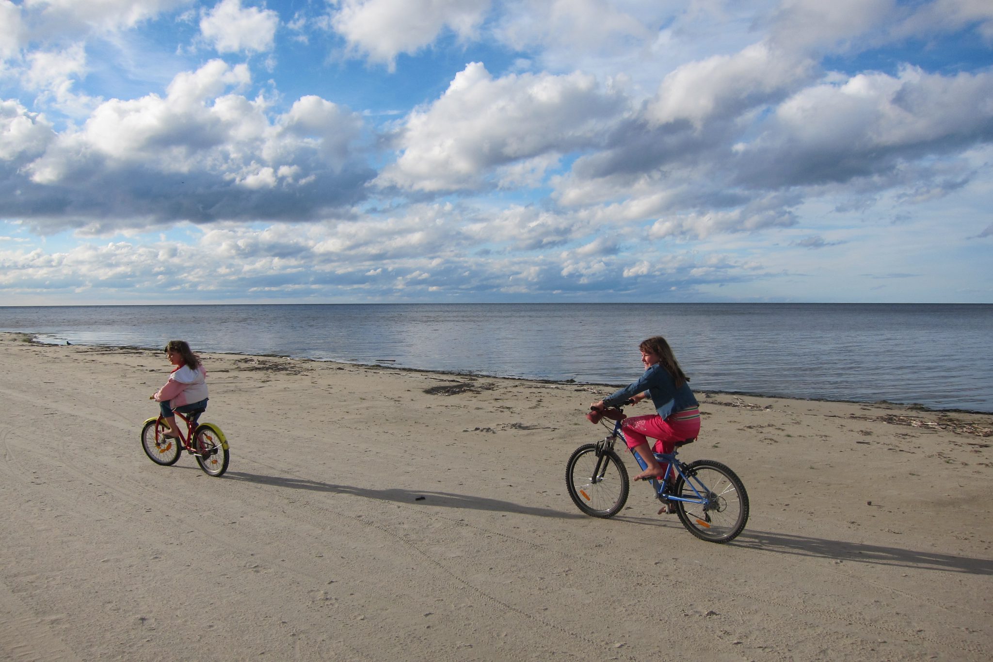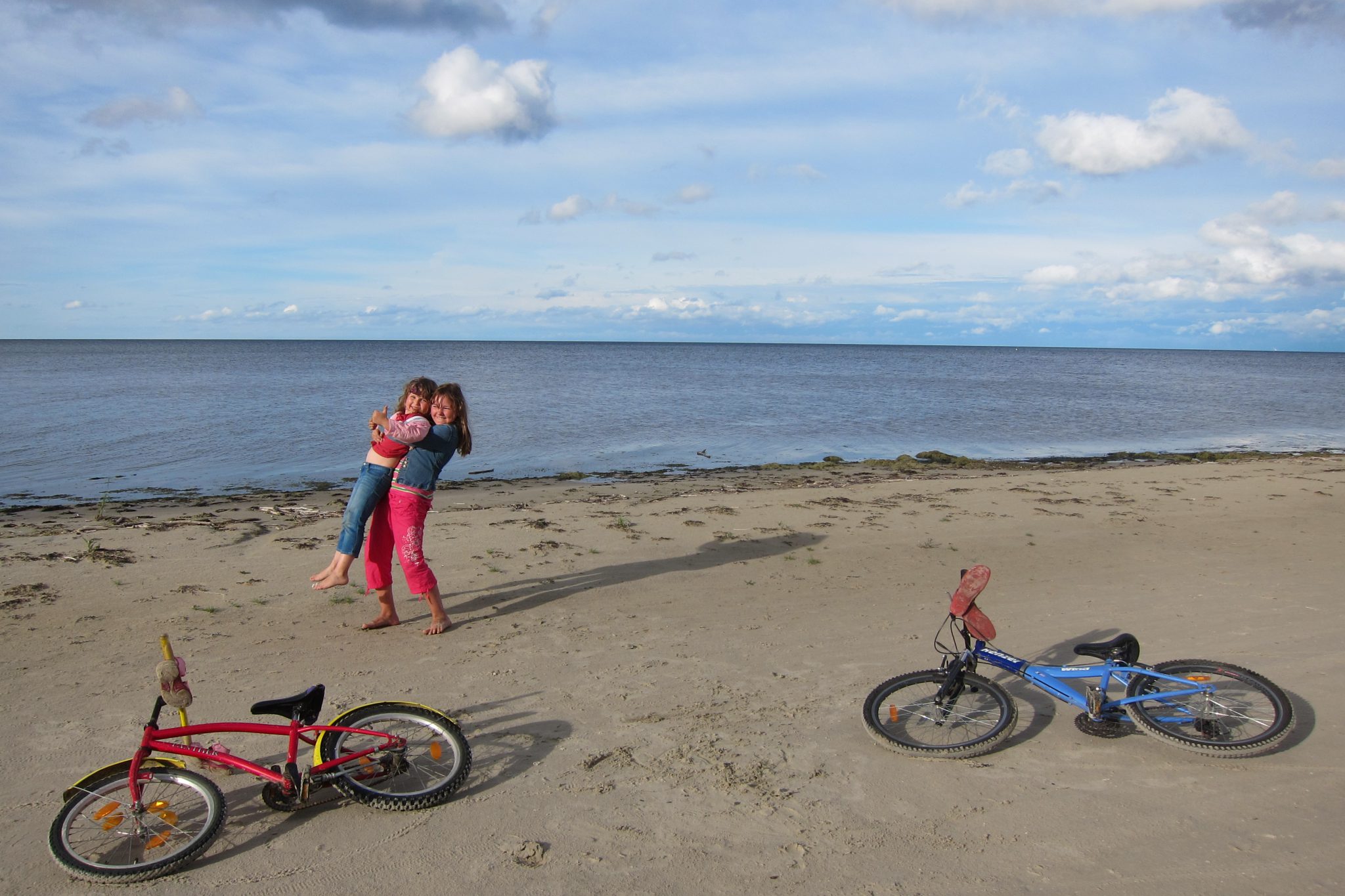 Tāda ilgu mākta brīvdienās izgāju Ragaciema jūras krastā. Daudz laika nebija, bet nu vismaz kādu gabaliņu pievakarē gribējās paieties. Eju ar savām domām līdz ieraugu jūras malā vēl kādu dzīvību – divas mazas meitenes uz velosipēdiem. Sasmaidāmies un neko. Pēc brīža dzirdu, ka meiteņi minas man no mugurpuses un, lai arī pludmale ir gana plata, šīs ripina tieši man aiz muguras. Kā jau to varēja paredzēt, vienā brīdī atskan spiedzieni, jo mazās gandrīz saskrienas. Gandrīz neskaitās, bet mani tas iedvesmo palēcienam malā un pamācošam tekstam par uzmanīšanos.
